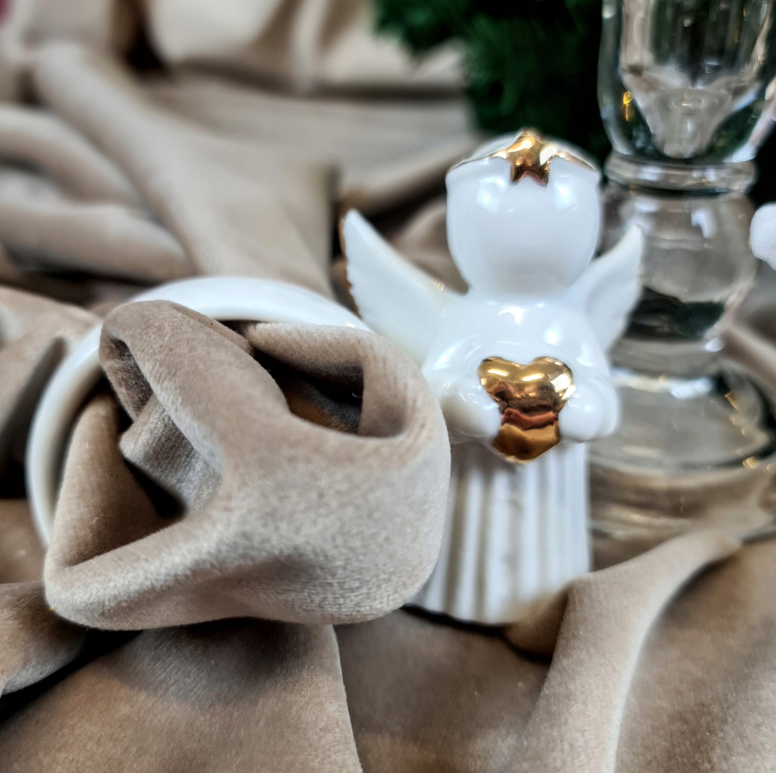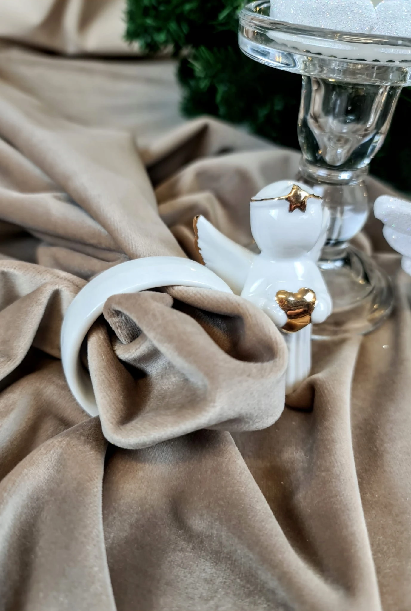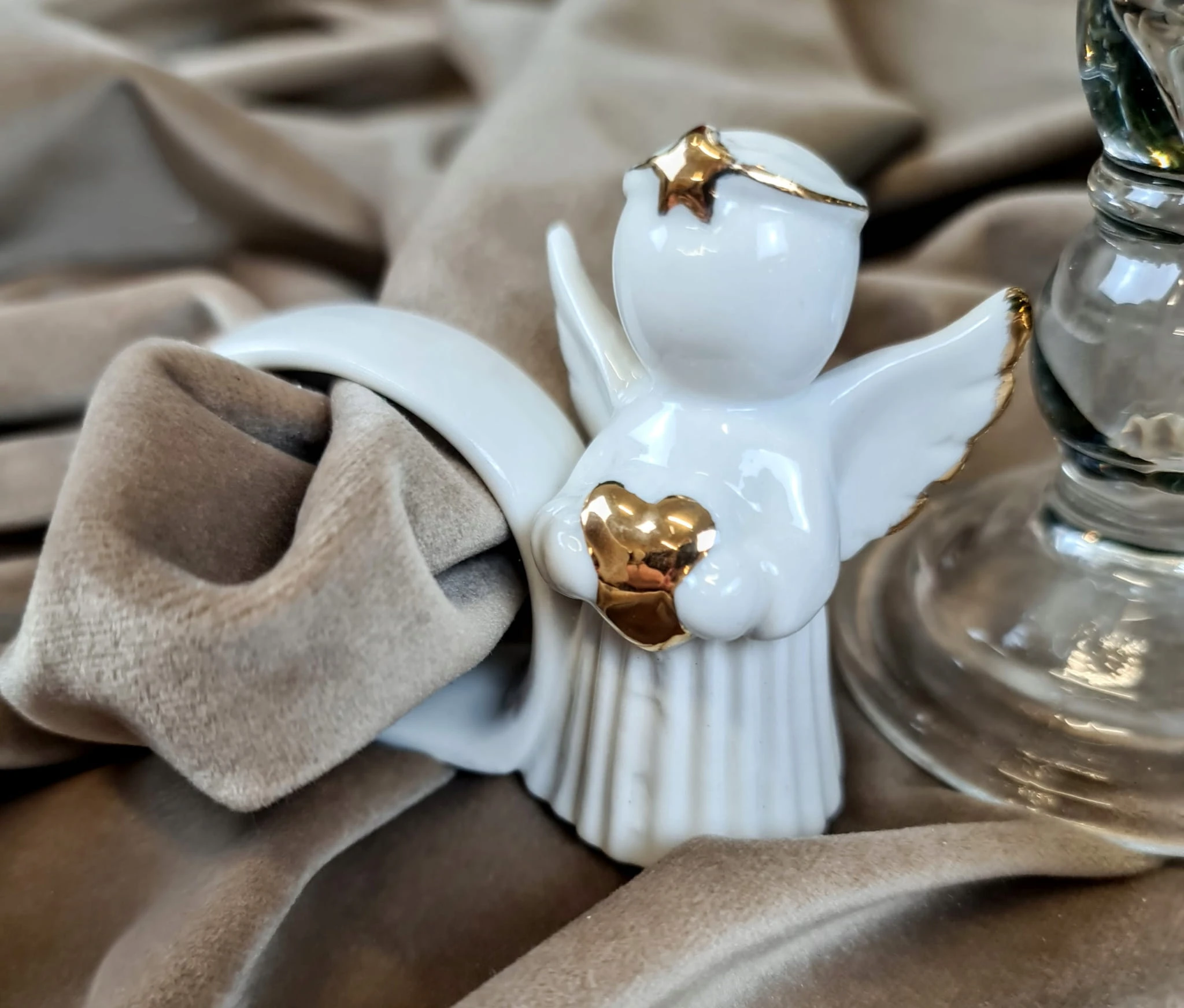 Serwetnik z porcelany w kształcie aniołka to doskonała dekoracja na stół. Umieść chusteczki lub serwetki wewnątrz obrączki, a każdy zwróci na nią uwagę. Piękny dodatek na świąteczny wieczór.