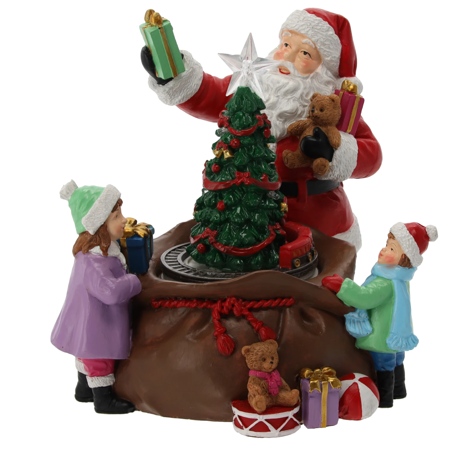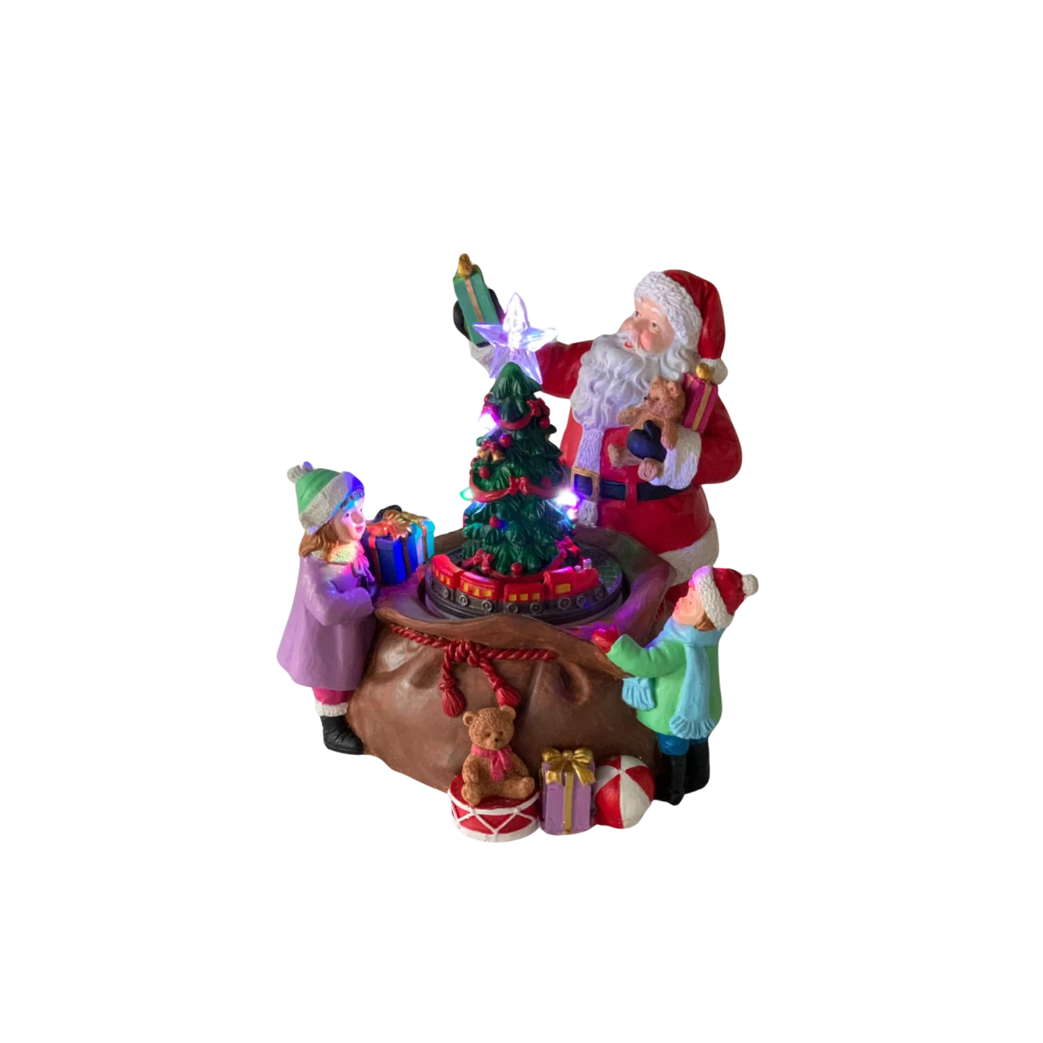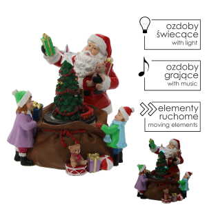 POZYTYWKA BOŻONAR. LED MIKOŁAJ Z CHOINKĄ I PREZENTAMI 20x19x19cm