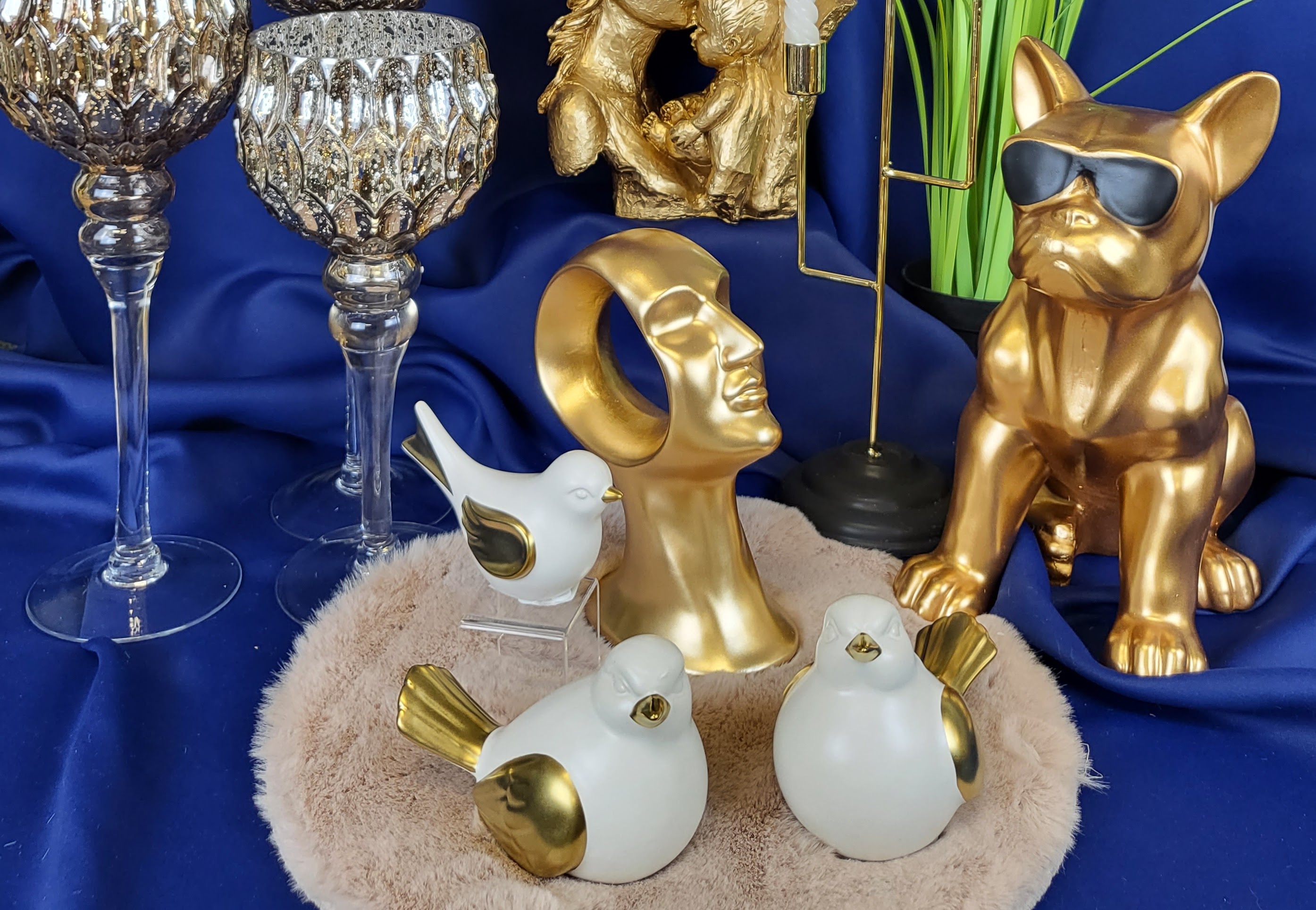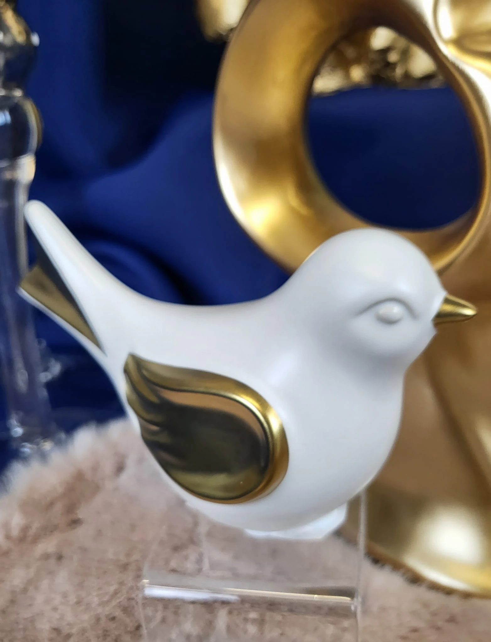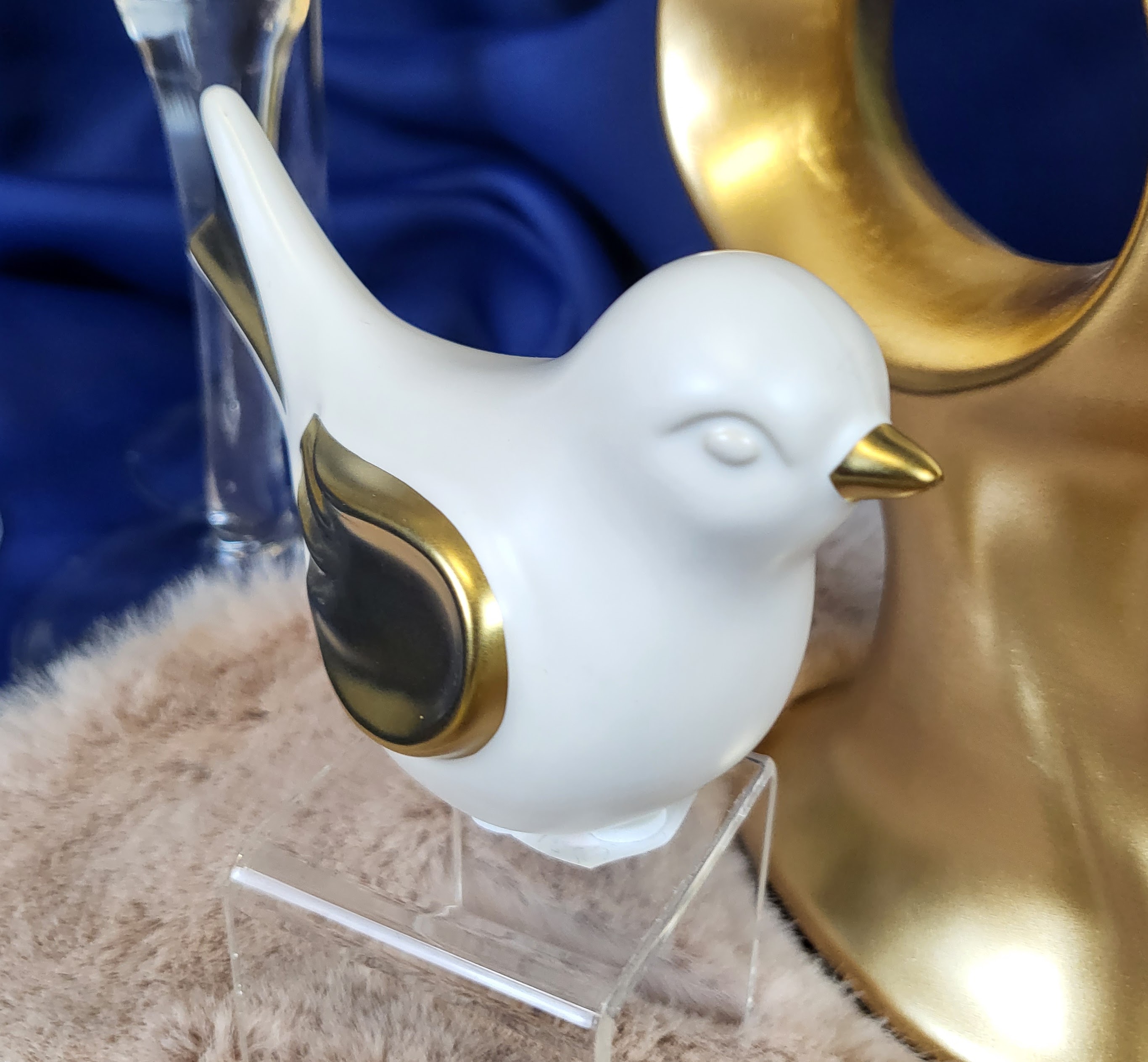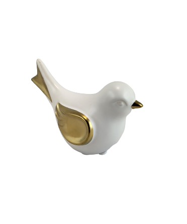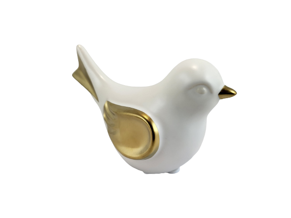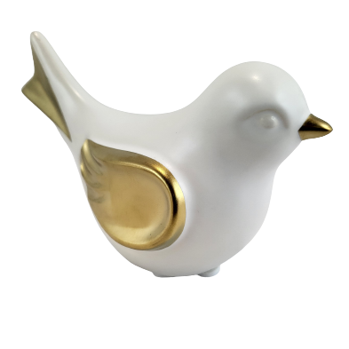 PTAK PTASZEK BIAŁO ZŁOTY CERAMICZNY