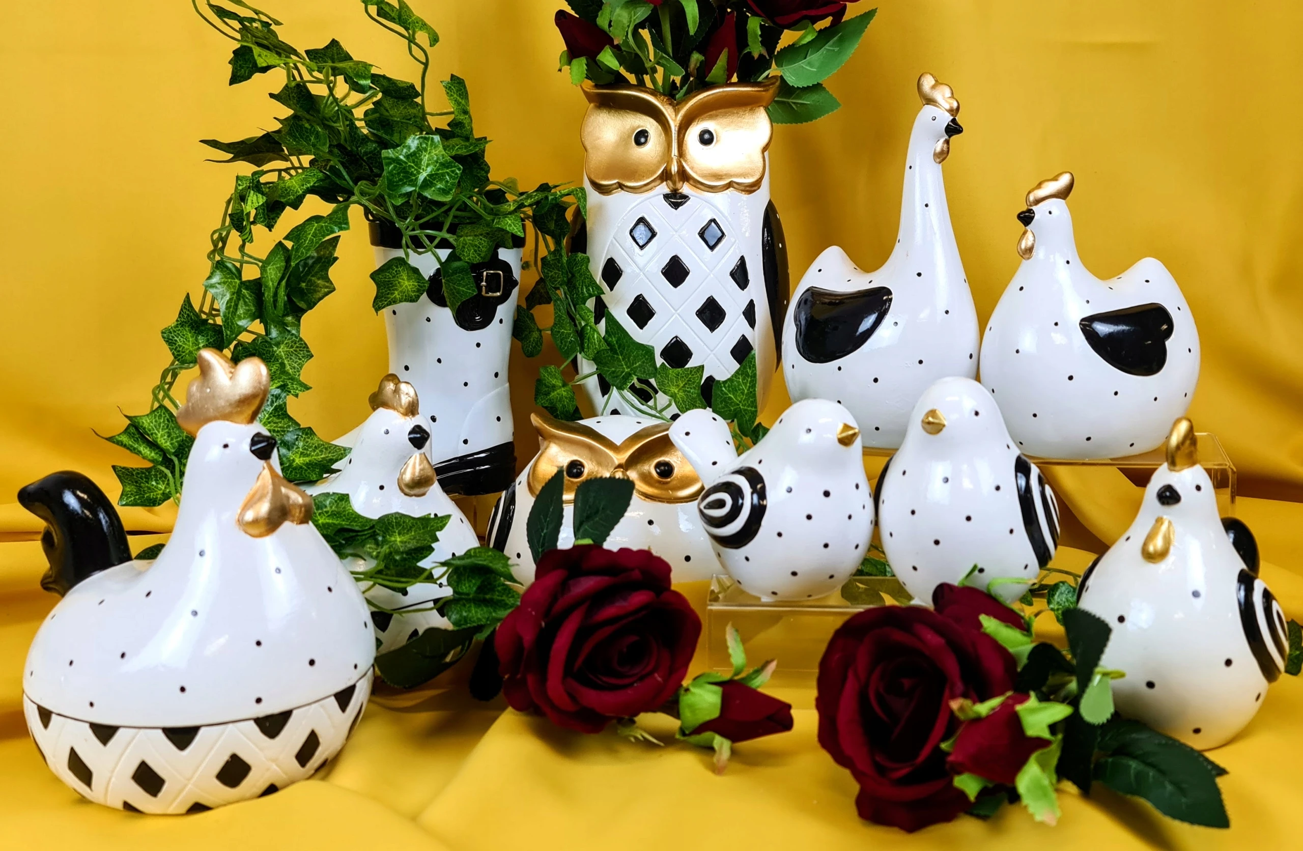 PTASZEK CERAMICZNY BIAŁO-CZARNY MIX DWA WZORY