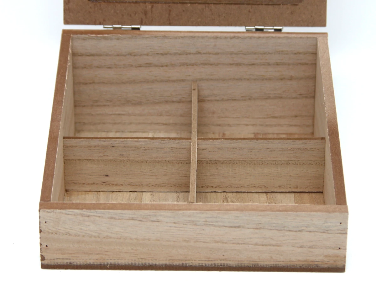 Drewniany pojemniki z elementami dekoracyjnymi. Pudełko można wykorzystać do przechowywania różnych drobiazgów. Idealnie wpasują się w każde wnętrze od nowoczesnych po te bardziej tradycyjne.