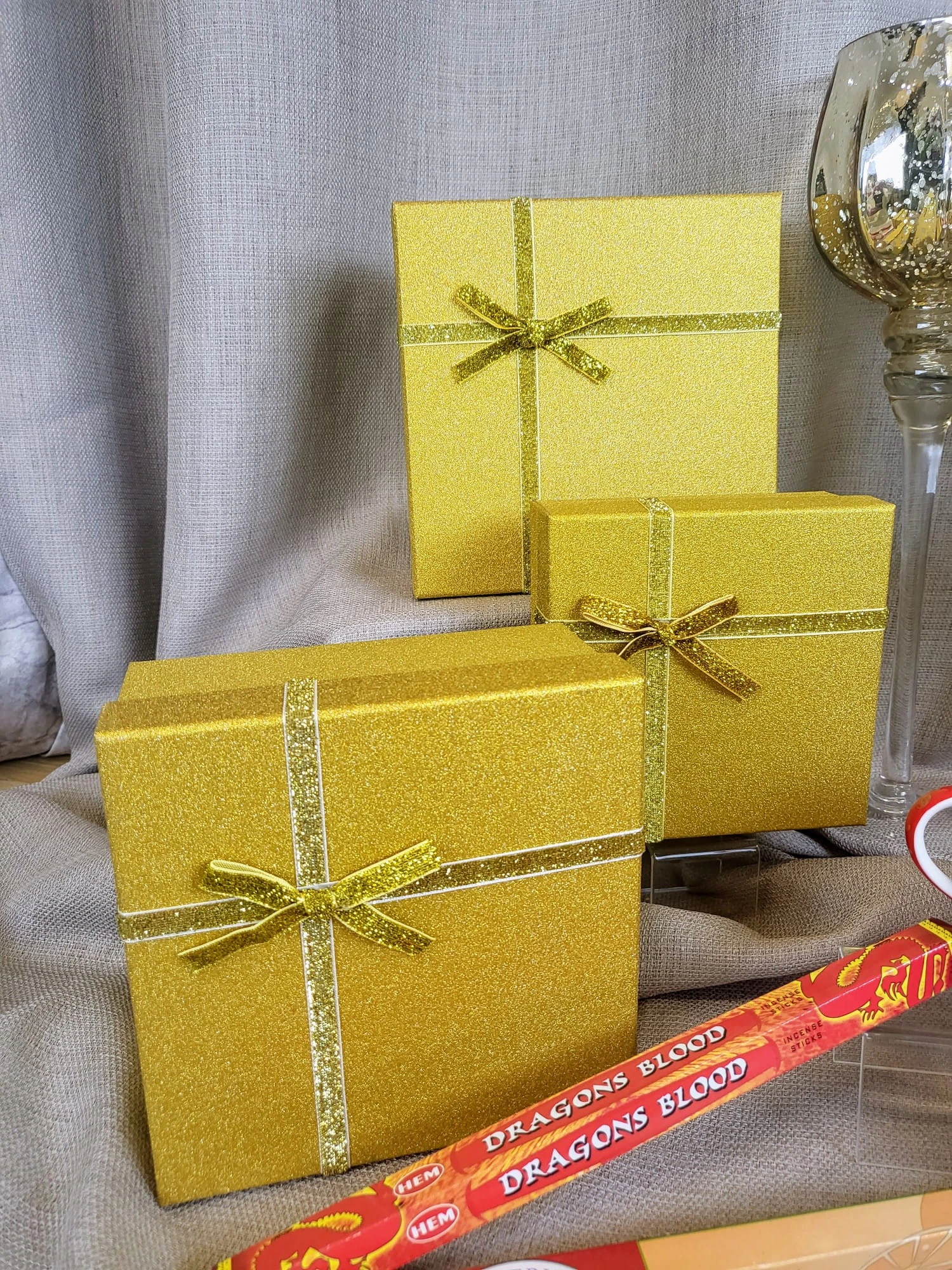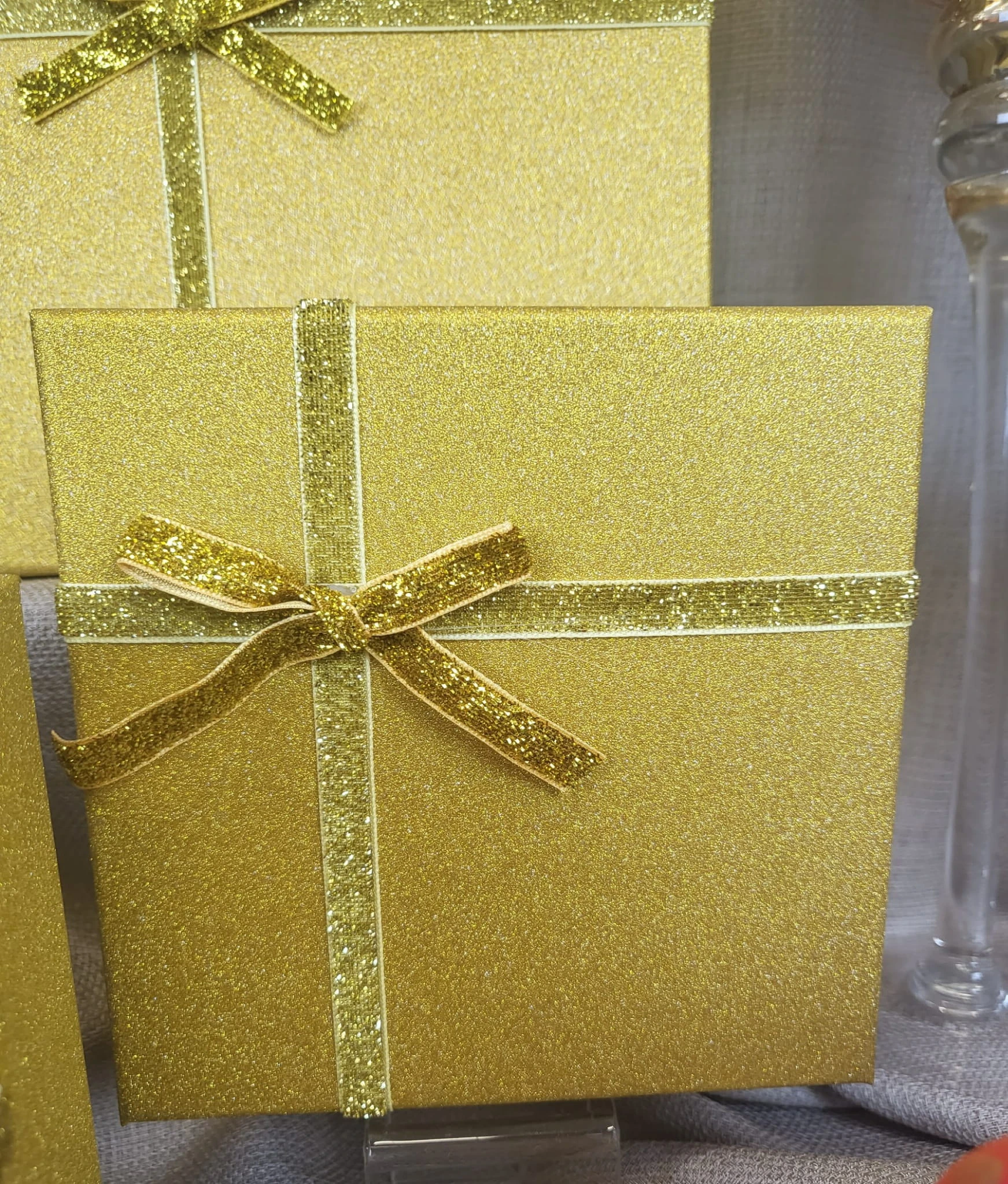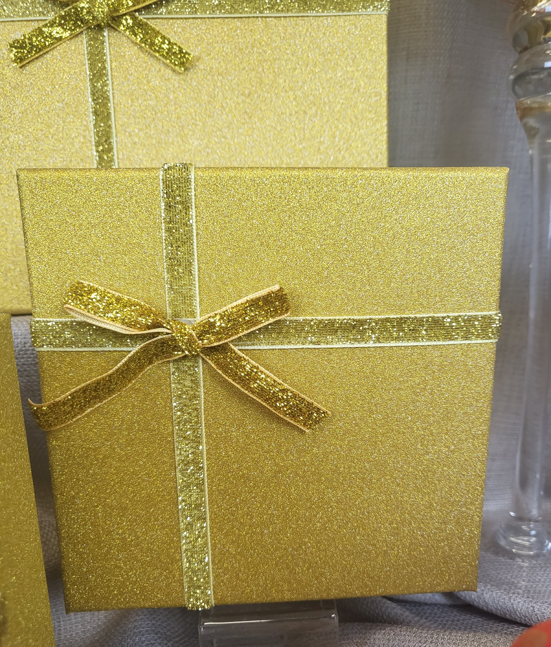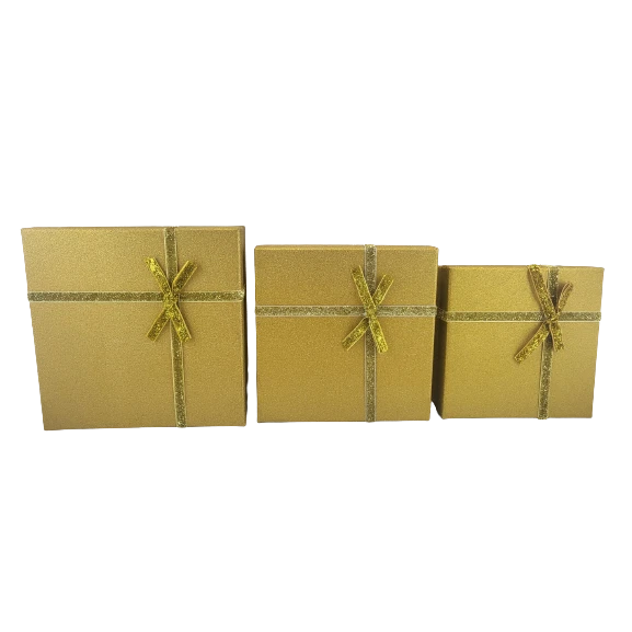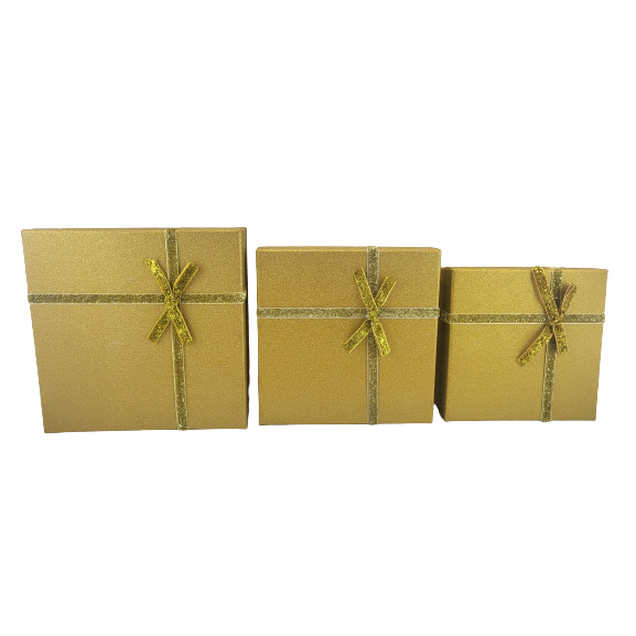 PUDEŁKO PREZENTOWE ZŁOTE BROKAT S 15X15X6,5CM