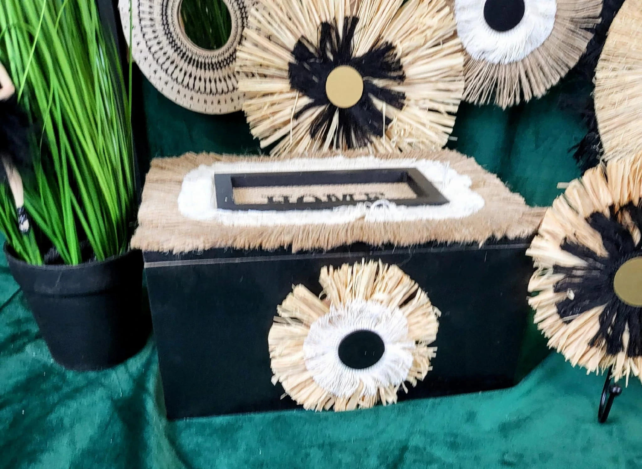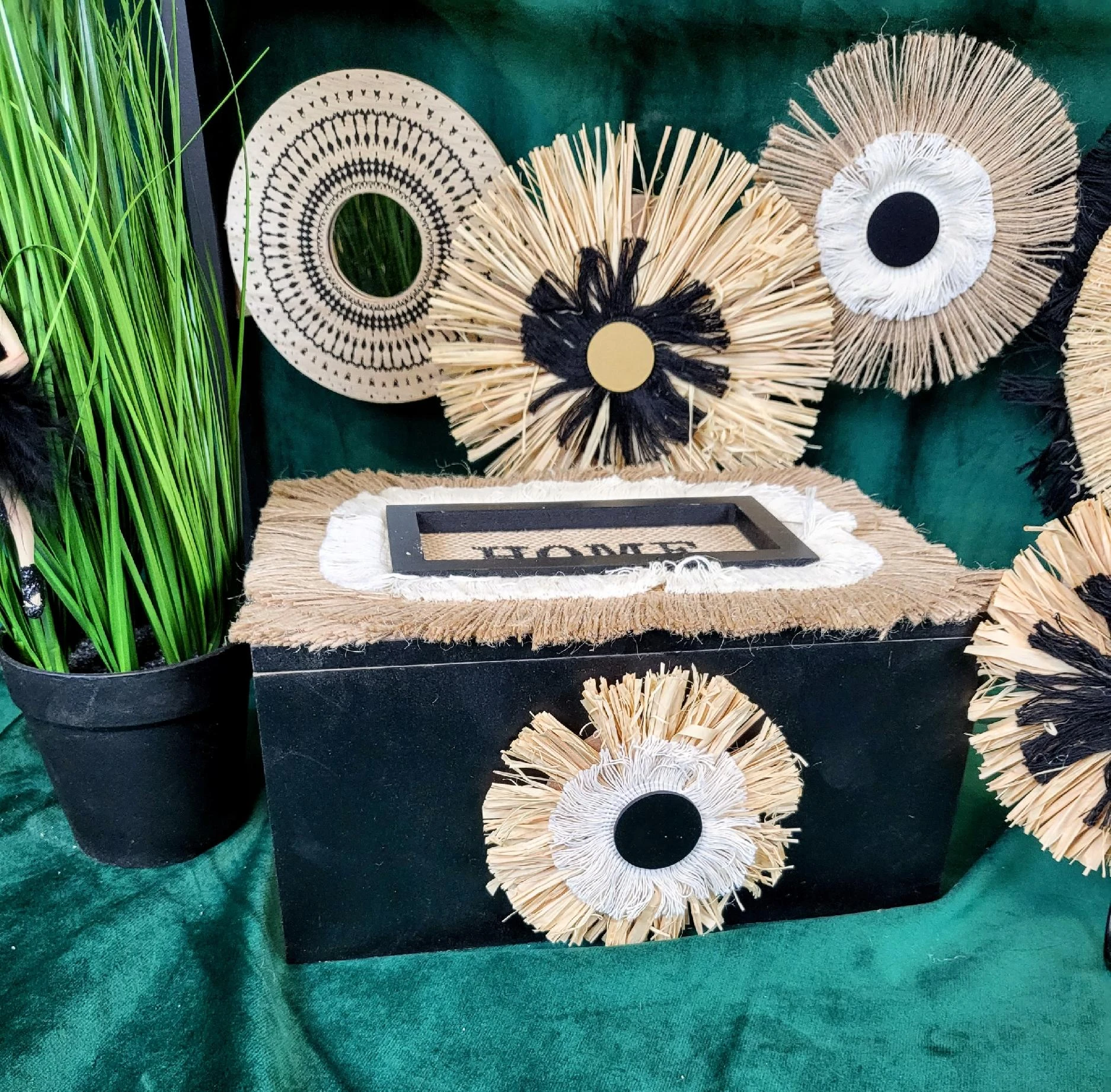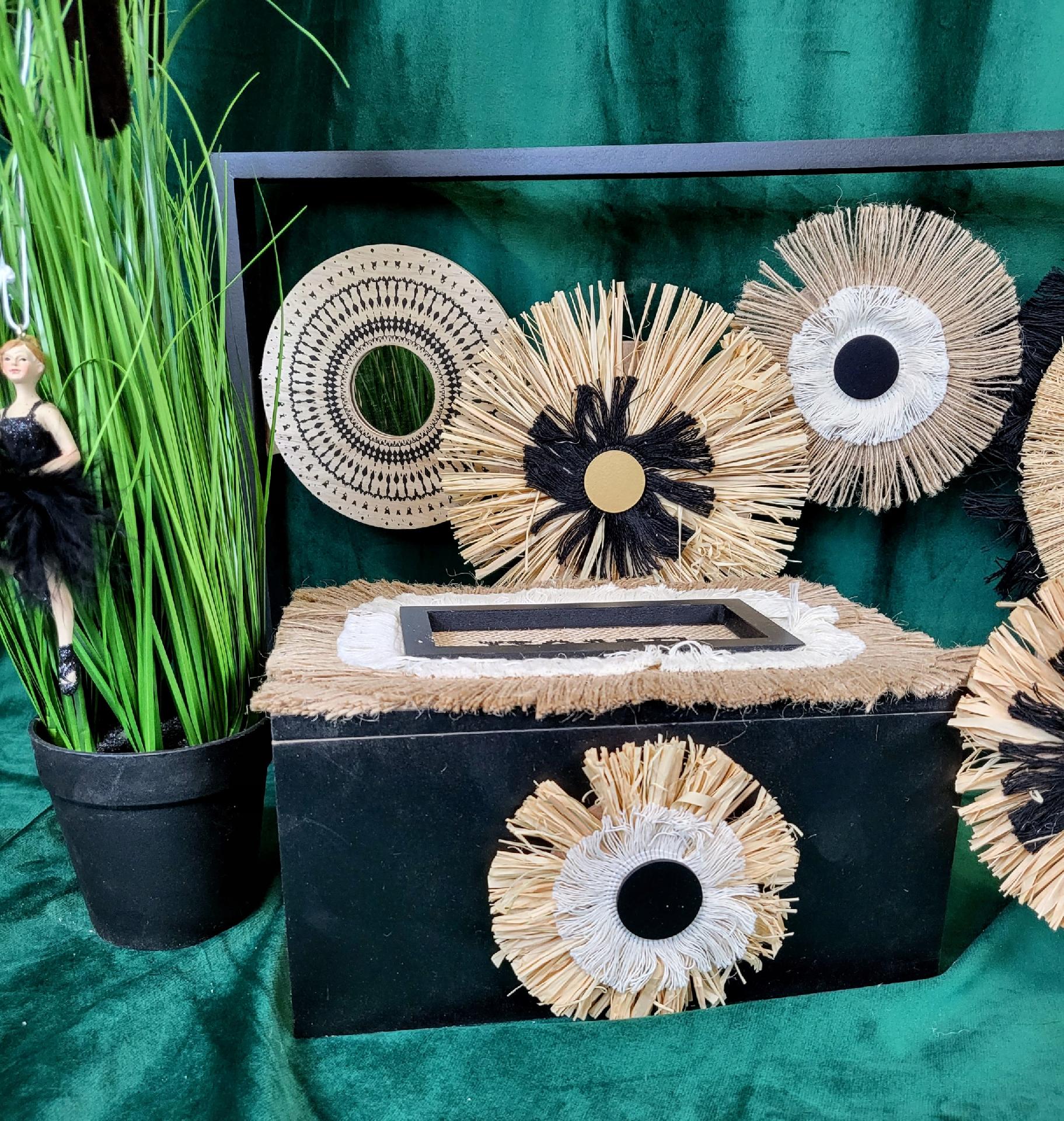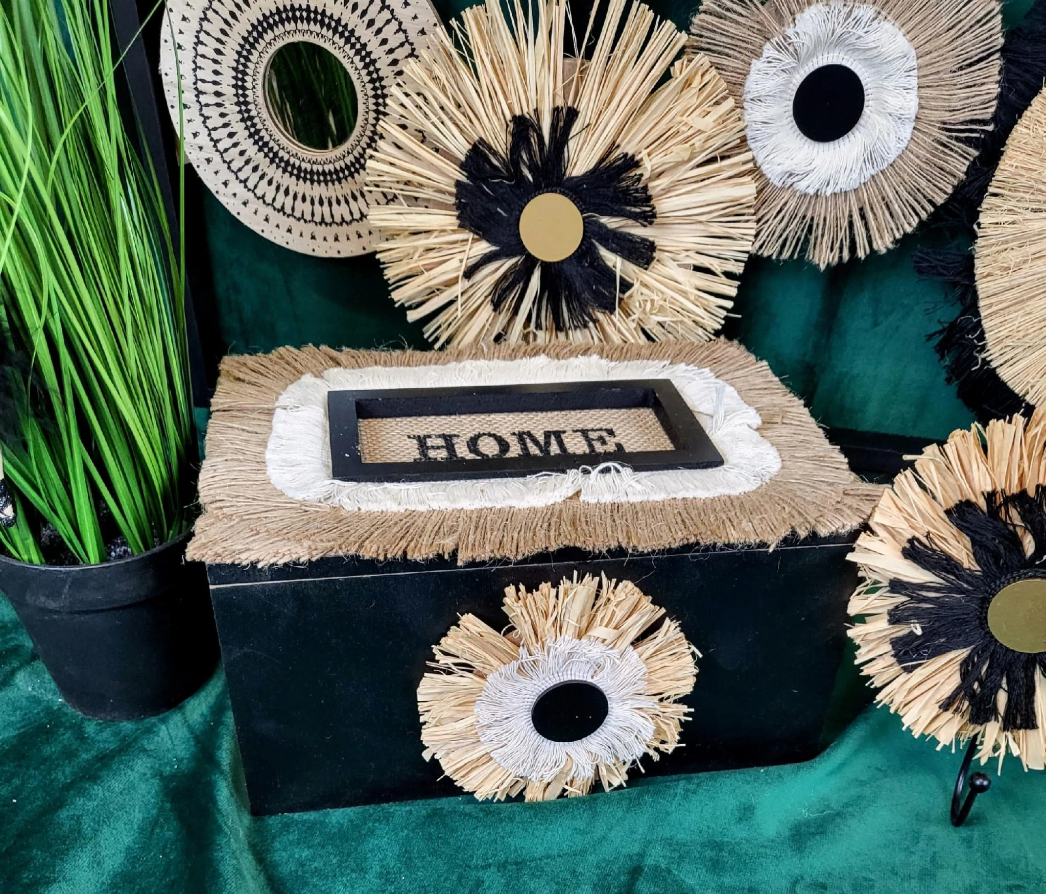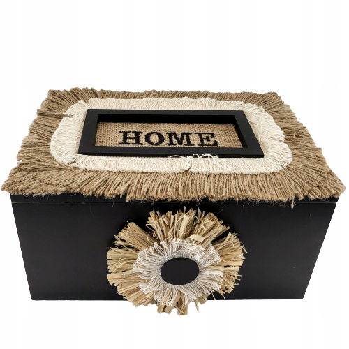 Drewniane pudełko w czarnym kolorze z naturalnymi dodatkami i napisem HOME. Jeden z najmodniejszych dodatków w tym sezonie. Może również posłużyć jako szkatułka, pudełko na klucze czy na herbatę. Ogranicza nas tylko wyobraźnia.