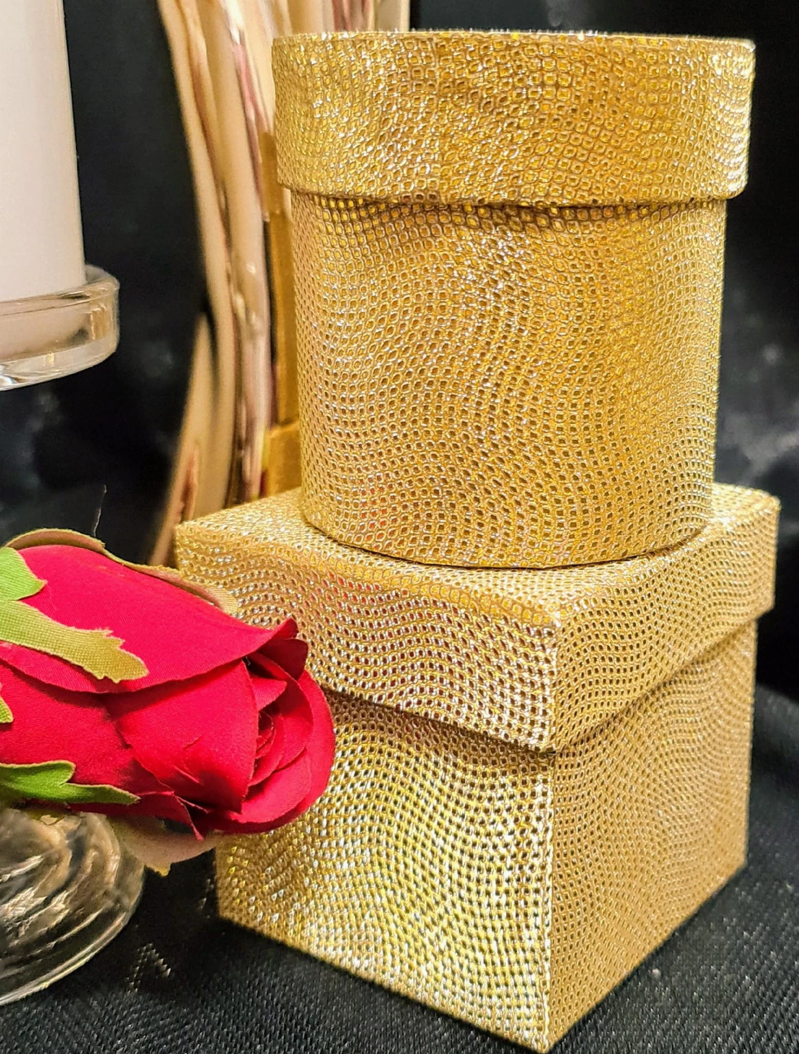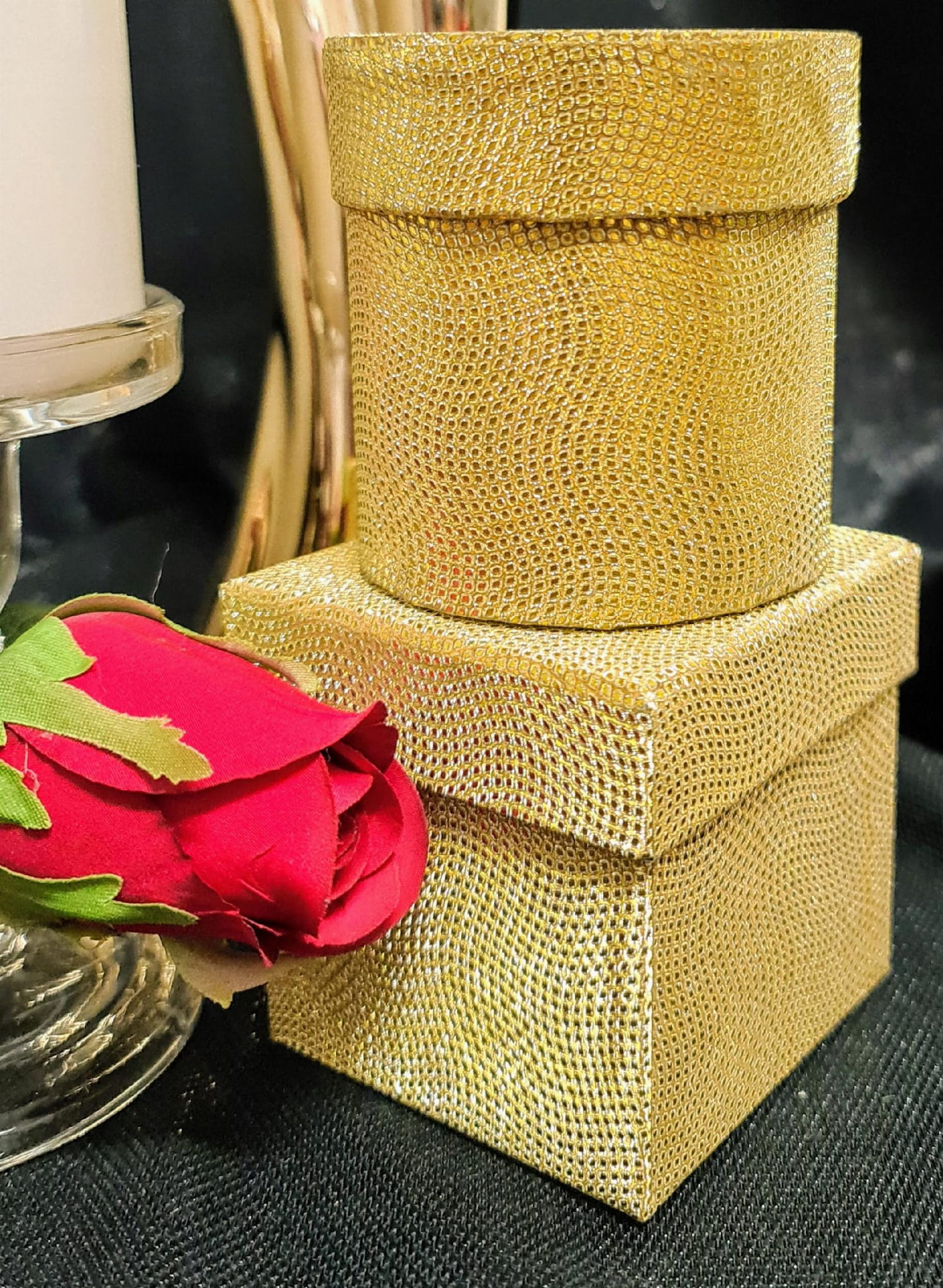 PUDEŁKO ZŁOTE BROKAT H7,5CM 7,5x7,5cm