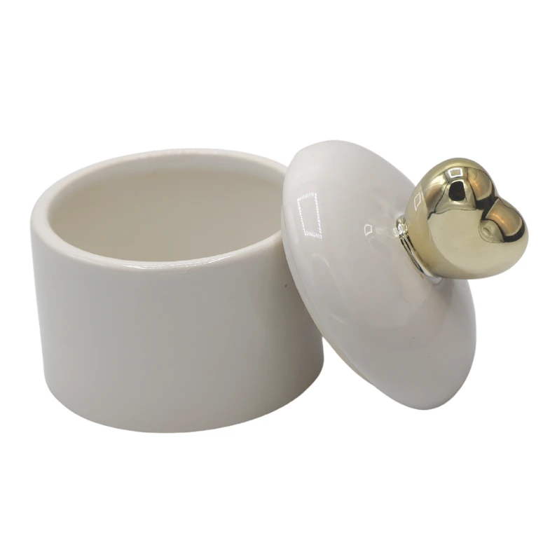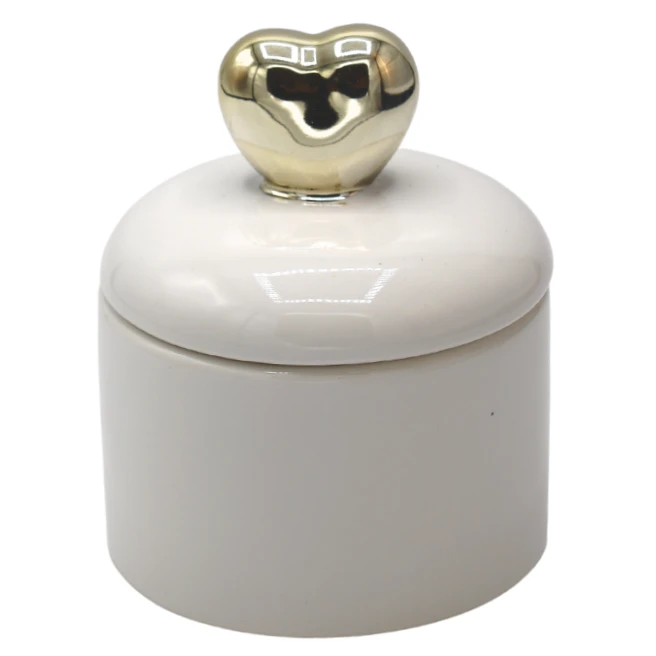 PUZDERKO CERAMICZNE BIAŁE ZE ZŁOTYM SERCEM 8,2x8,2x9,8 cm