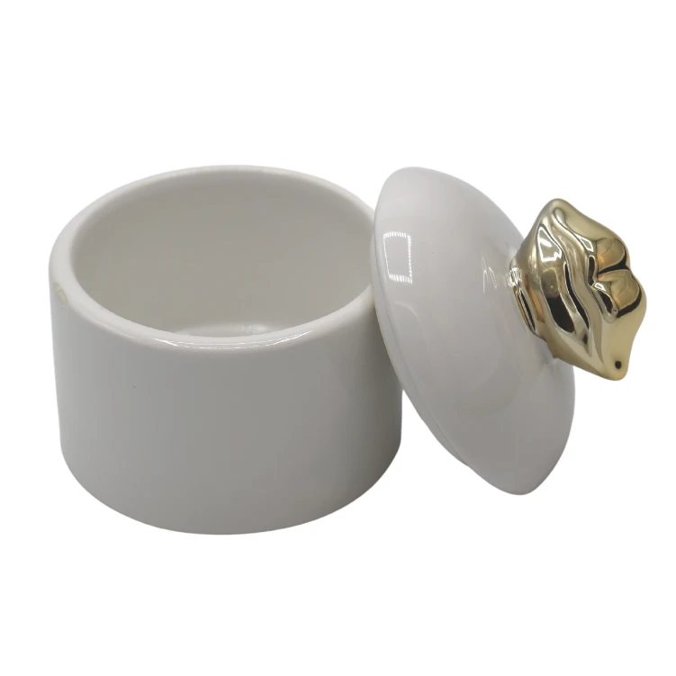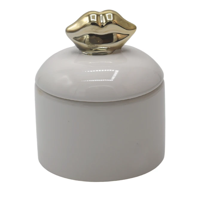PUZDERKO CERAMICZNE BIAŁE ZE ZŁOTYMI USTAMI 8,2x8,2x9,8 cm