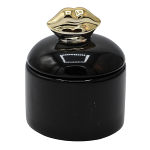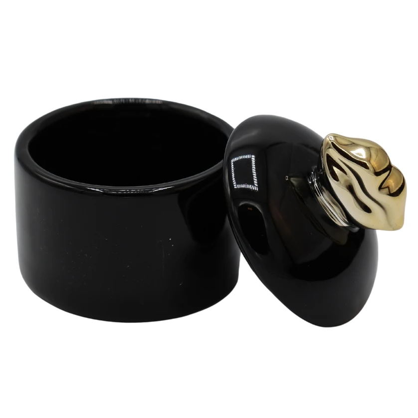 PUZDERKO CERAMICZNE CZARNE ZE ZŁOTYMI USTAMI 8,2x9,8 cm