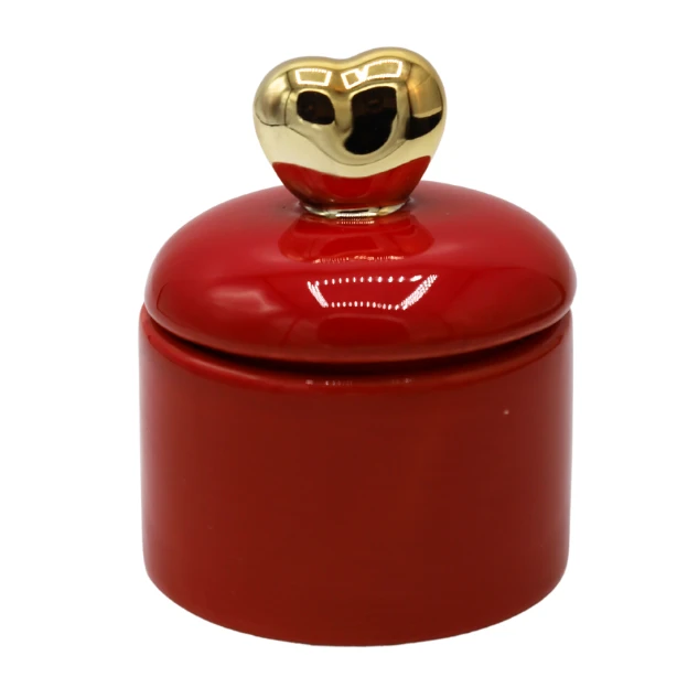 PUZDERKO CERAMICZNE CZERWONE ZE ZŁOTYM SERCEM 8,2x9,8 cm