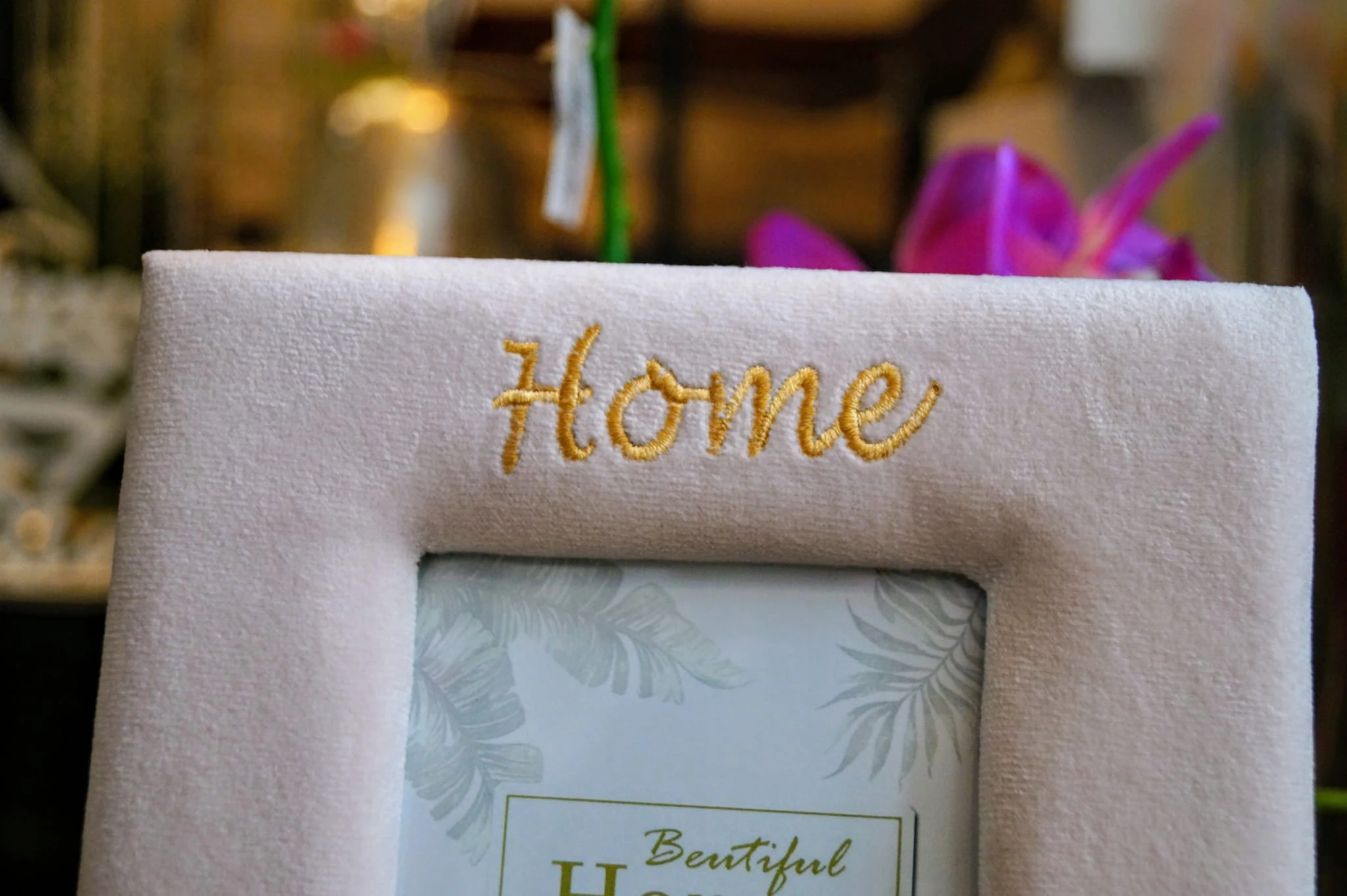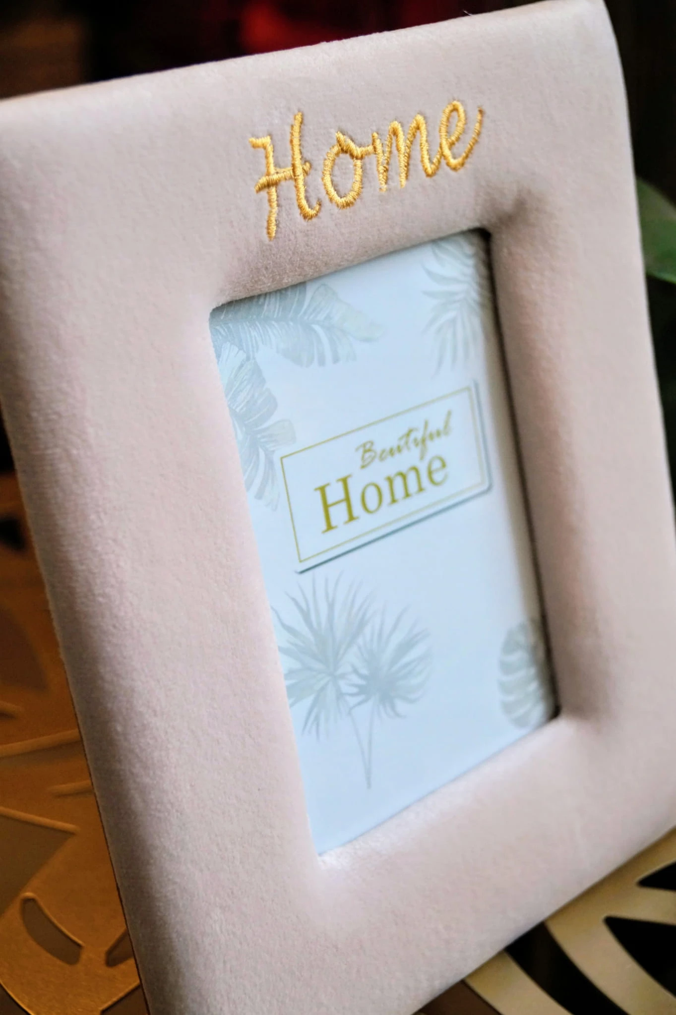 Welurowa ramka do zdjęć w modnym, nowoczesnym stylu.
