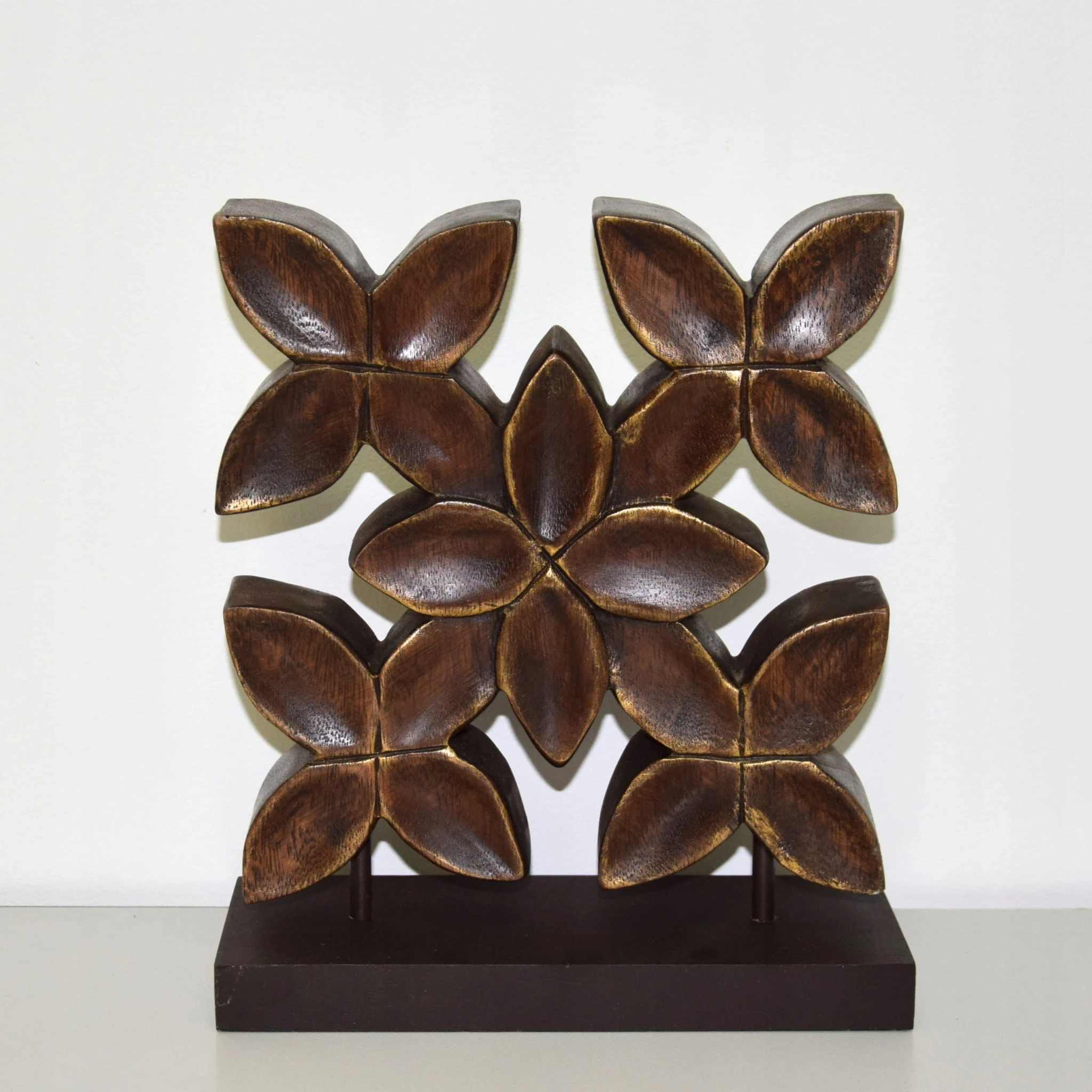 Przedstawiająca pięć czterolistnych koniczyn rzeźba, wykonana z niezwykle trwałego drewna akacjowego. Ręczna praca nadała figurze ciekawego designu i niepowtarzalności. Dodatkowym atutem jest symbolika koniczyn – szczęście.