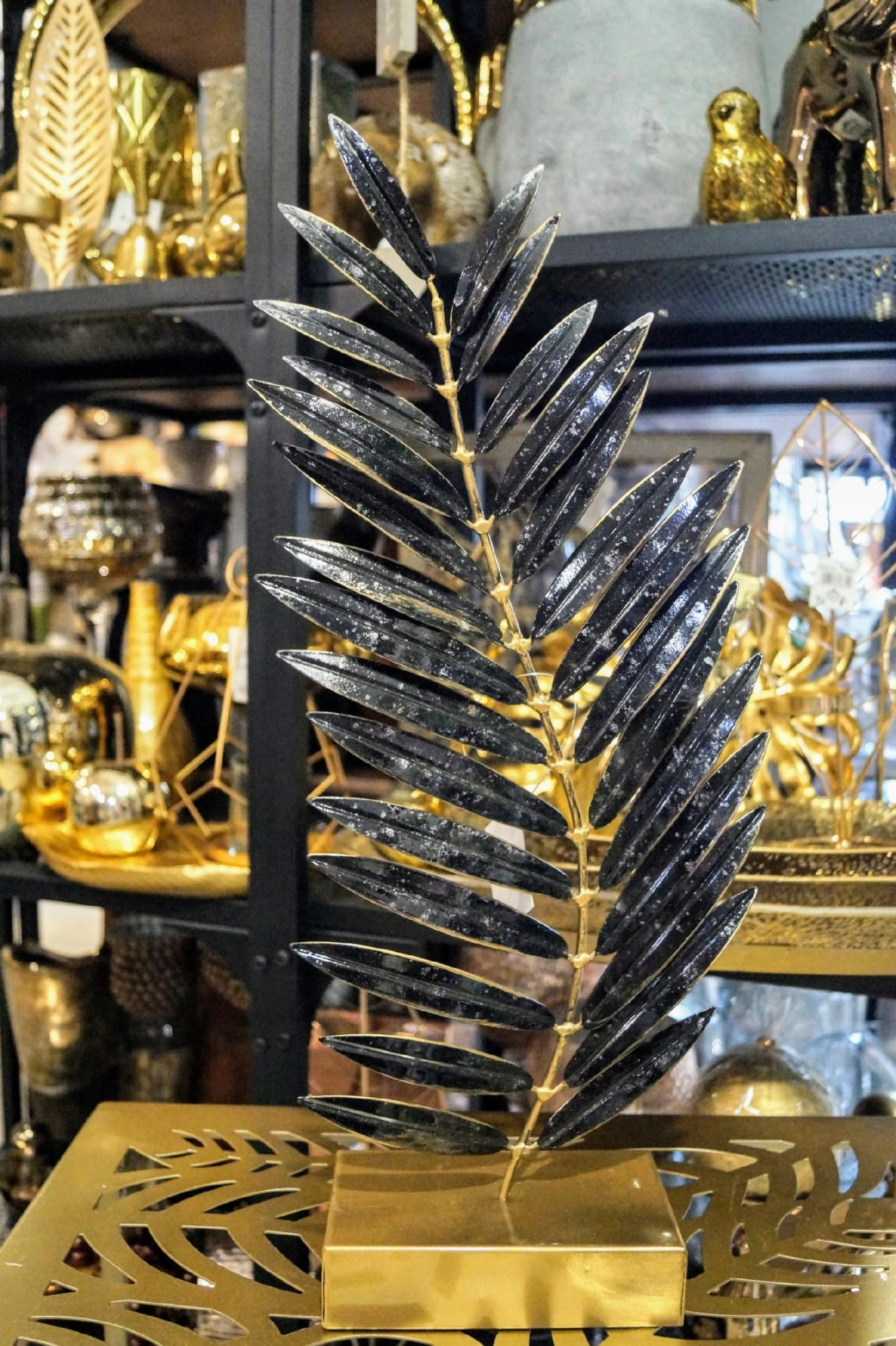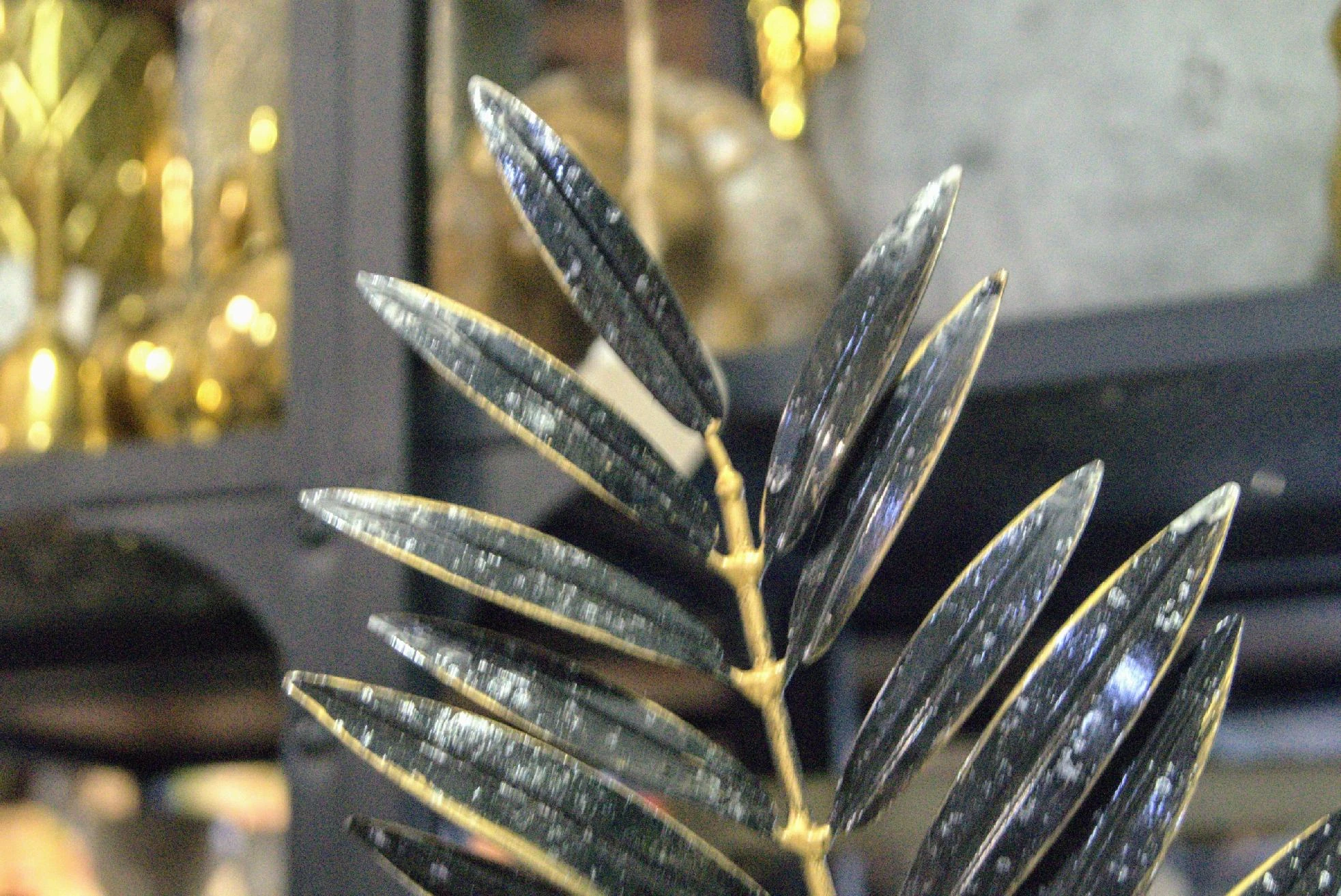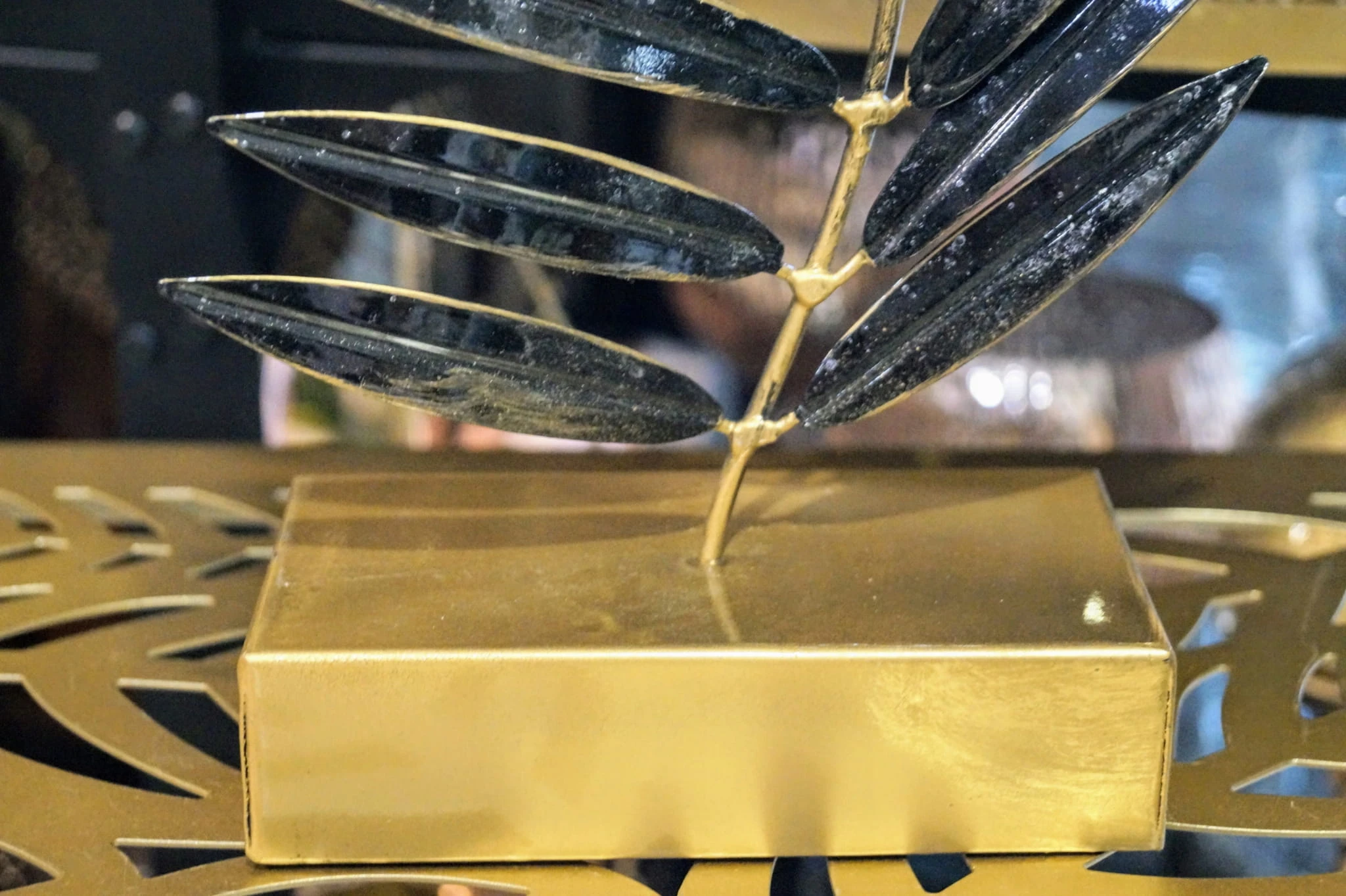 Rzeźba na podstawie – CZARNO-ZŁOTY LIŚĆ NA ZŁOTEJ PODSTAWIE
