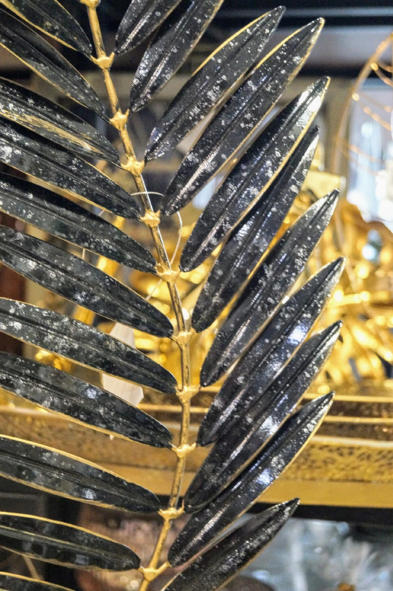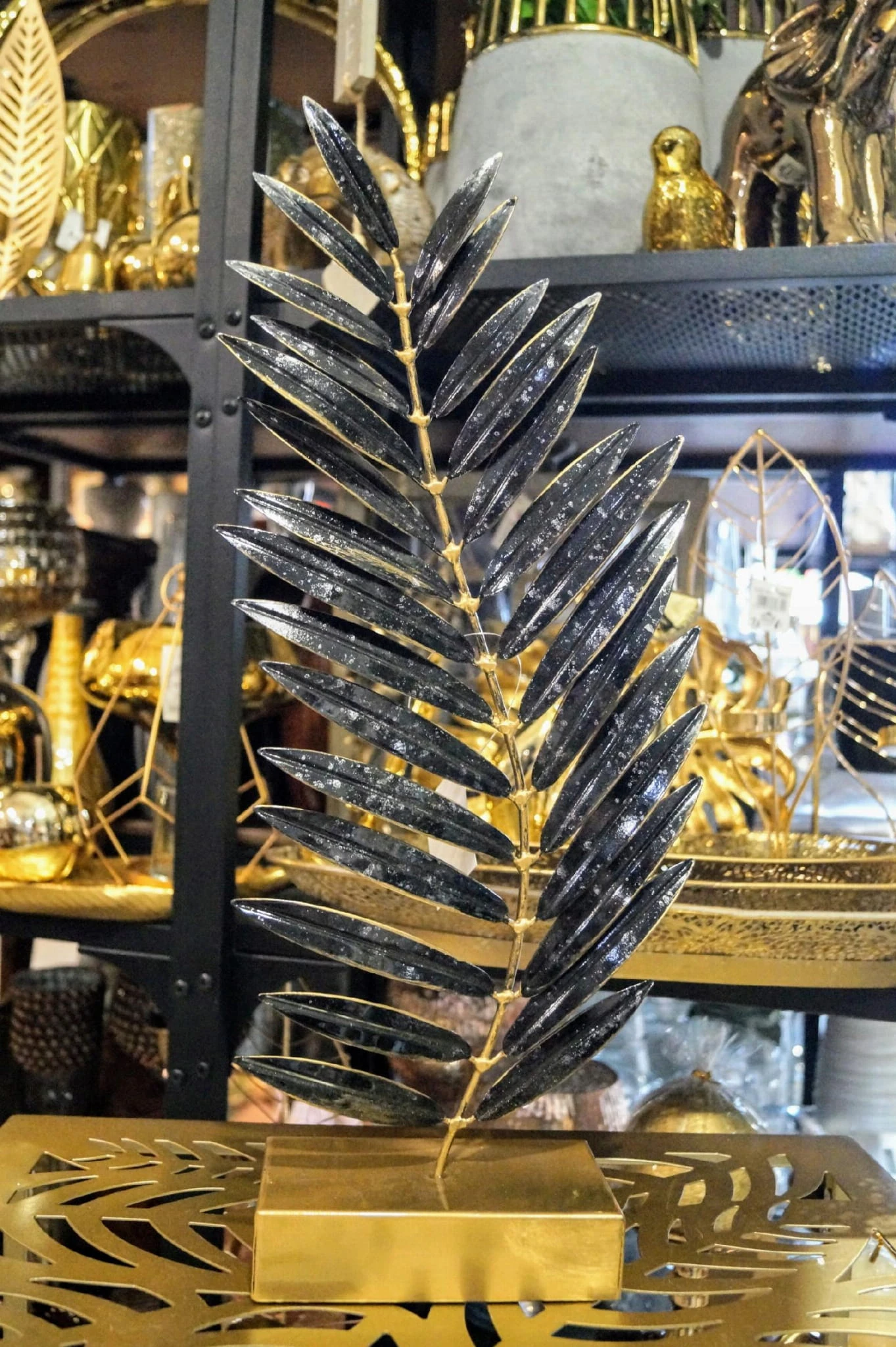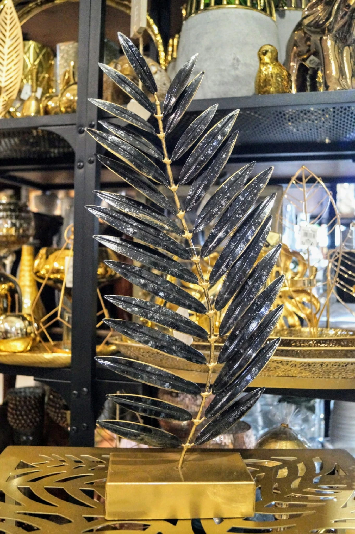 Rzeźba na podstawie – CZARNO-ZŁOTY LIŚĆ NA ZŁOTEJ PODSTAWIE