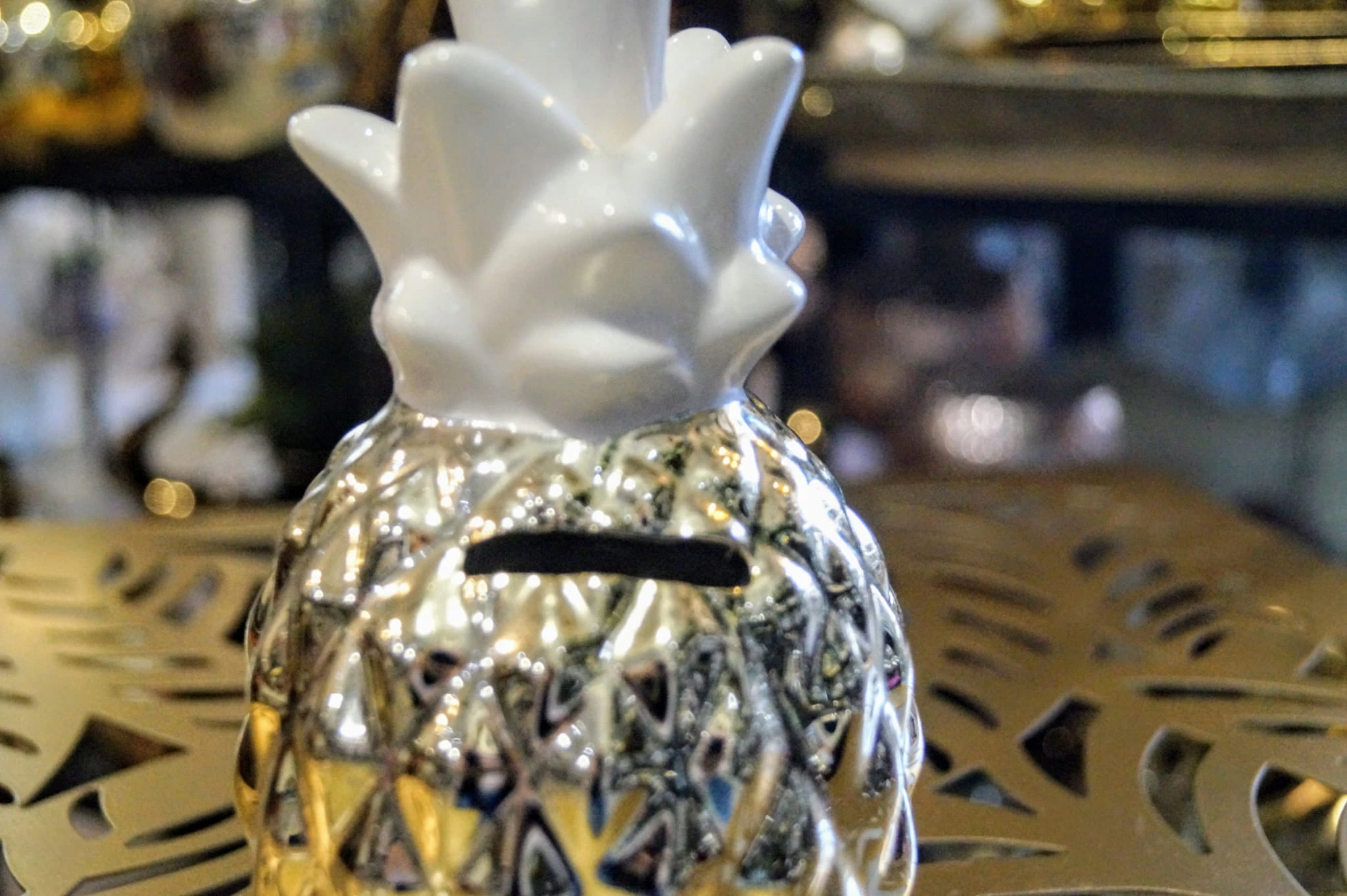 Porcelanowa skarbonka w kształcie ananasa. Idealny pomysł na niebanalny prezent . Doskonale spełni swoją rolę również jako nowoczesna dekoracja.