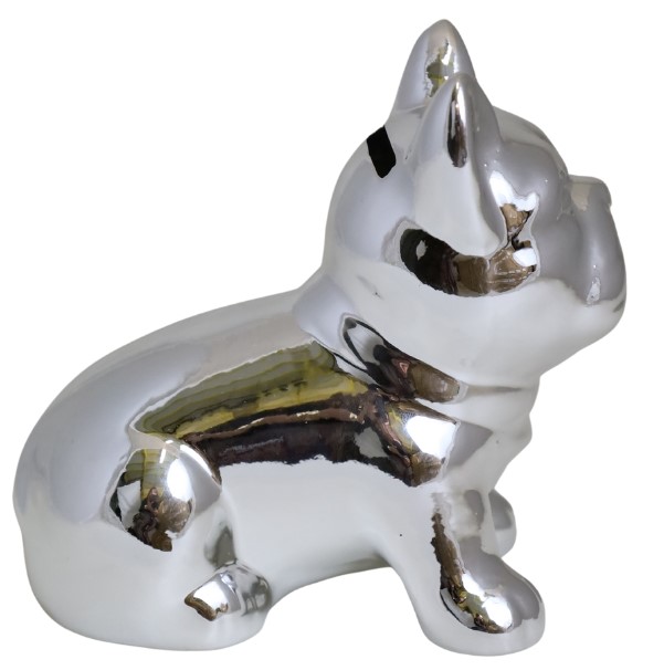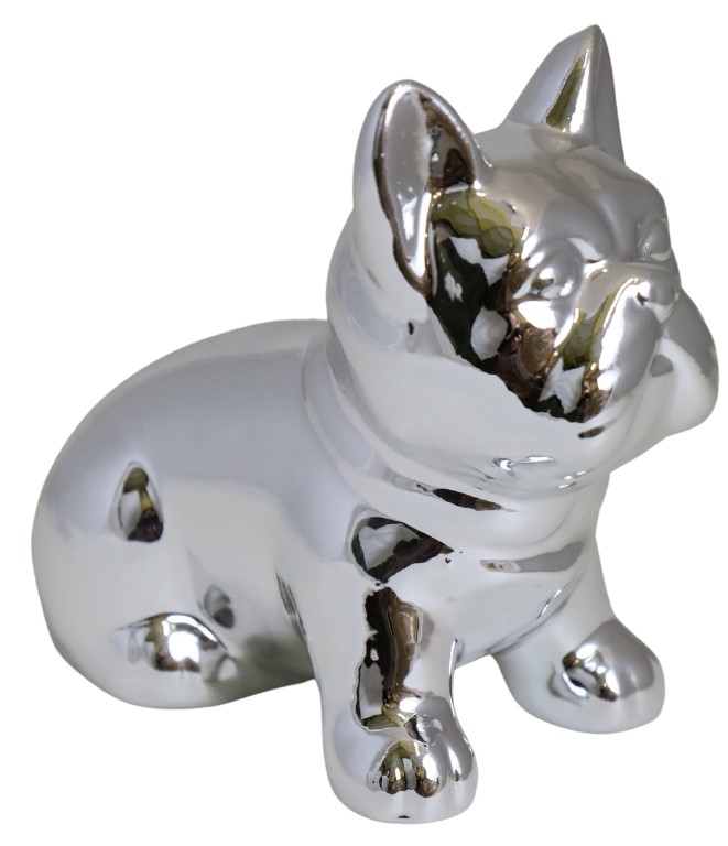 SKARBONKA CERAMICZNA BULDOG SREBRNY MAŁY 12X7X10 CM