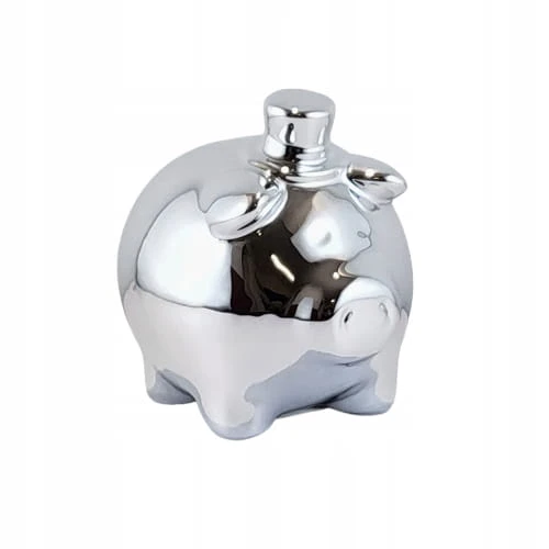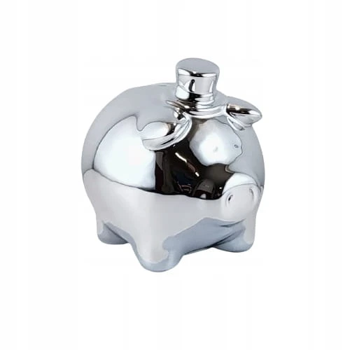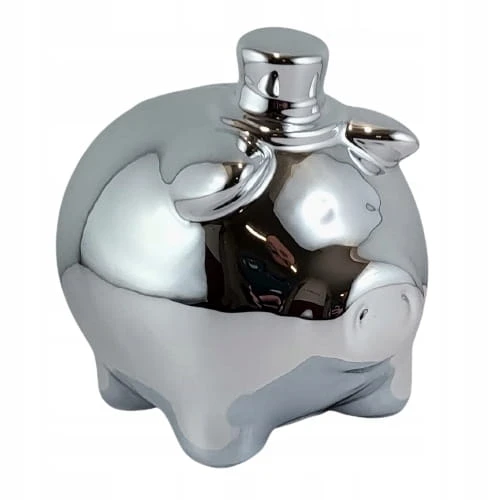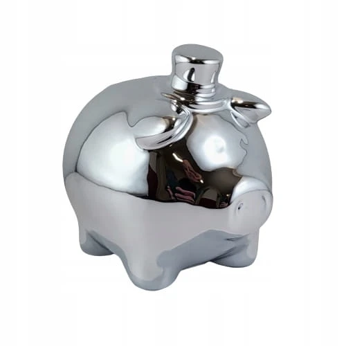 SKARBONKA CERAMICZNA ŚWINKA Z KAPELUSZEM SREBRNA