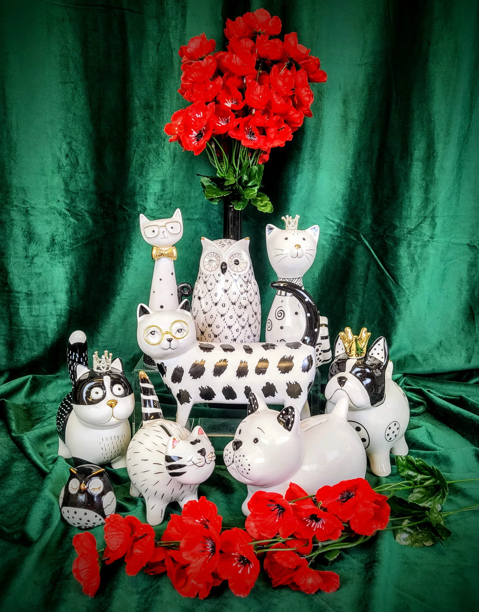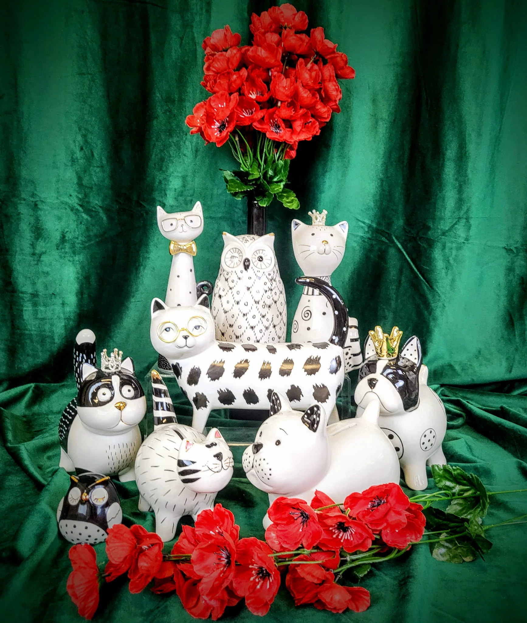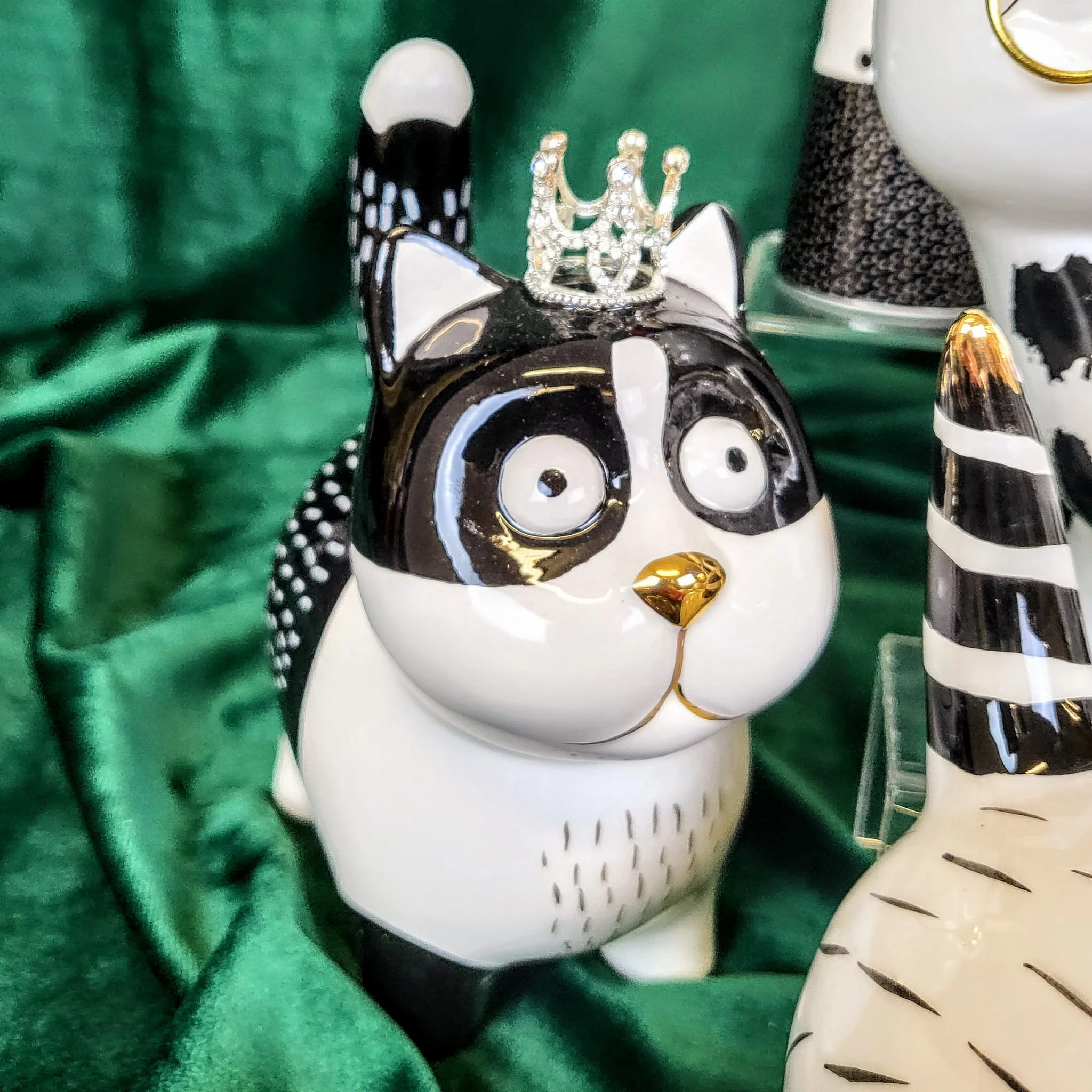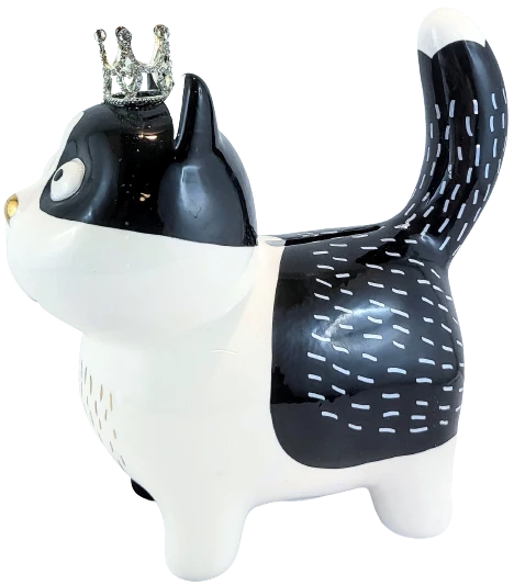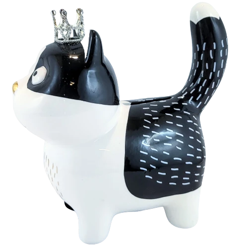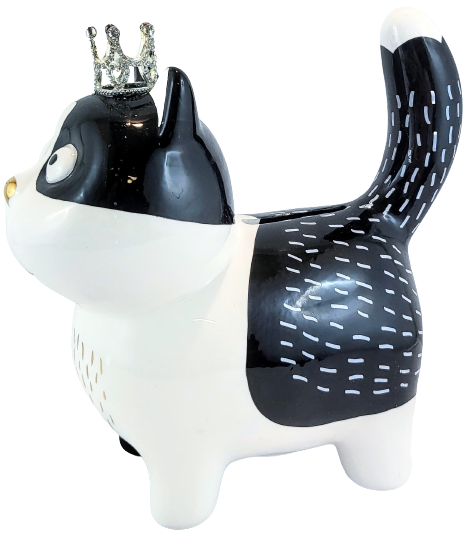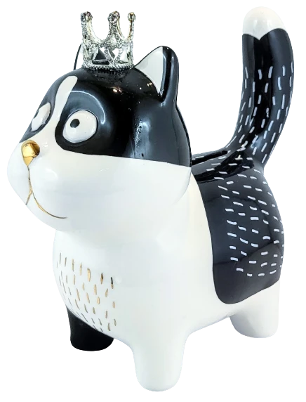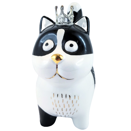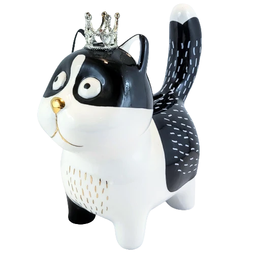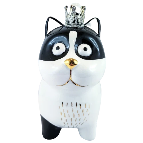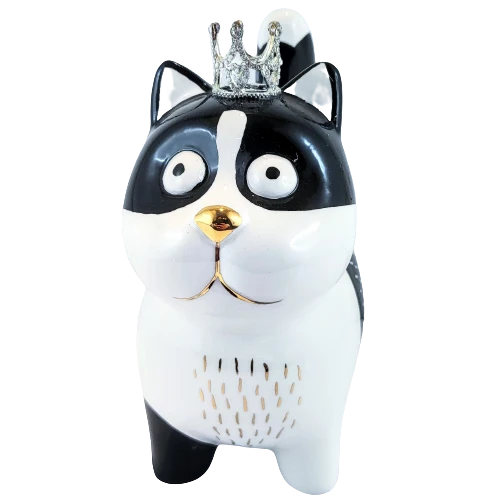 SKARBONKA CZARNO-BIAŁY KOT KOTEK W KORONIE