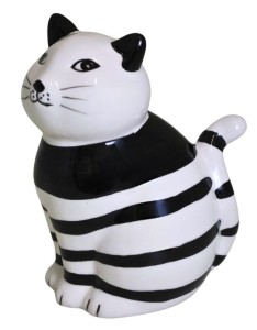 SKARBONKA KOT W CZARNO-BIAŁE PASKI 10x12x15 cm