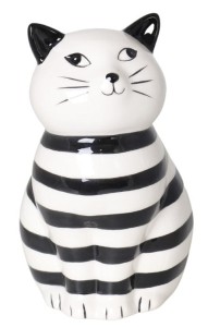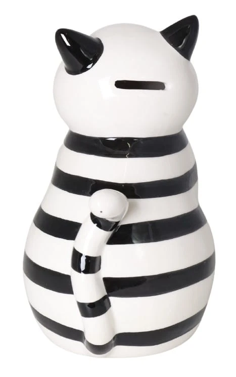 SKARBONKA KOT W CZARNO-BIAŁE PASKI 13x11x20 cm
