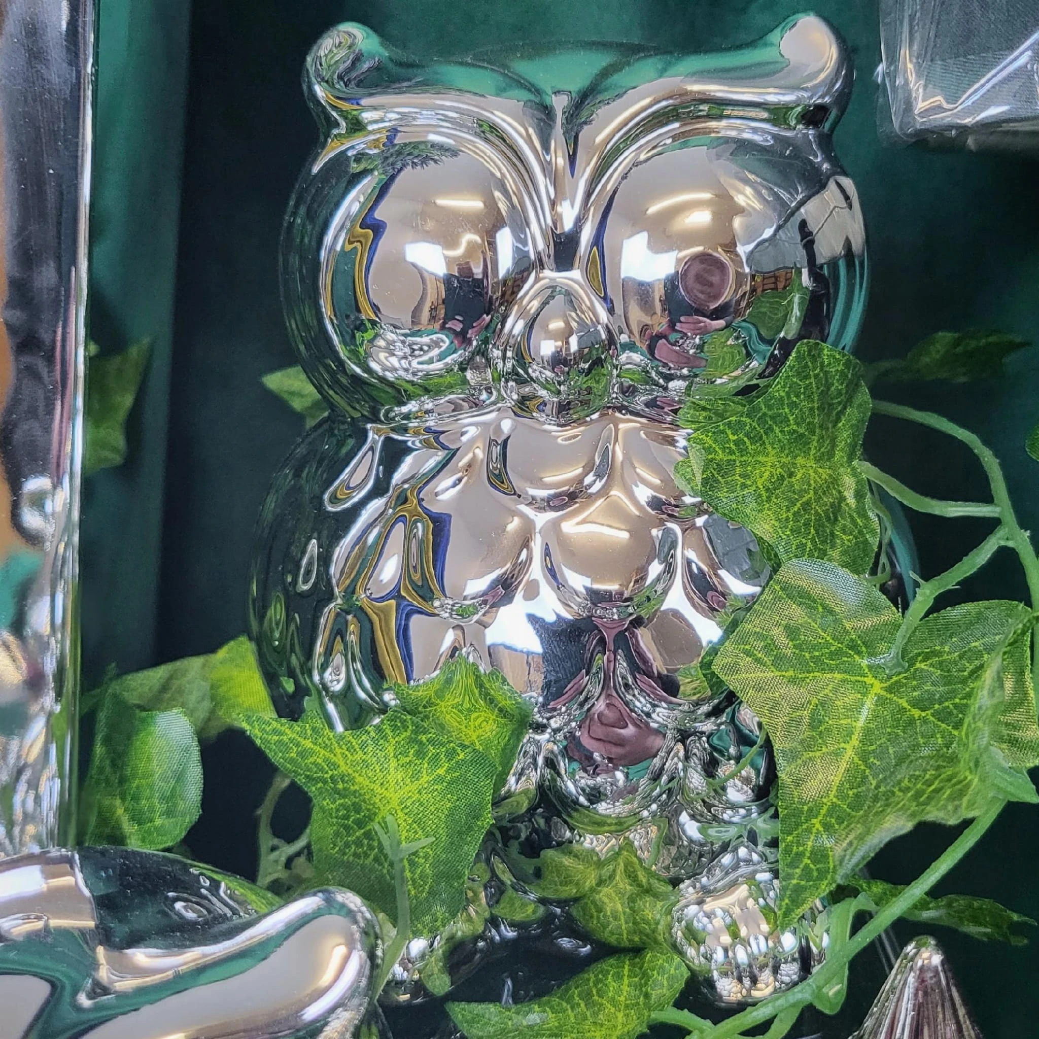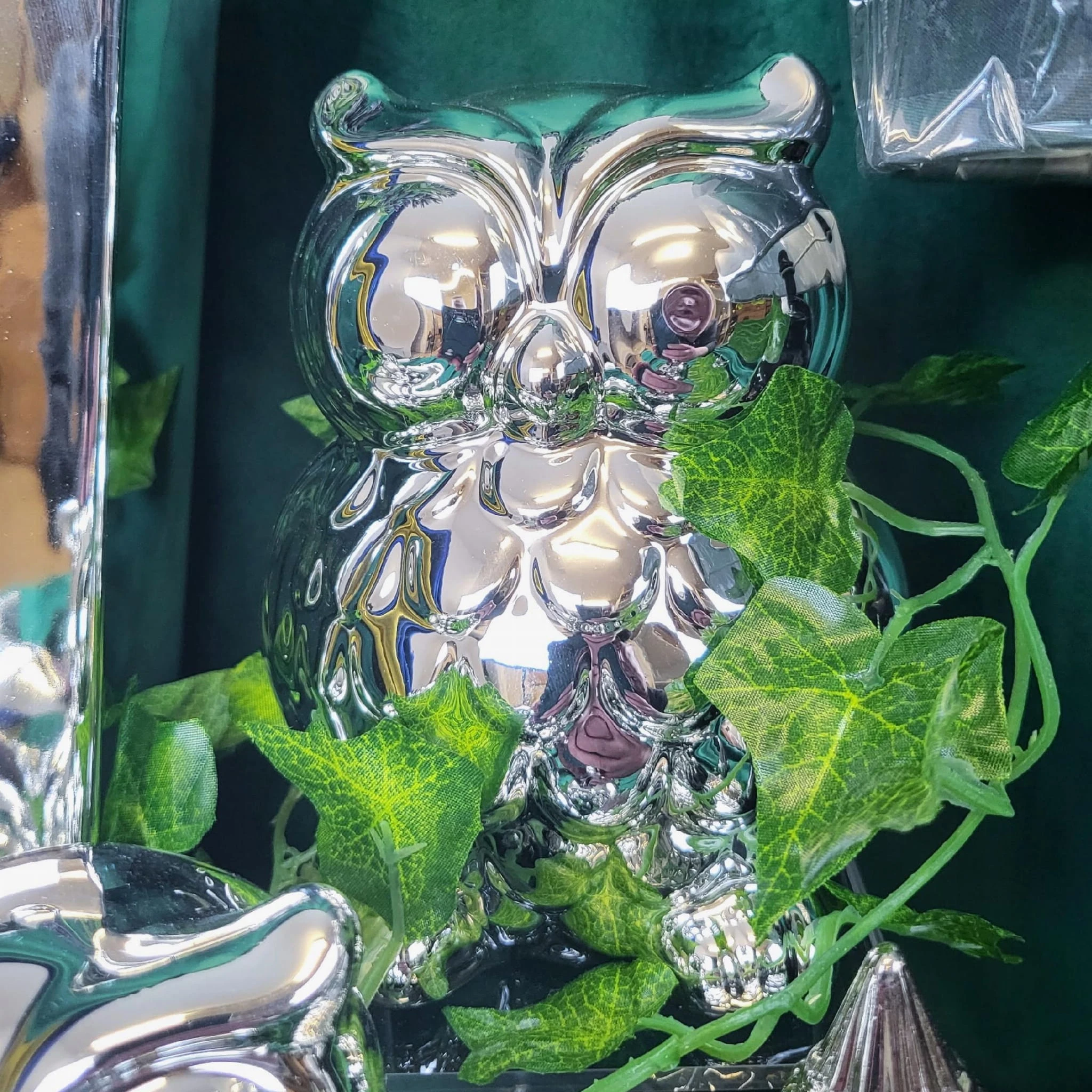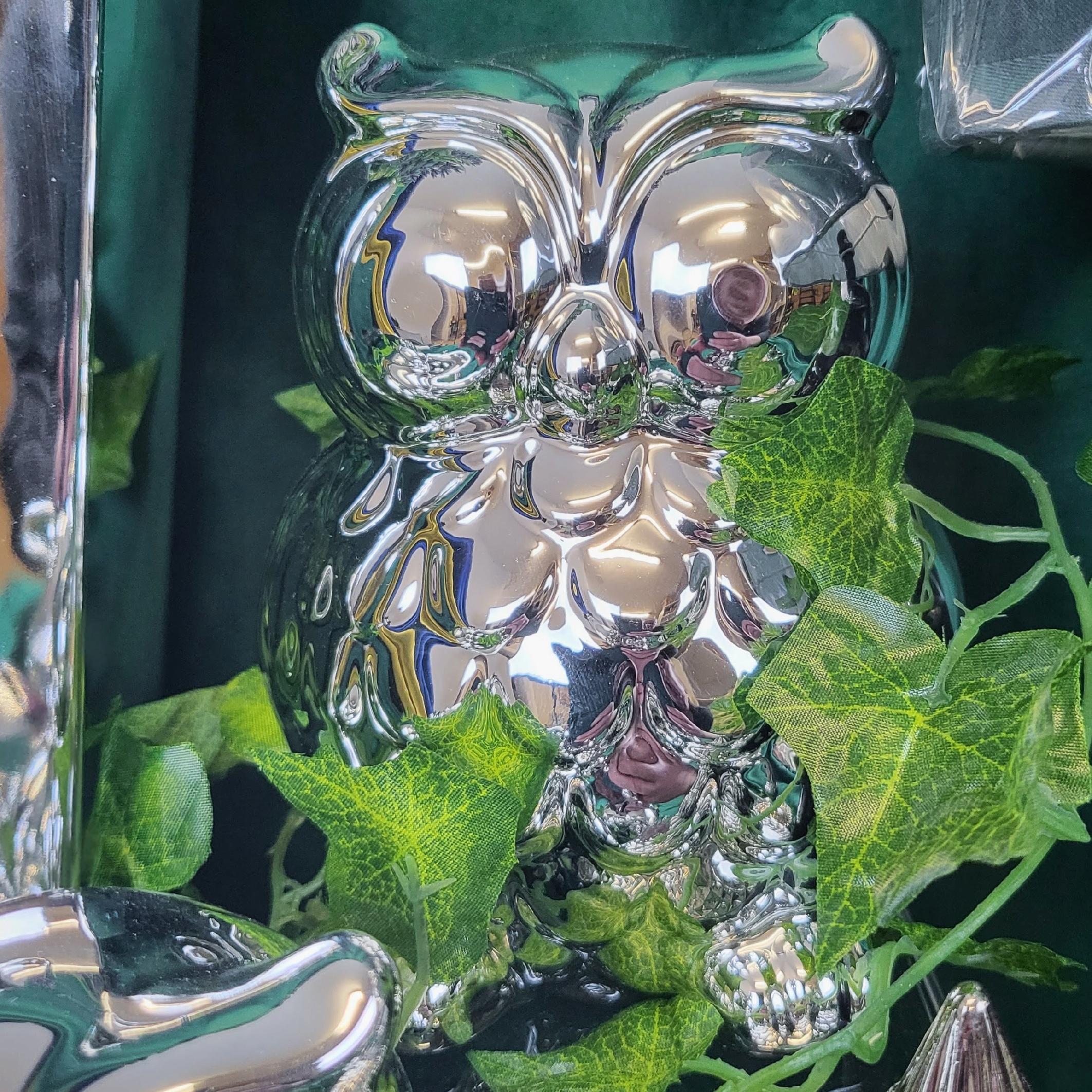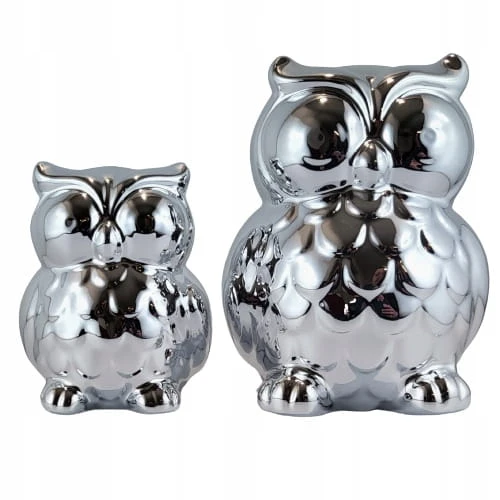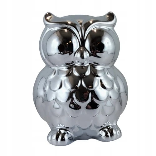 SKARBONKA SOWA SREBRNA DUŻA 13,8 CM WYSOKI POŁYSK