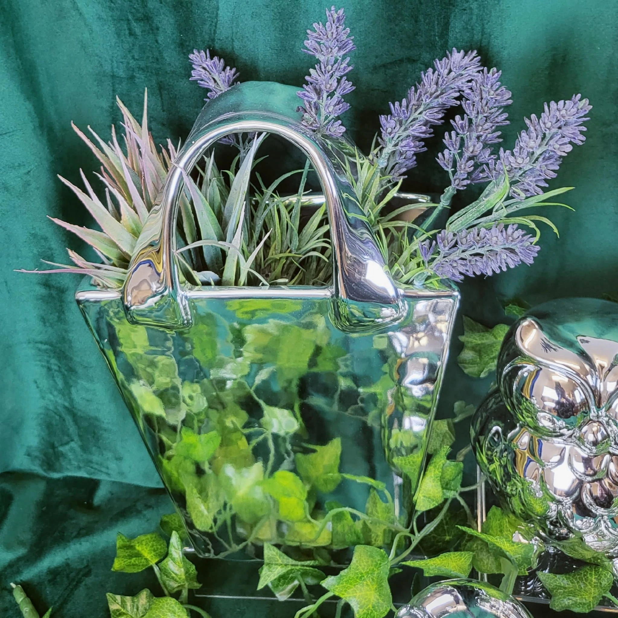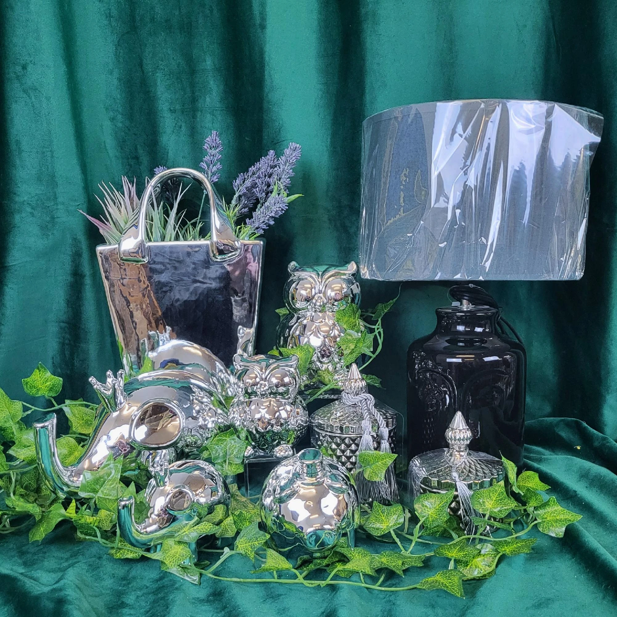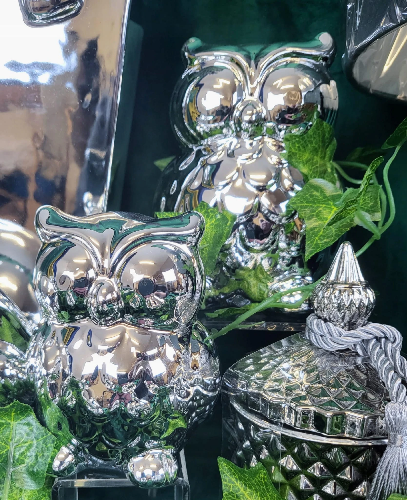 SKARBONKA SOWA SREBRNA DUŻA 13,8 CM WYSOKI POŁYSK