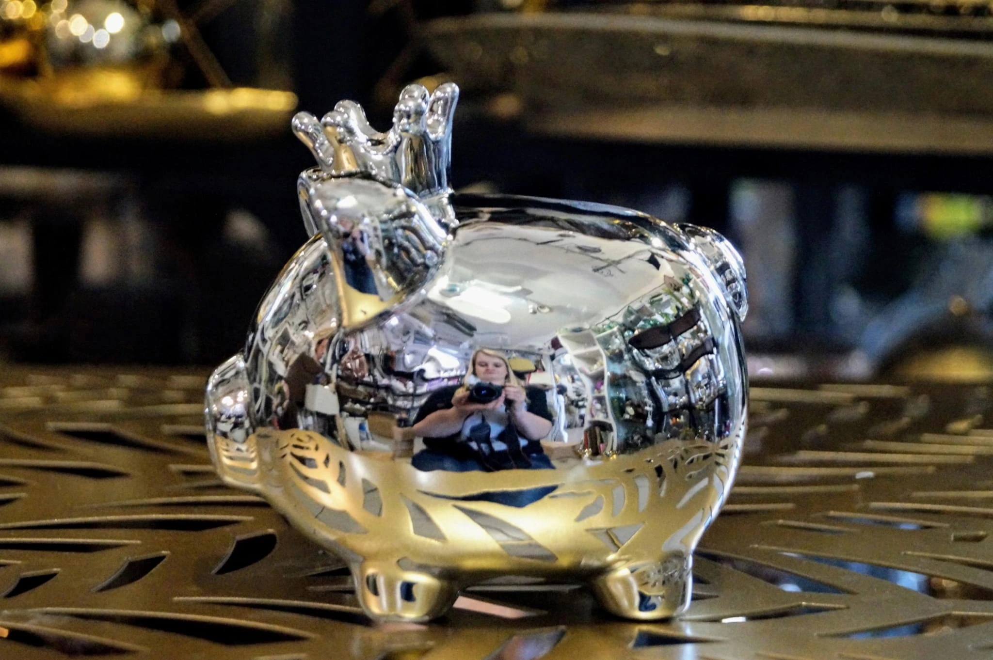 SKARBONKA ŚWINKA SREBRNA 11cm