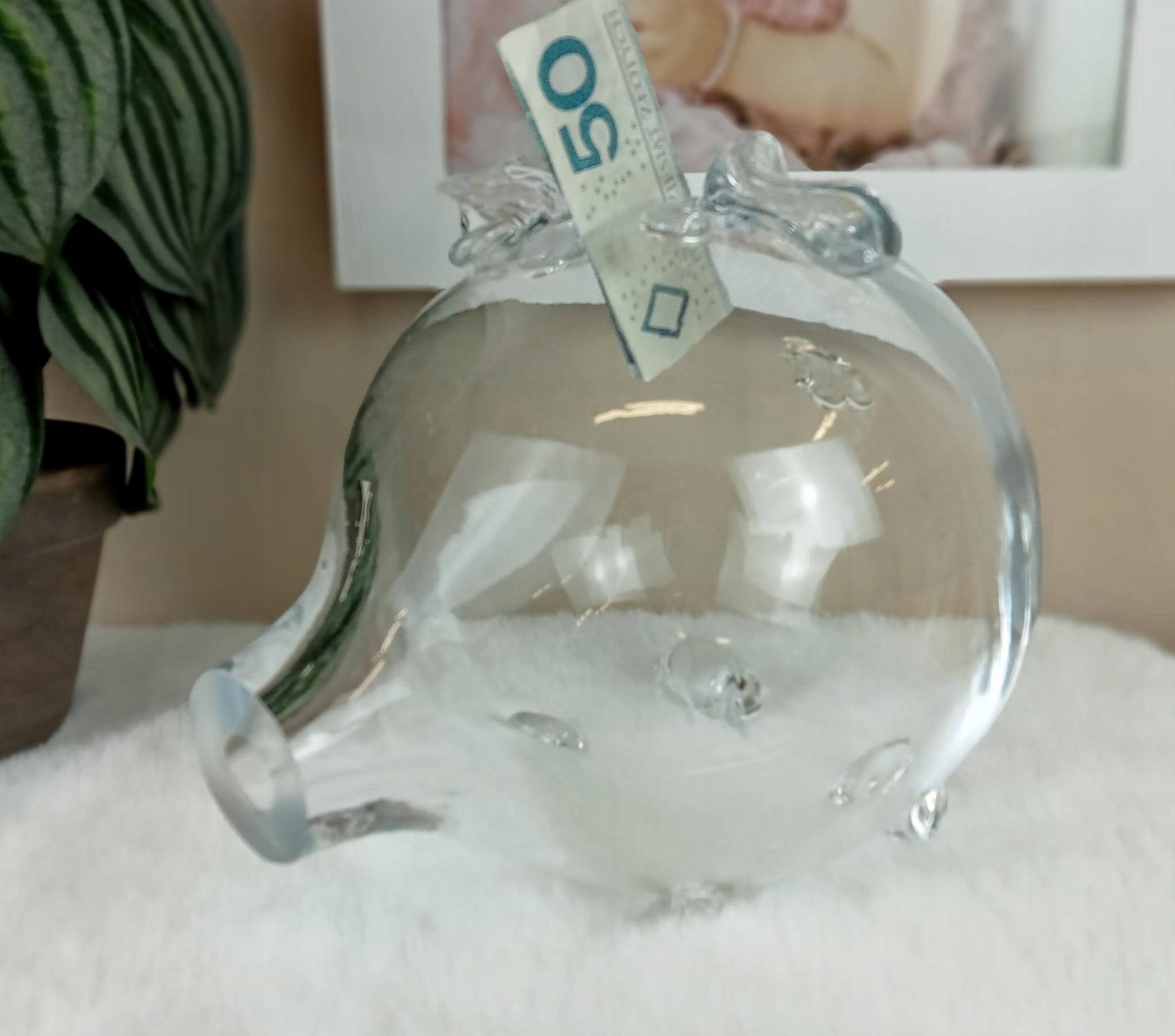 SKARBONKA ŚWINKA ŚWINIA SZKLANA DO ZBICIA 15,5 CM