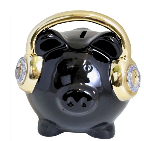 Czarna skarbonka ze złotymi słuchawkami