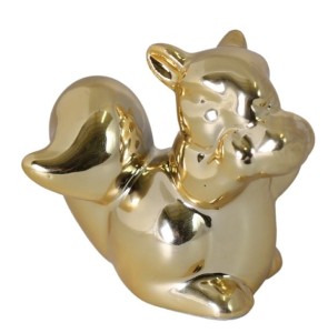 Piękna skarbonka złota wiewiórka wykonana z ceramiki. Skarbonka posiada silikonowy dekielek, dzięki czemu nie ma konieczności jej rozbijania, aby dostać się do zawartości.
