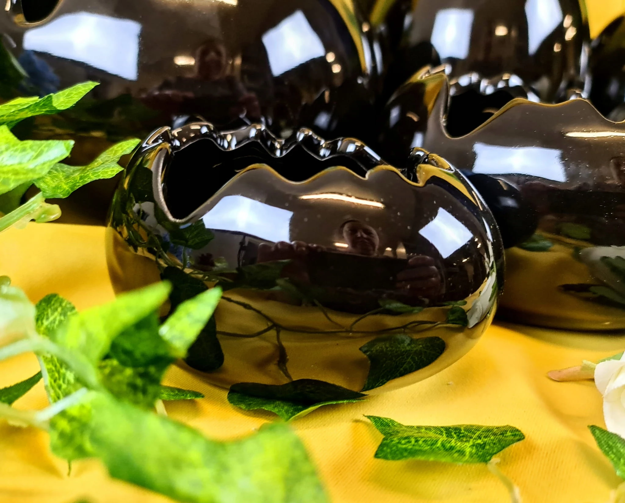 Piękna czarna skorupka jajka - Wielkanocna jak i wiosenna dekoracja do Państwa domu. Nada niepowtarzalnego charakteru wnętrzu urządzonego praktycznie w każdym stylu. Może posłużyć jako osłonka, doniczka czy misa.
