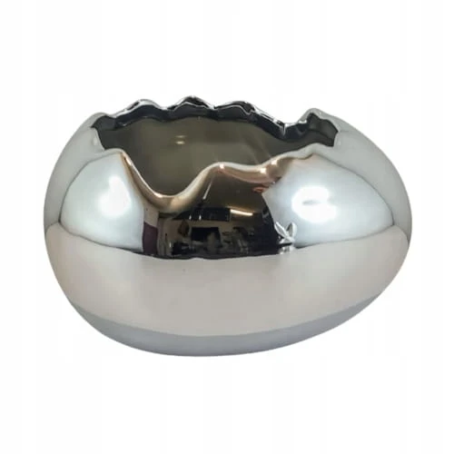 Piękna srebrna skorupka jajka - Wielkanocna jak i wiosenna dekoracja do Państwa domu. Nada niepowtarzalnego charakteru wnętrzu urządzonego praktycznie w każdym stylu. Może posłużyć jako osłonka, doniczka czy misa.