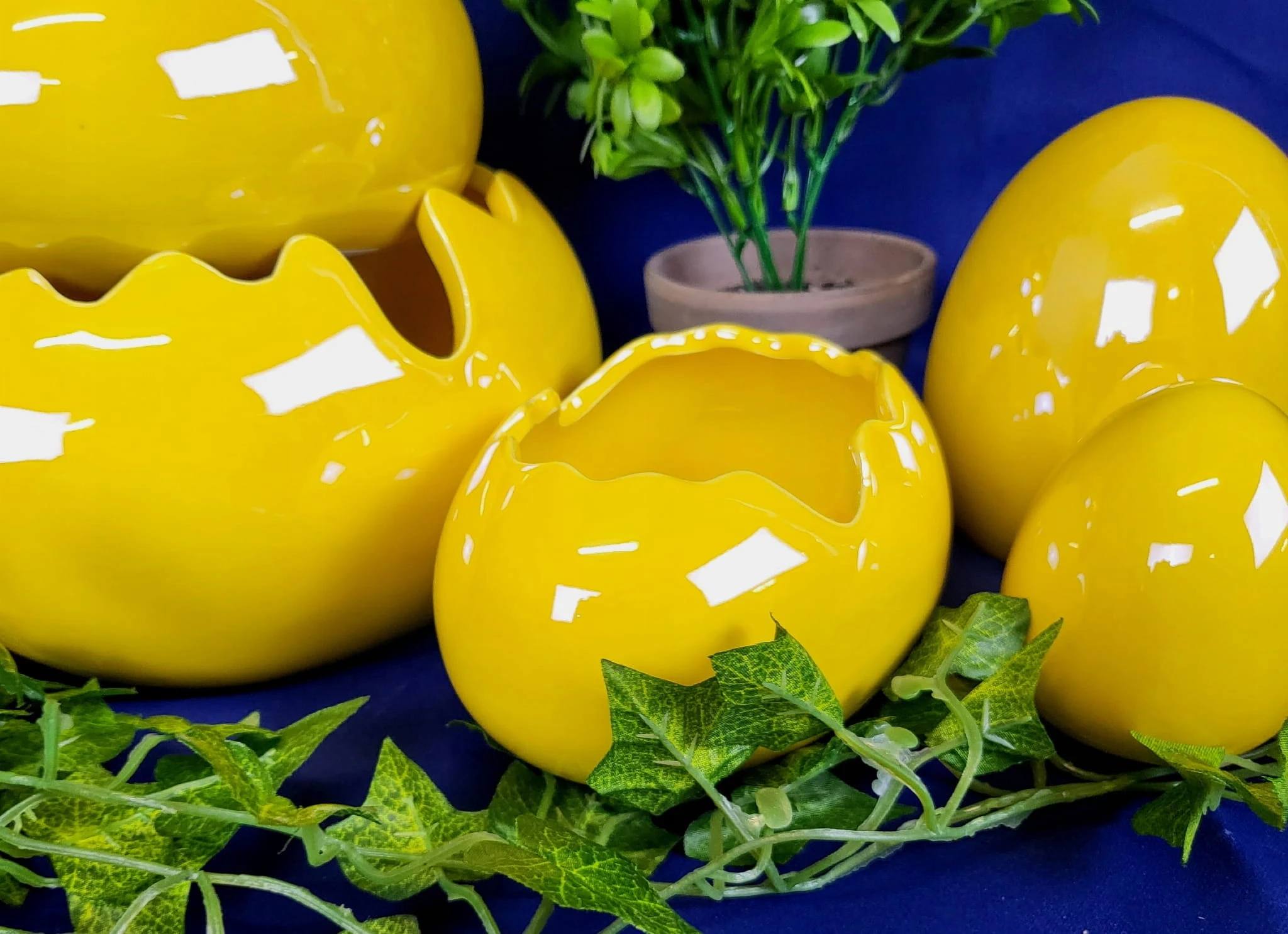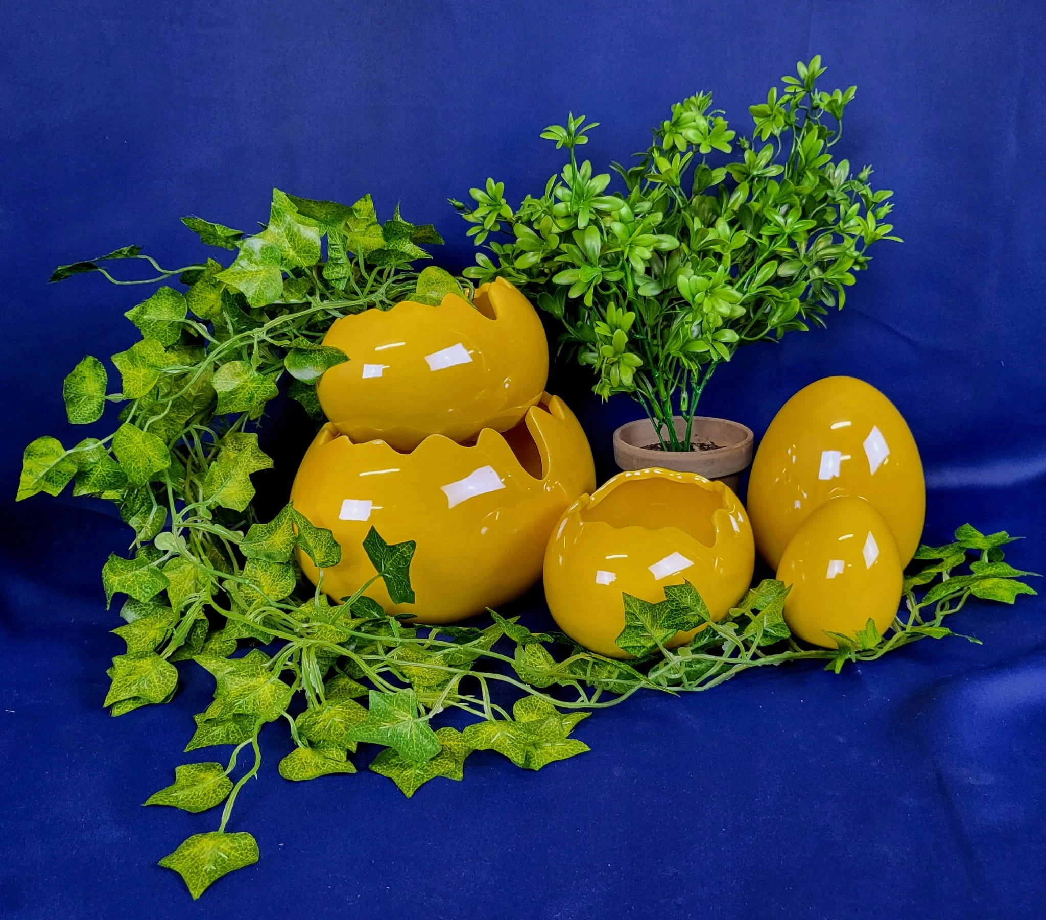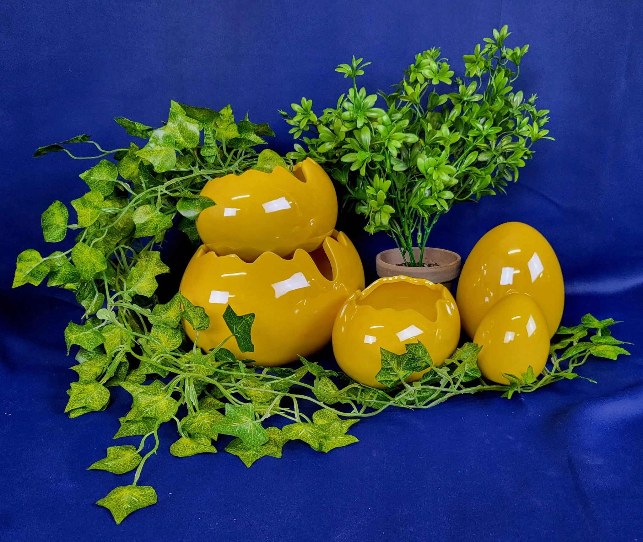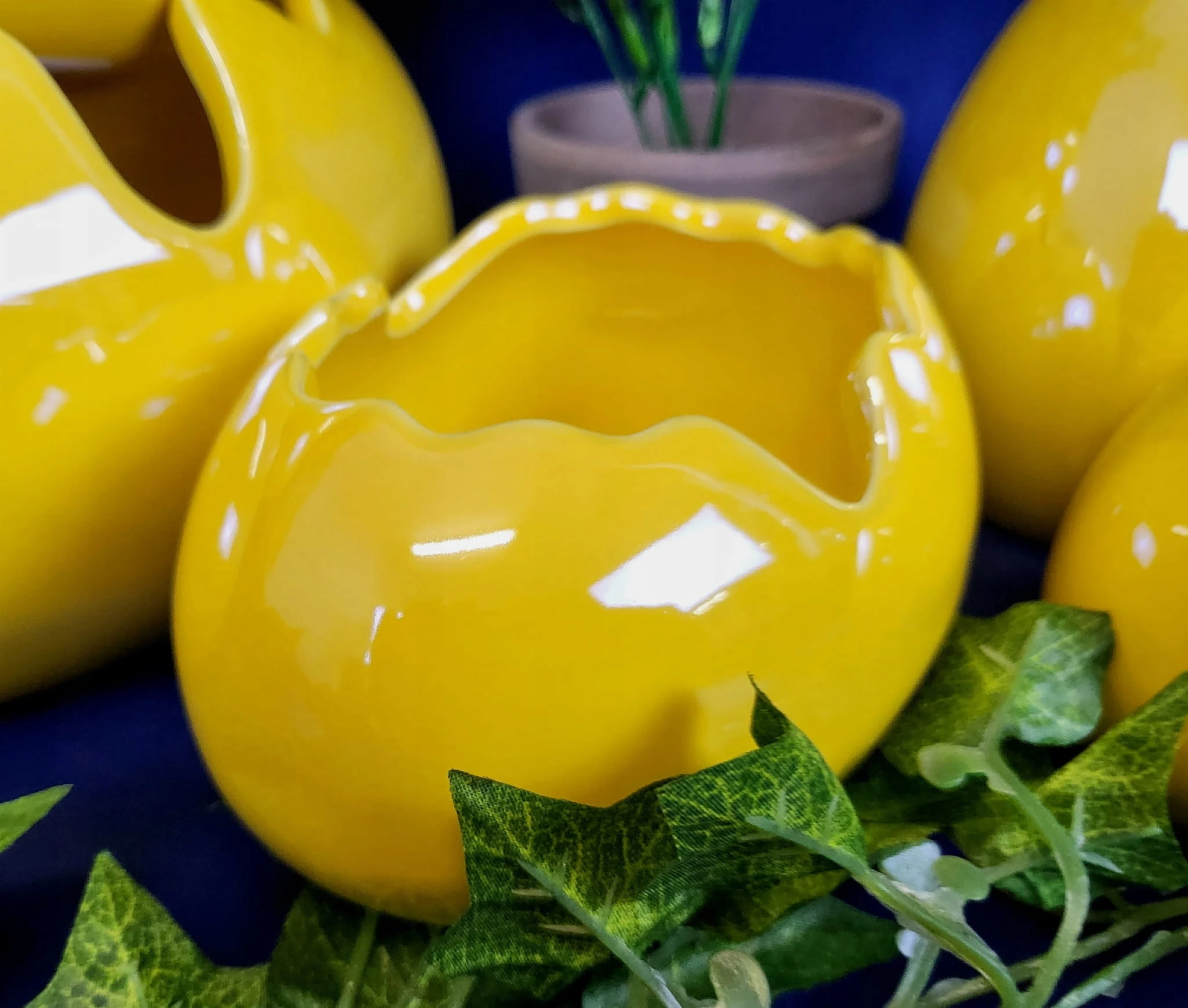 Piękna żółta skorupka jajka - Wielkanocna jak i wiosenna dekoracja do Państwa domu. Nada niepowtarzalnego charakteru wnętrzu urządzonego praktycznie w każdym stylu. Może posłużyć jako osłonka, doniczka czy misa.