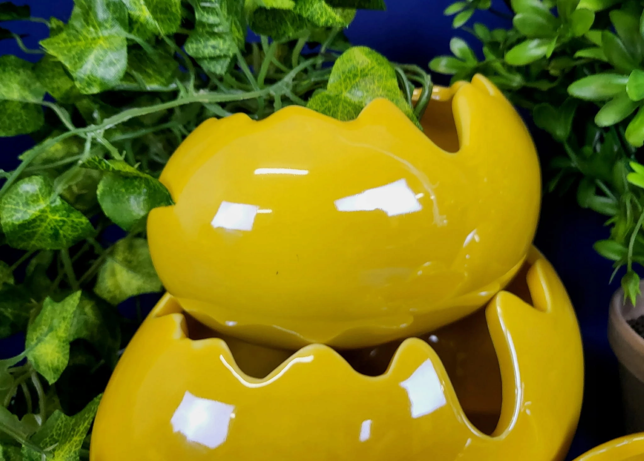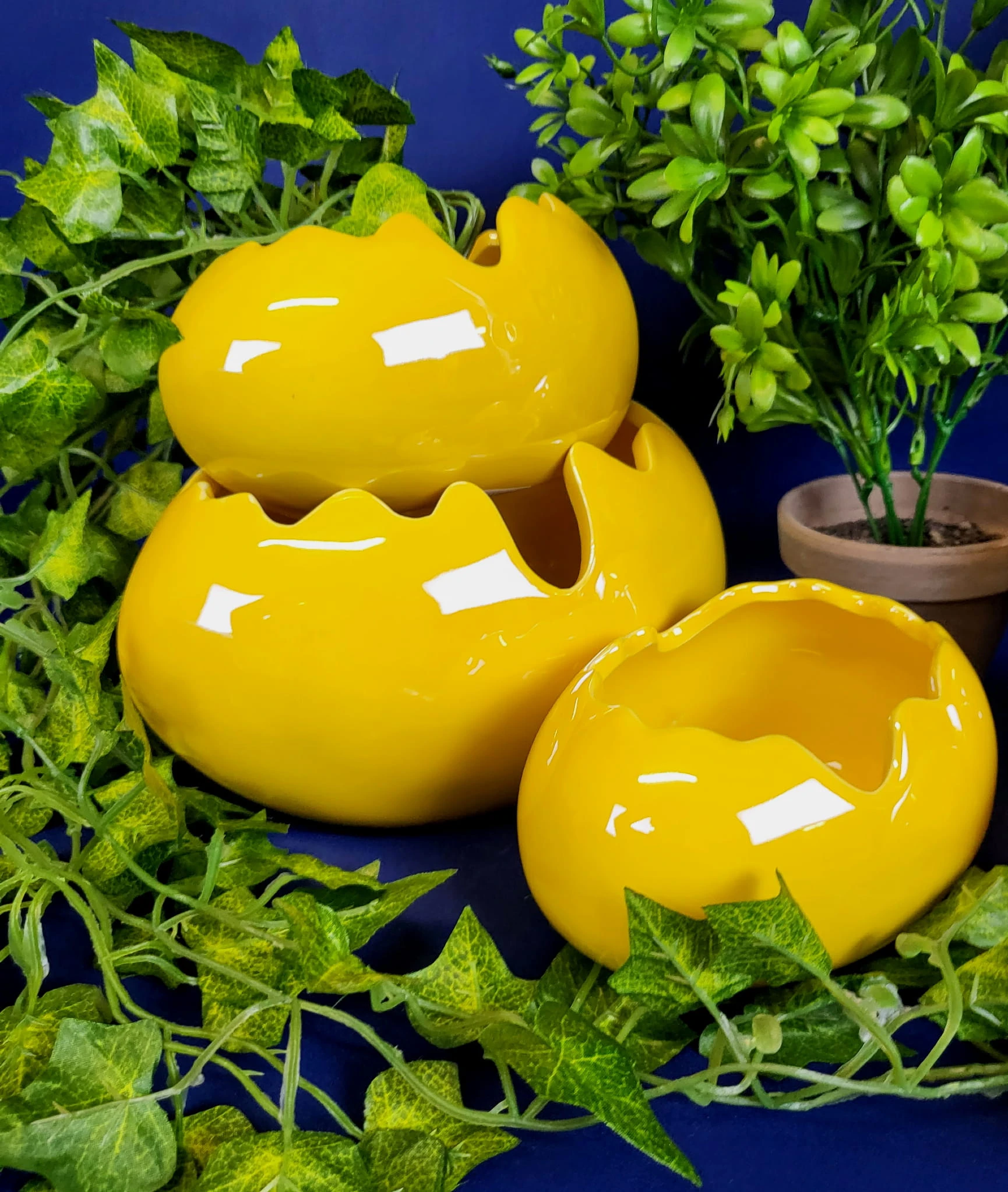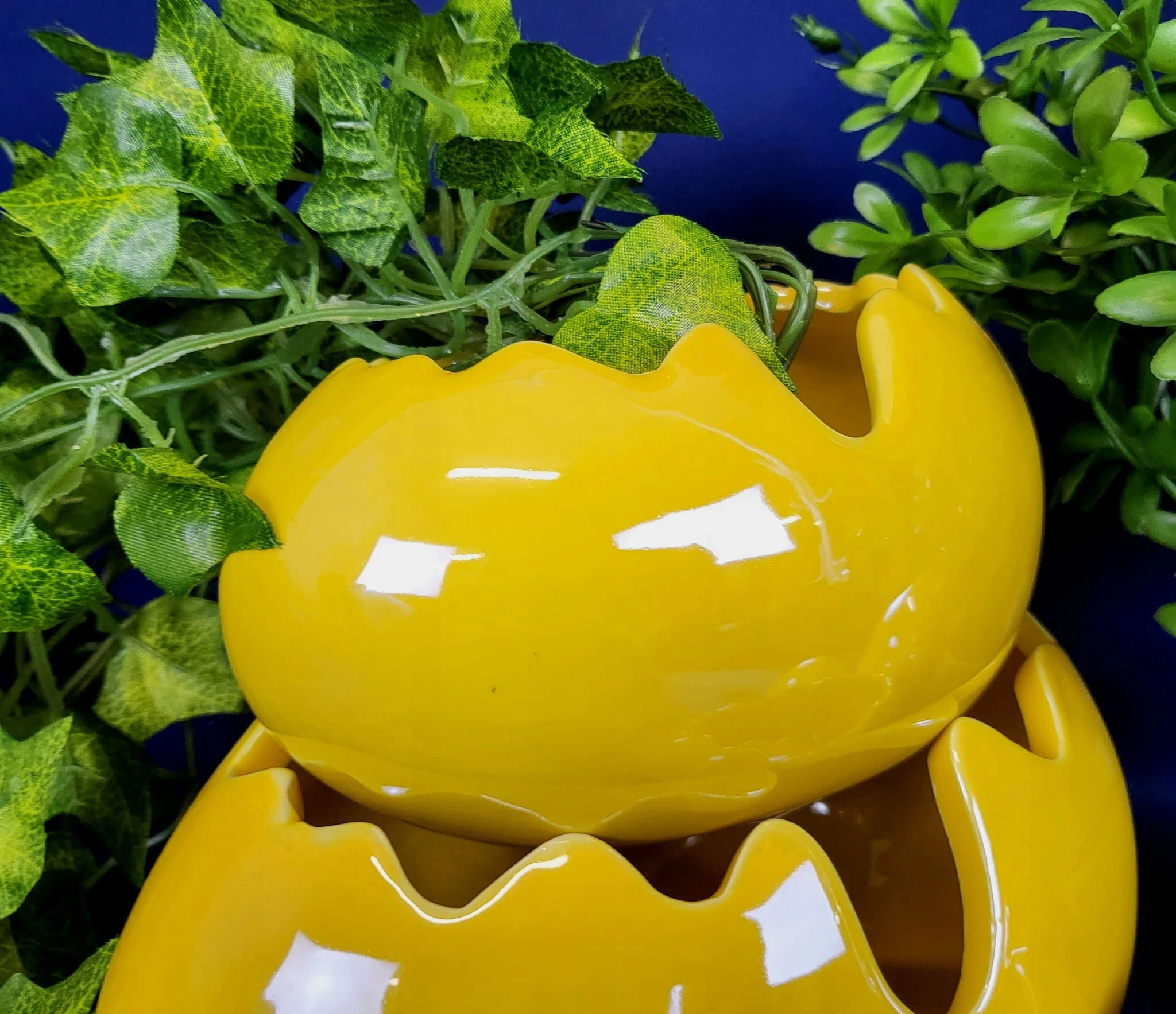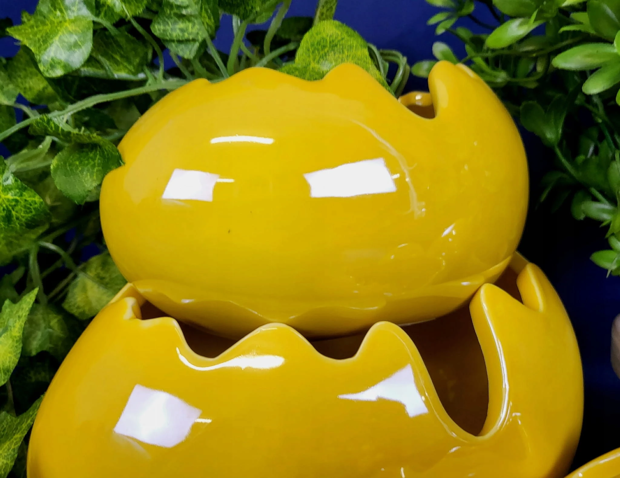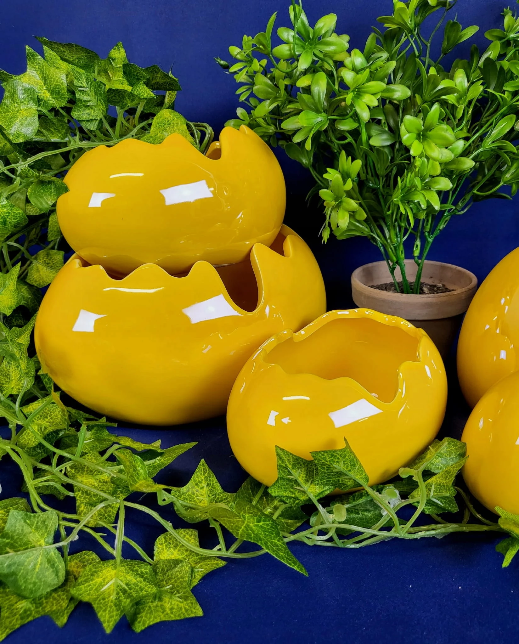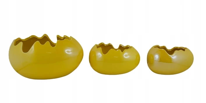 Piękna żółta skorupka jajka - Wielkanocna jak i wiosenna dekoracja do Państwa domu. Nada niepowtarzalnego charakteru wnętrzu urządzonego praktycznie w każdym stylu. Może posłużyć jako osłonka, doniczka czy misa.