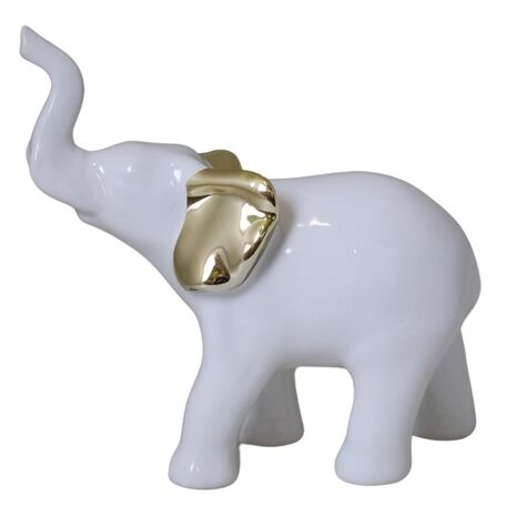 SŁOŃ CERAMICZNY BIAŁY ZE ZŁOTYMI USZAMI MAŁY 14X5,5X11 CM