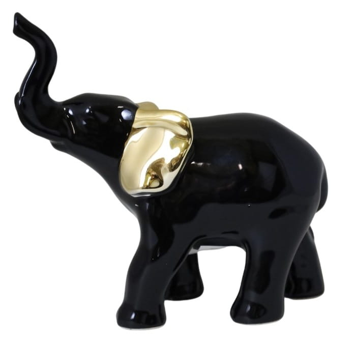 SŁOŃ CERAMICZNY CZARNY ZE ZŁOTYMI USZAMI MAŁY 14X5,5X11 CM