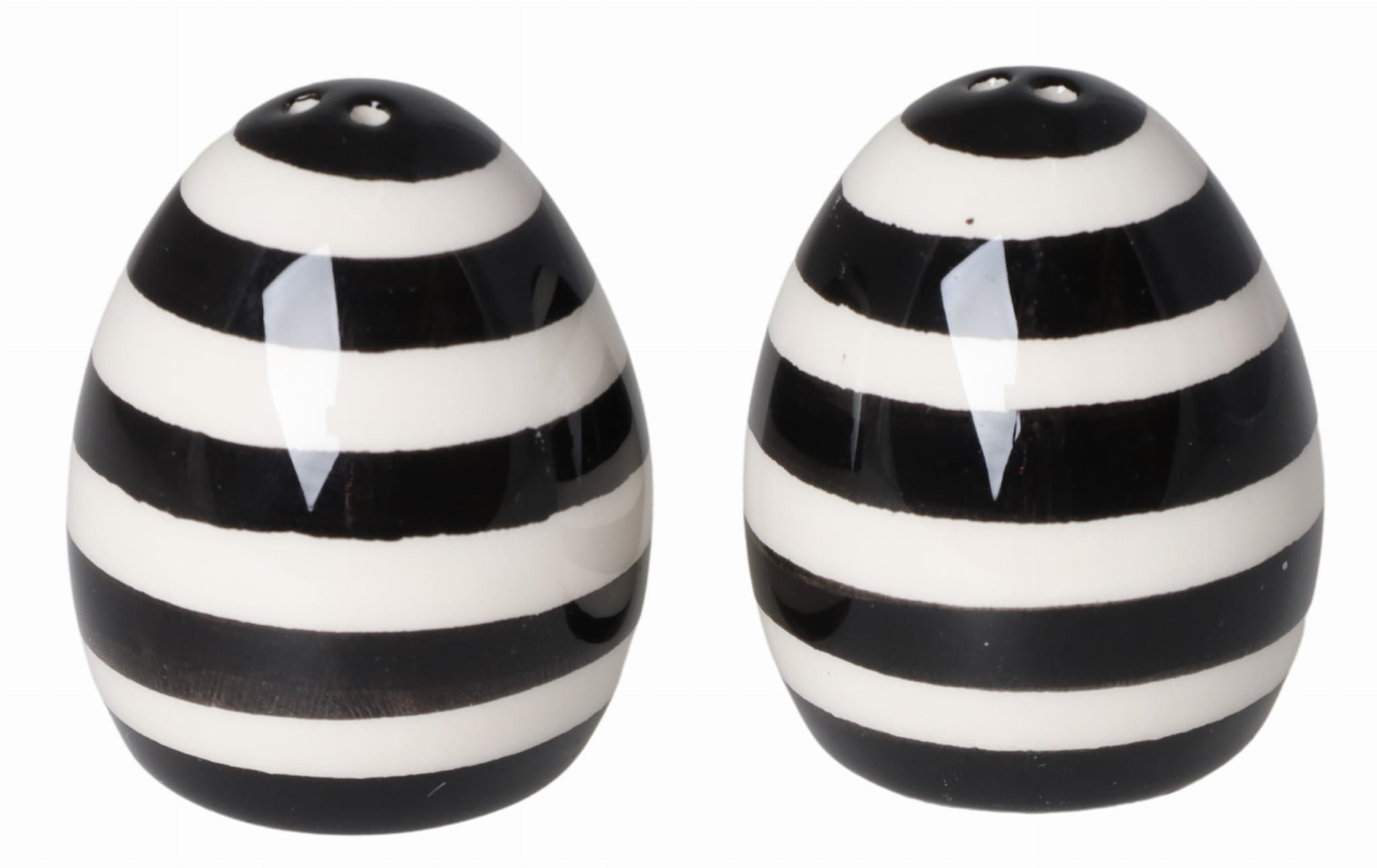 Jajko ceramiczne, sól/pieprz, w paski, biało-czarne, 4x4x5 cm