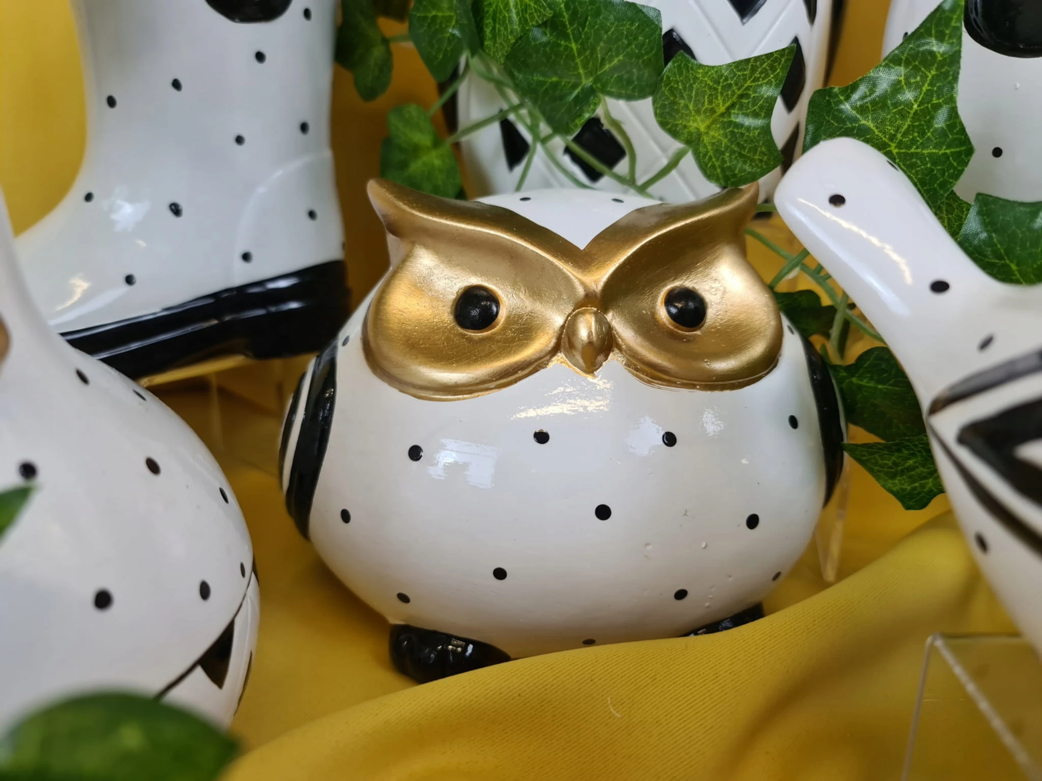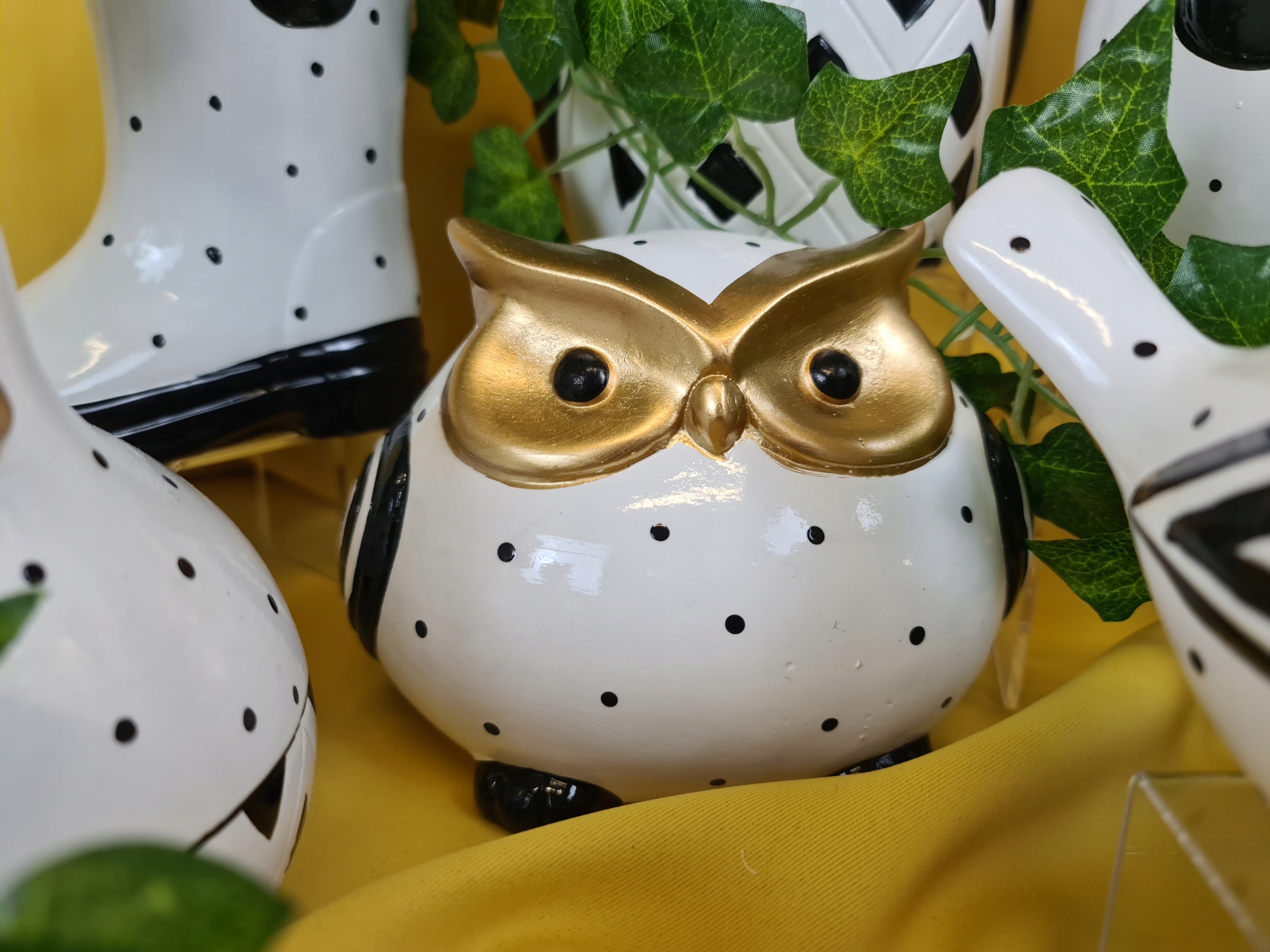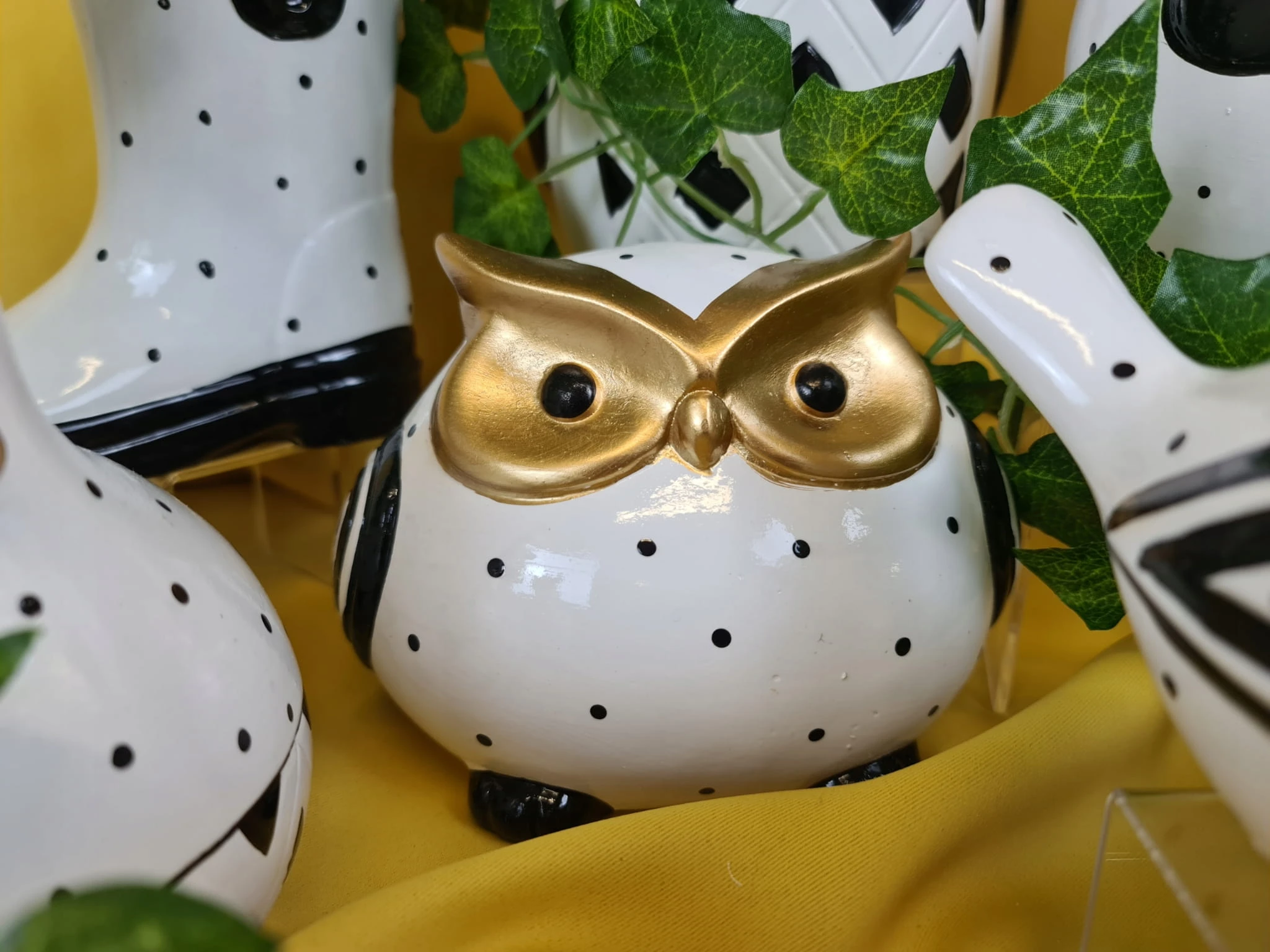 SOWA CERAMICZNA BIAŁO/CZARNA/ZŁOTA
