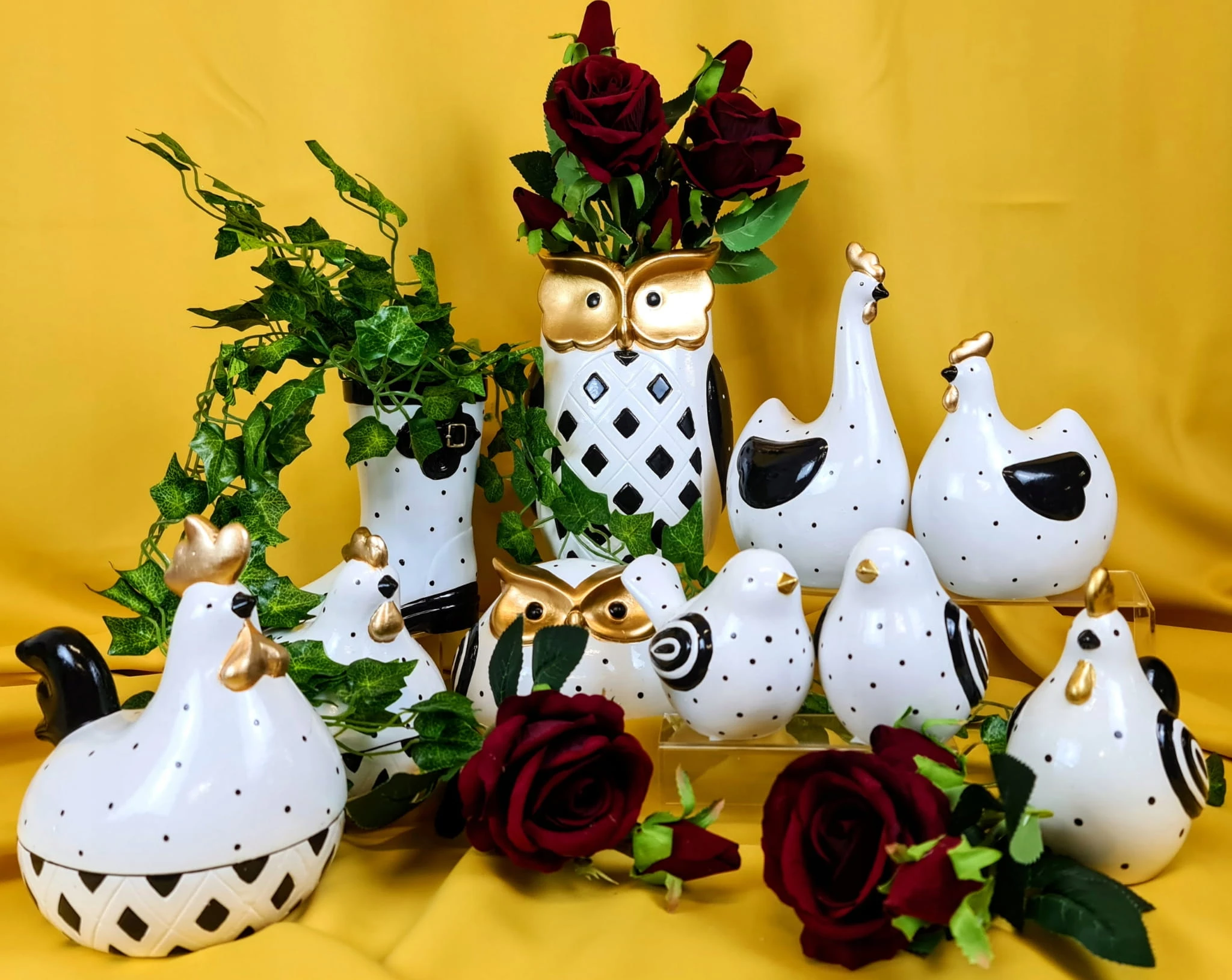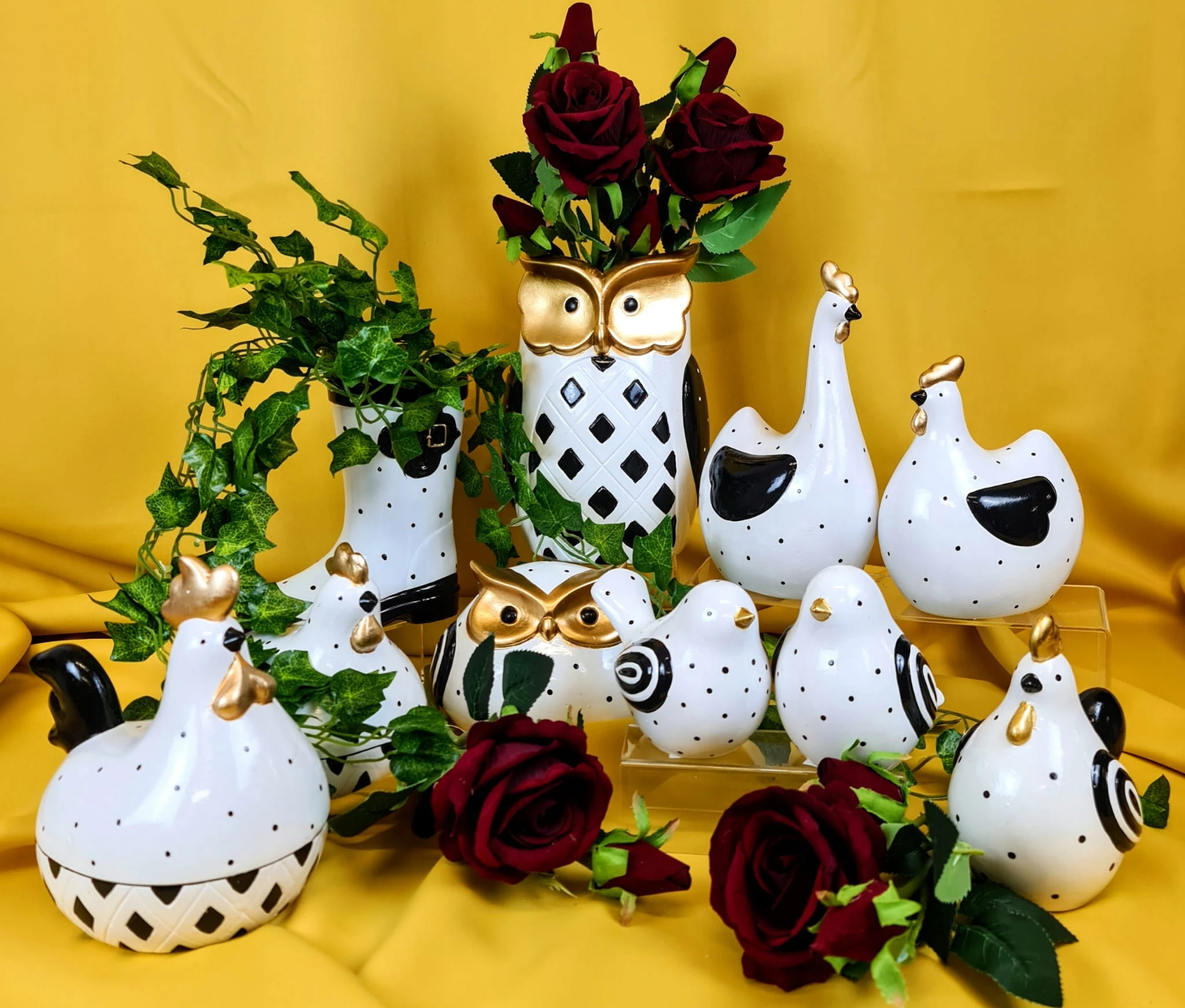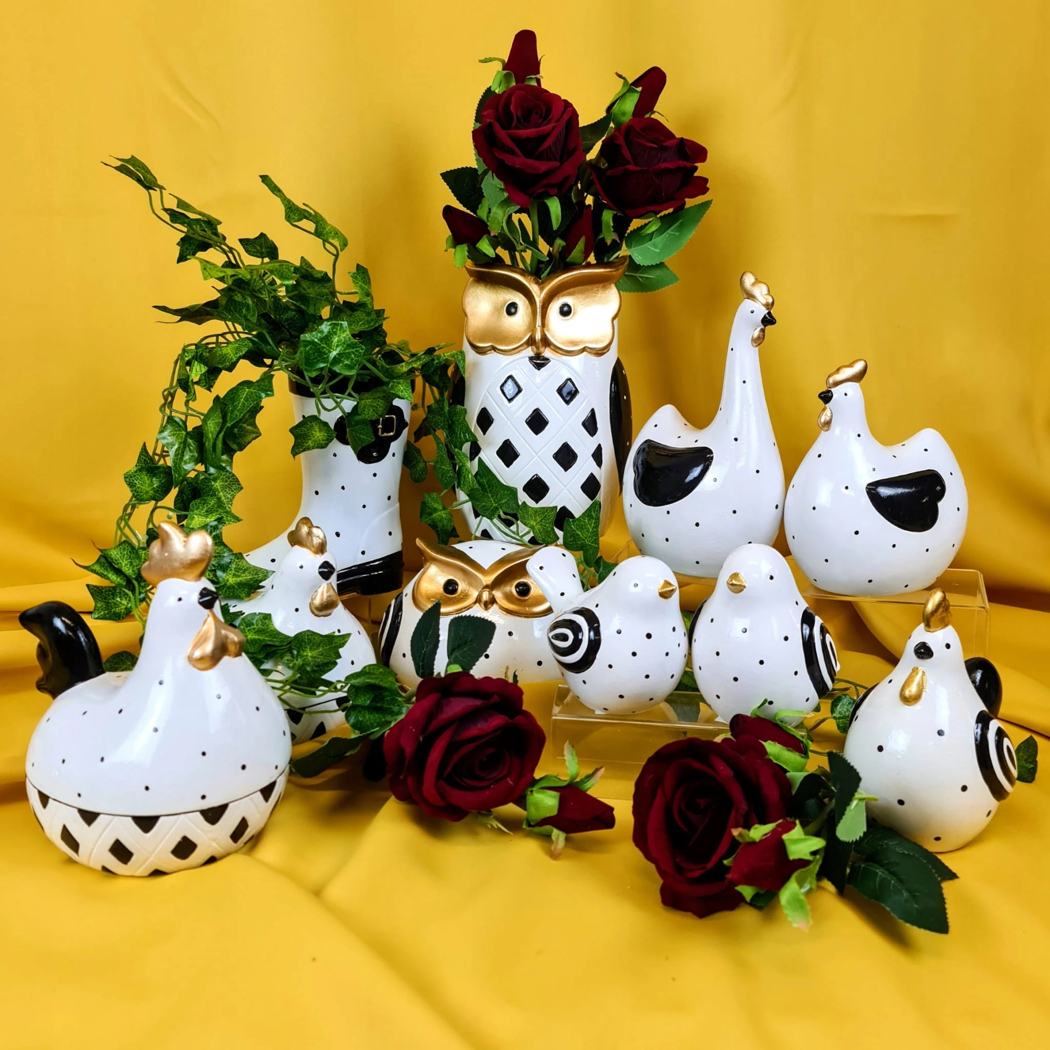SOWA CERAMICZNA BIAŁO/CZARNA/ZŁOTA