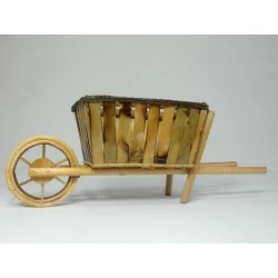 oryginalny, plecony stojak na kwiaty/kwietnik. Drewniana taczka-donica.
