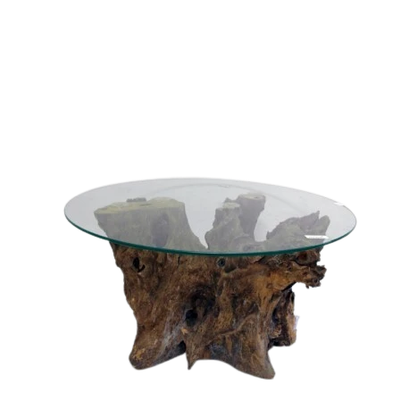 Piękny stolik kawowy z podstawą z drewna tekowego wyłowionego z wody w nietypowym wykonaniu, wniesie rustykalny czar do wnętrza pomieszczenia, będzie także przyciągać wzrok gości. Blat wykonano z hartowanego szkła, można więc na nim postawić napoje, wazon w kwiatami i ozdoby. Sprawdzi się także jako stolik boczny. Stolik wykonany został w całości ręcznie, a dzięki wykorzystanej sztuce rzemieślniczej zyskał niesamowity, naturalny styl retro. Ważna informacja: drewno jest naturalnym produktem, dlatego kolor, struktura, wzór i kształt może być różny w zależności od wybranego elementu, co sprawia, że każdy mebel jest inny. Wysyłka odbywa się losowo.