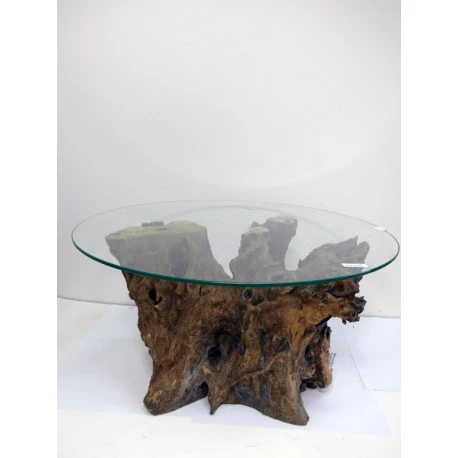 - Materiał: podstawa z drewna tekowego wyłowionego z wody + blat z hartowanego szkła