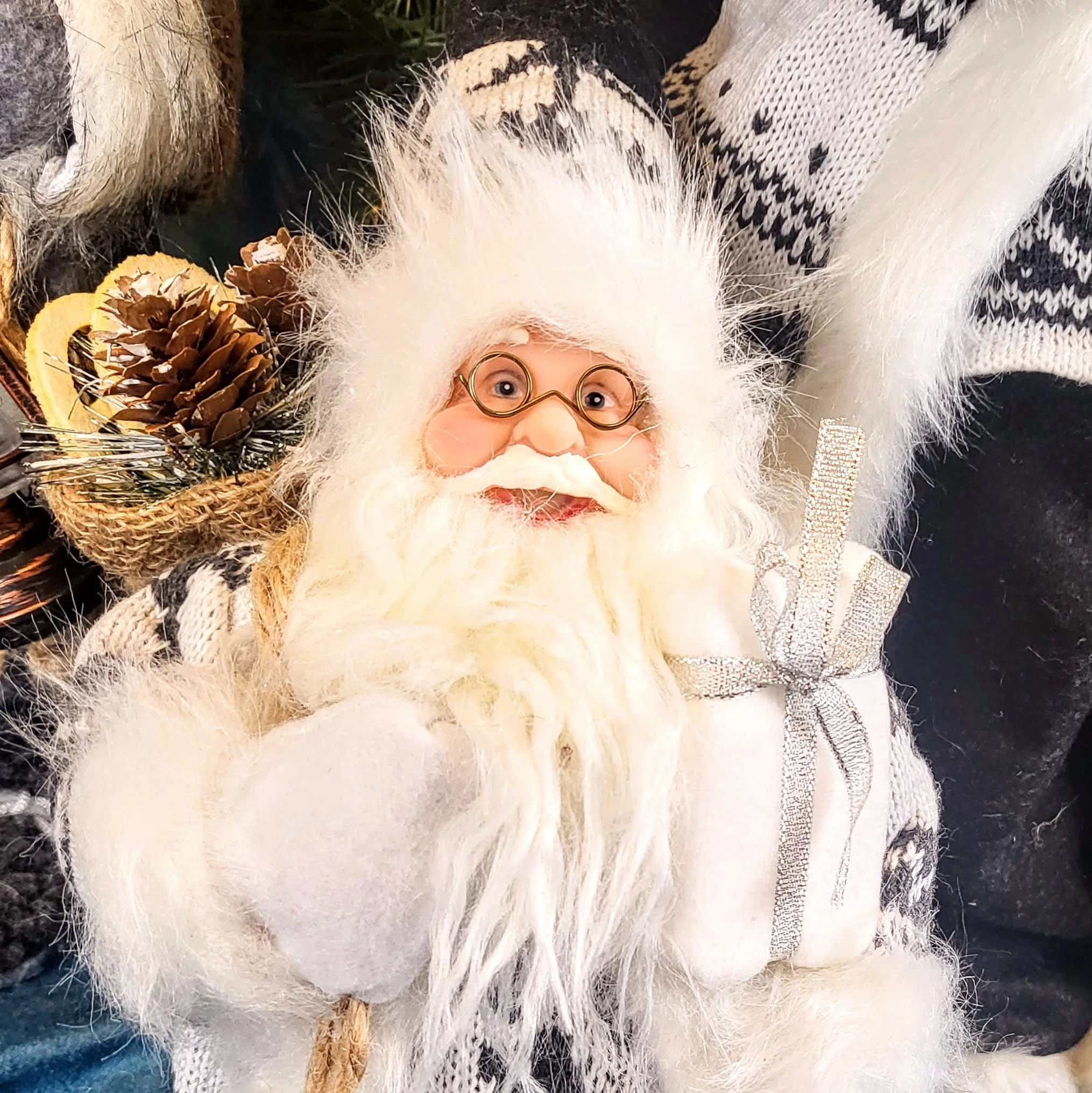 ŚWIĄTECZNA FIGURKA MIKOŁAJ Z PREZENTEM 32 CM
