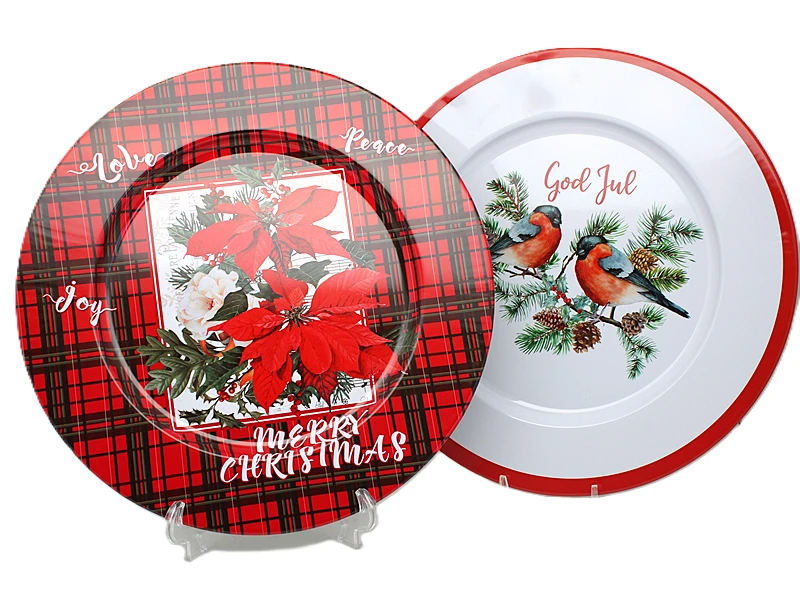 ŚWIĄTECZNA METALOWA TACA PODTALERZ 33CM KRATKA