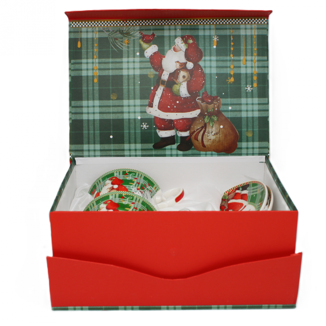 Piękny zestaw z mikołajami w opakowaniu prezentowym.