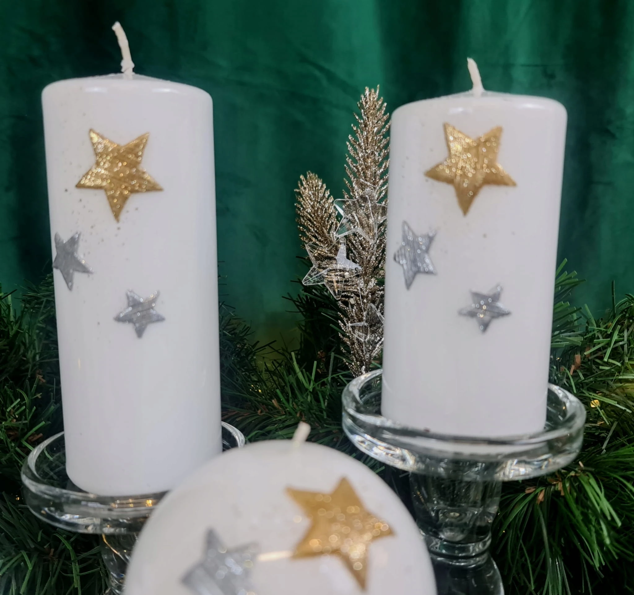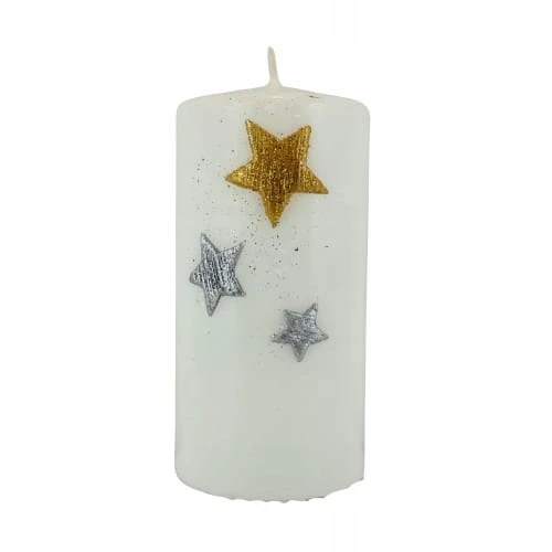 ŚWIECA BIAŁA 12 CM GWIAZDKI LAKIER ŚWIĘTA PREZENT