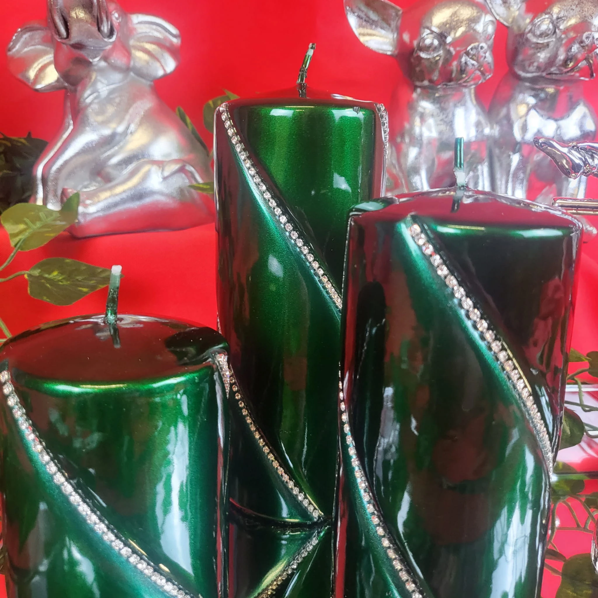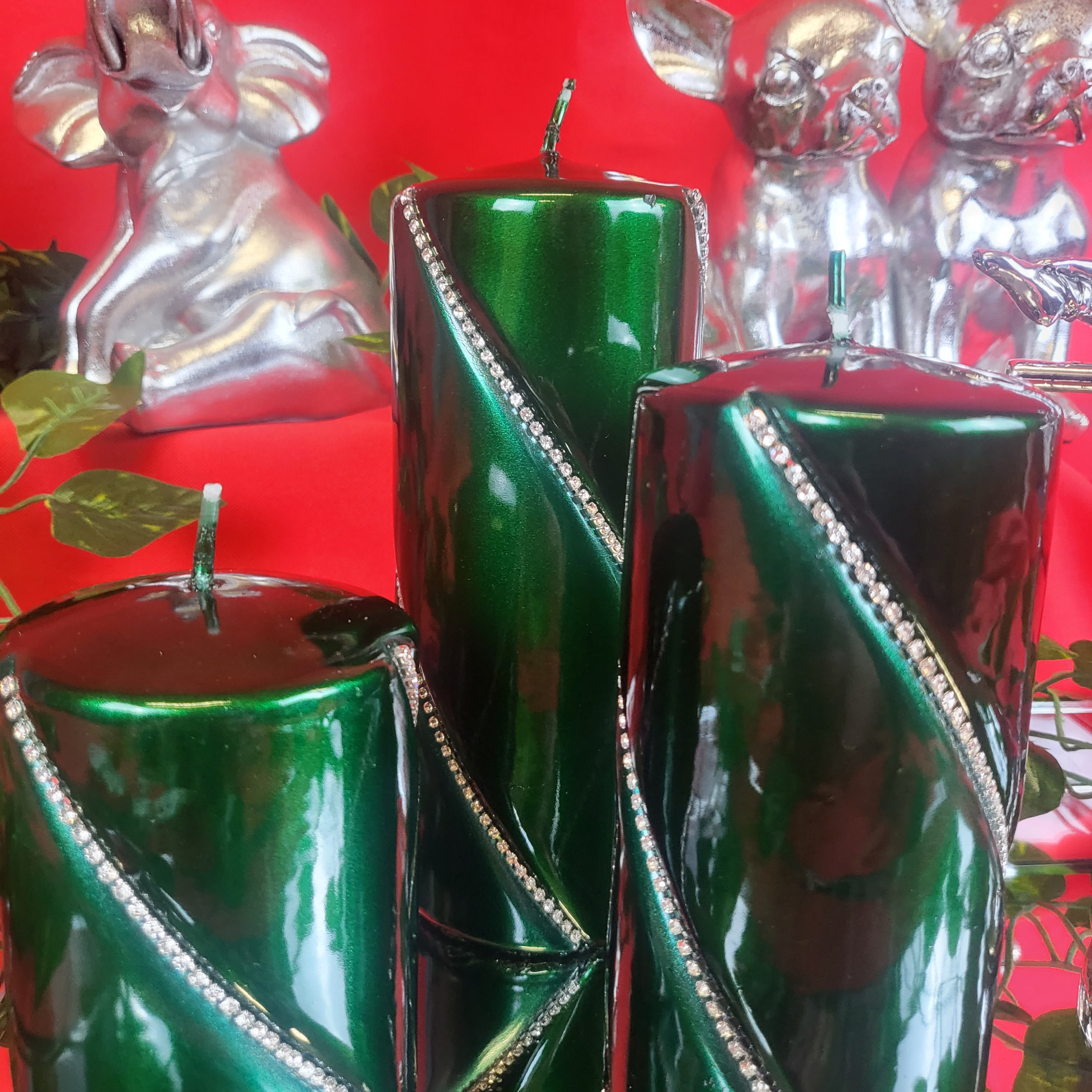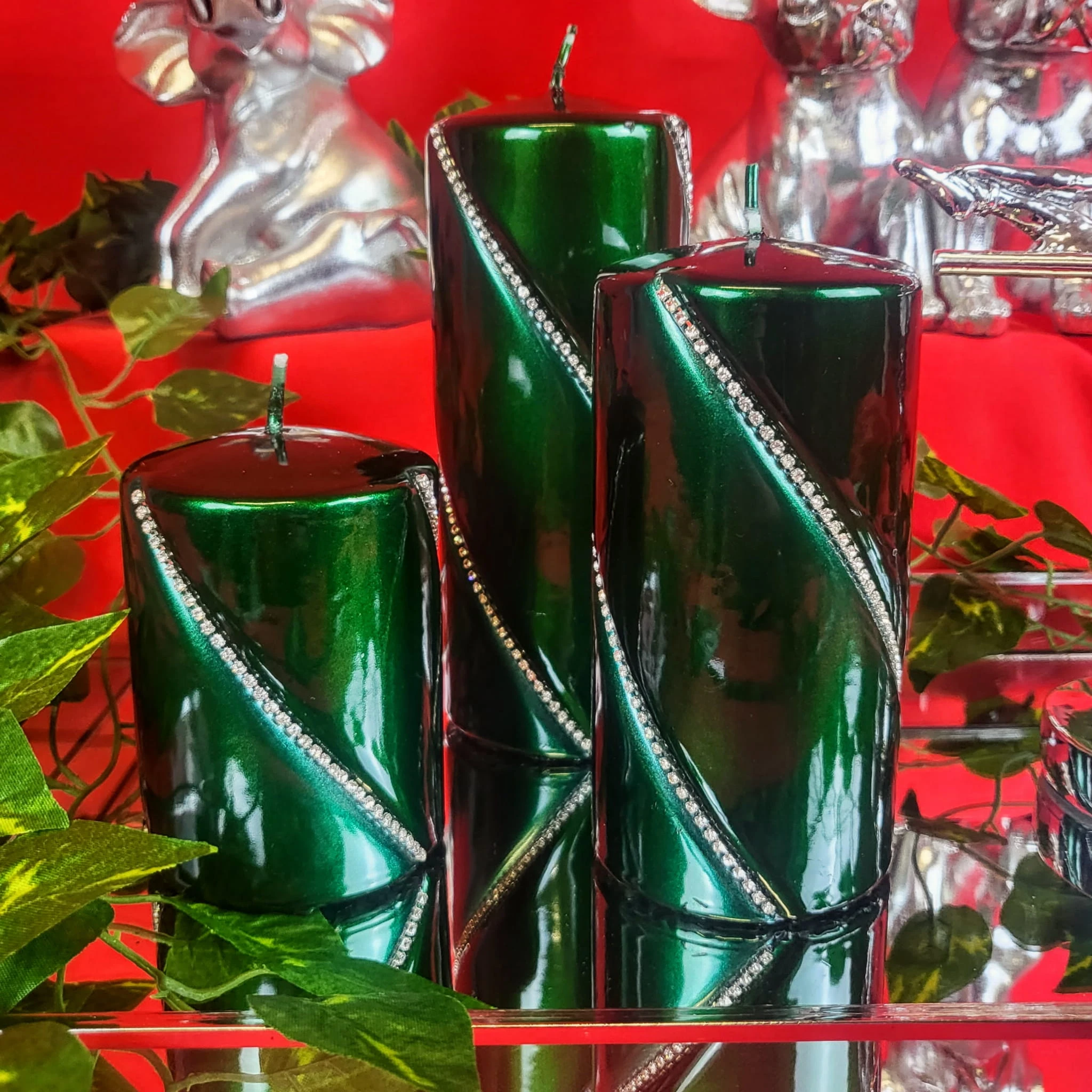 ŚWIECA BOLERO METALLIC WALEC MAŁY ZIELONY 10CM