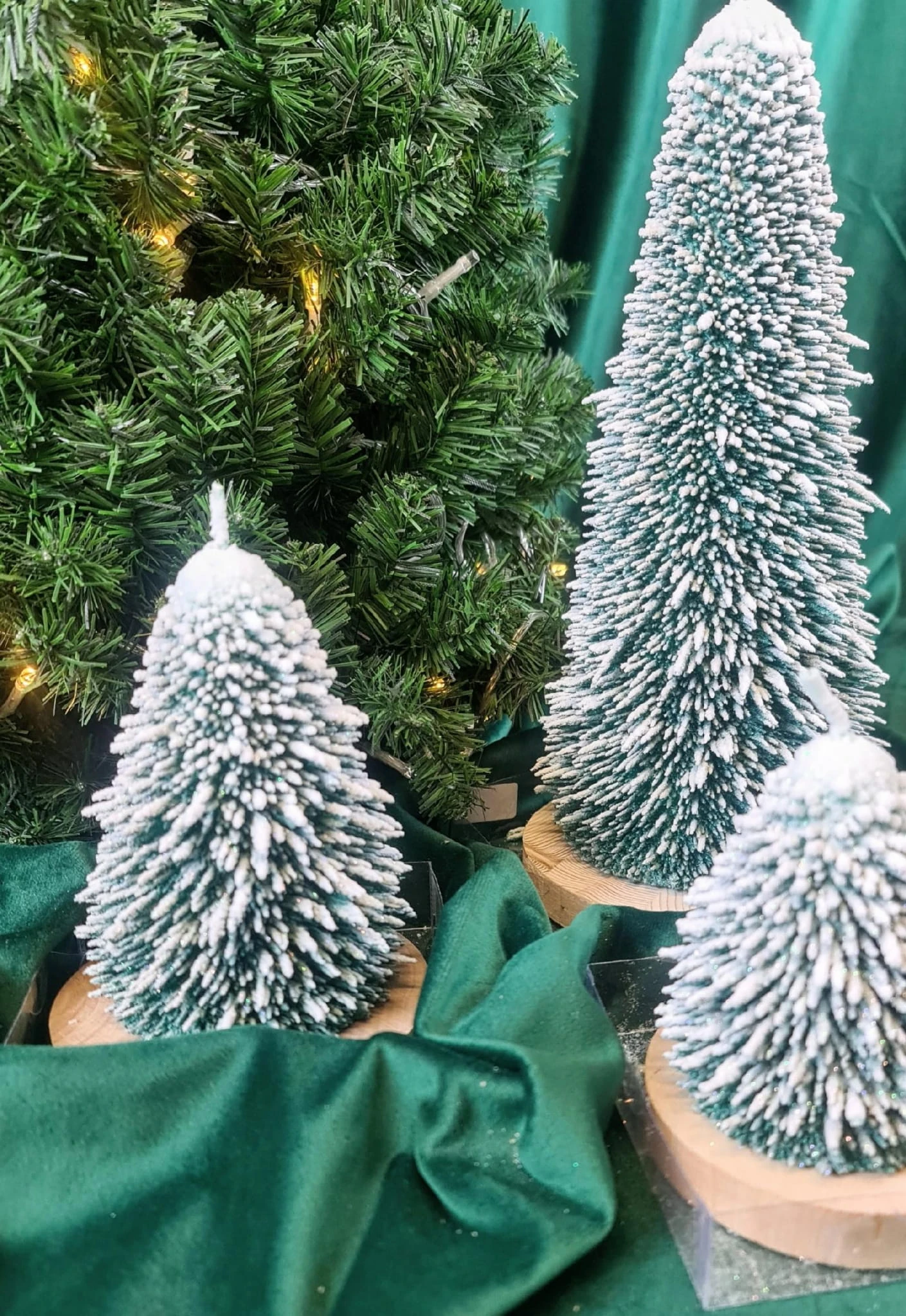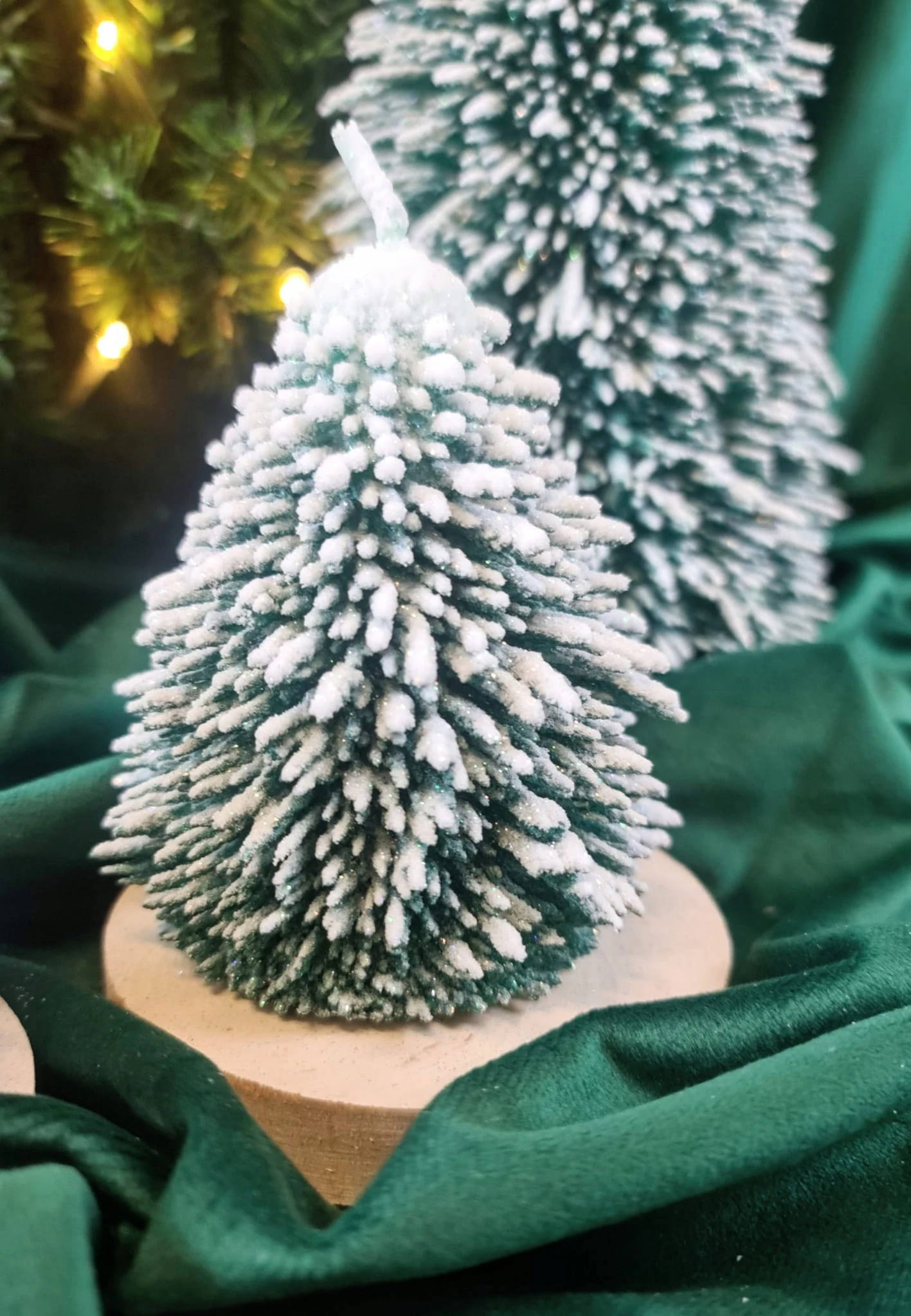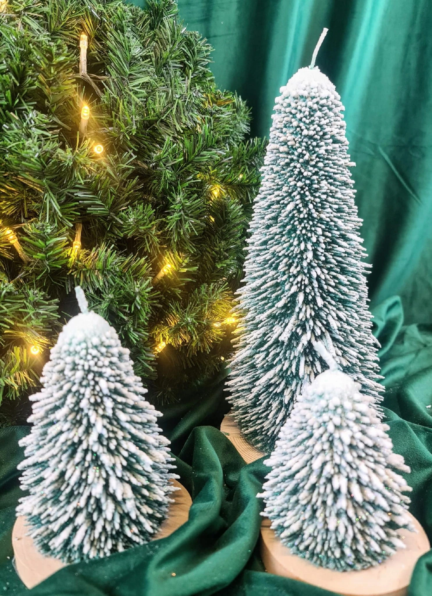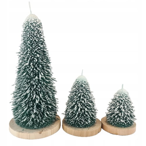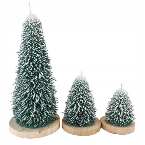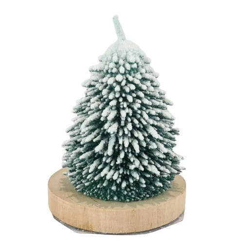 ŚWIECA CHOINKA ZIELONA L DREWNIANA PODSTAWKA XMAS