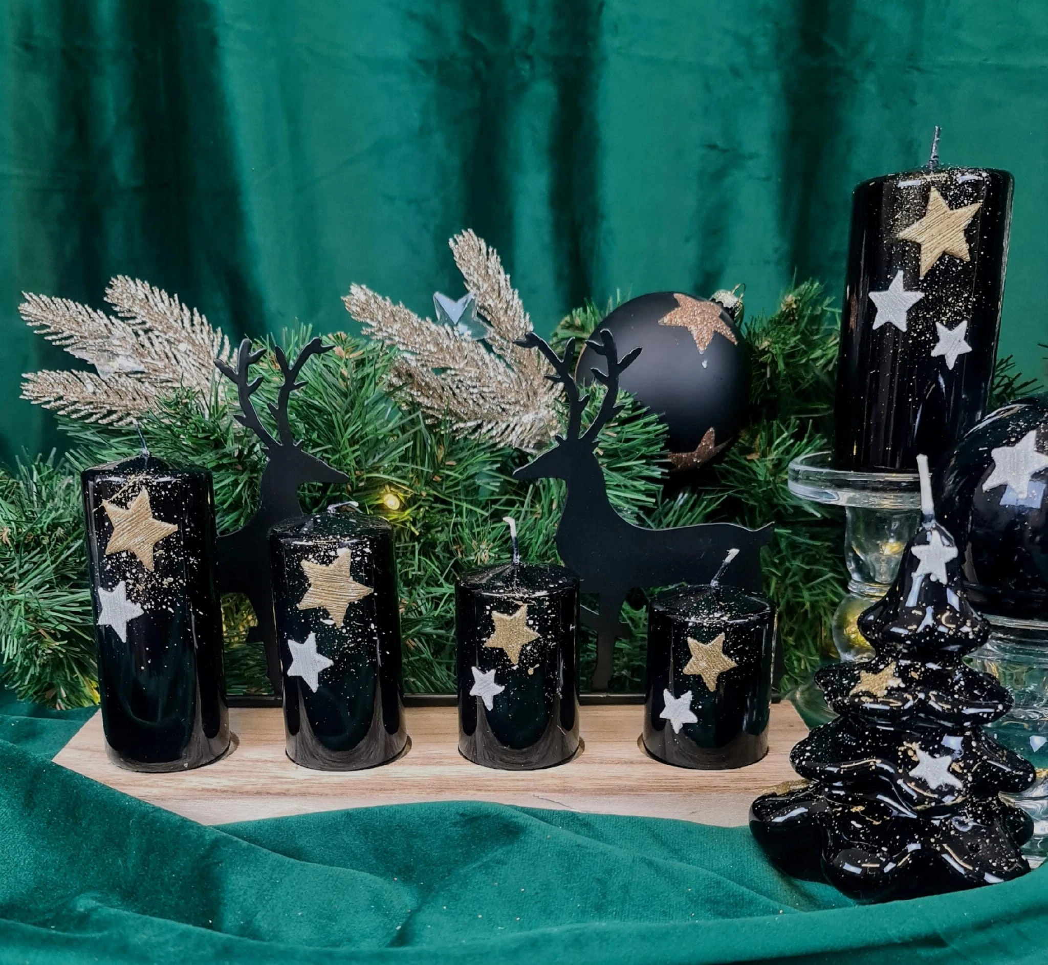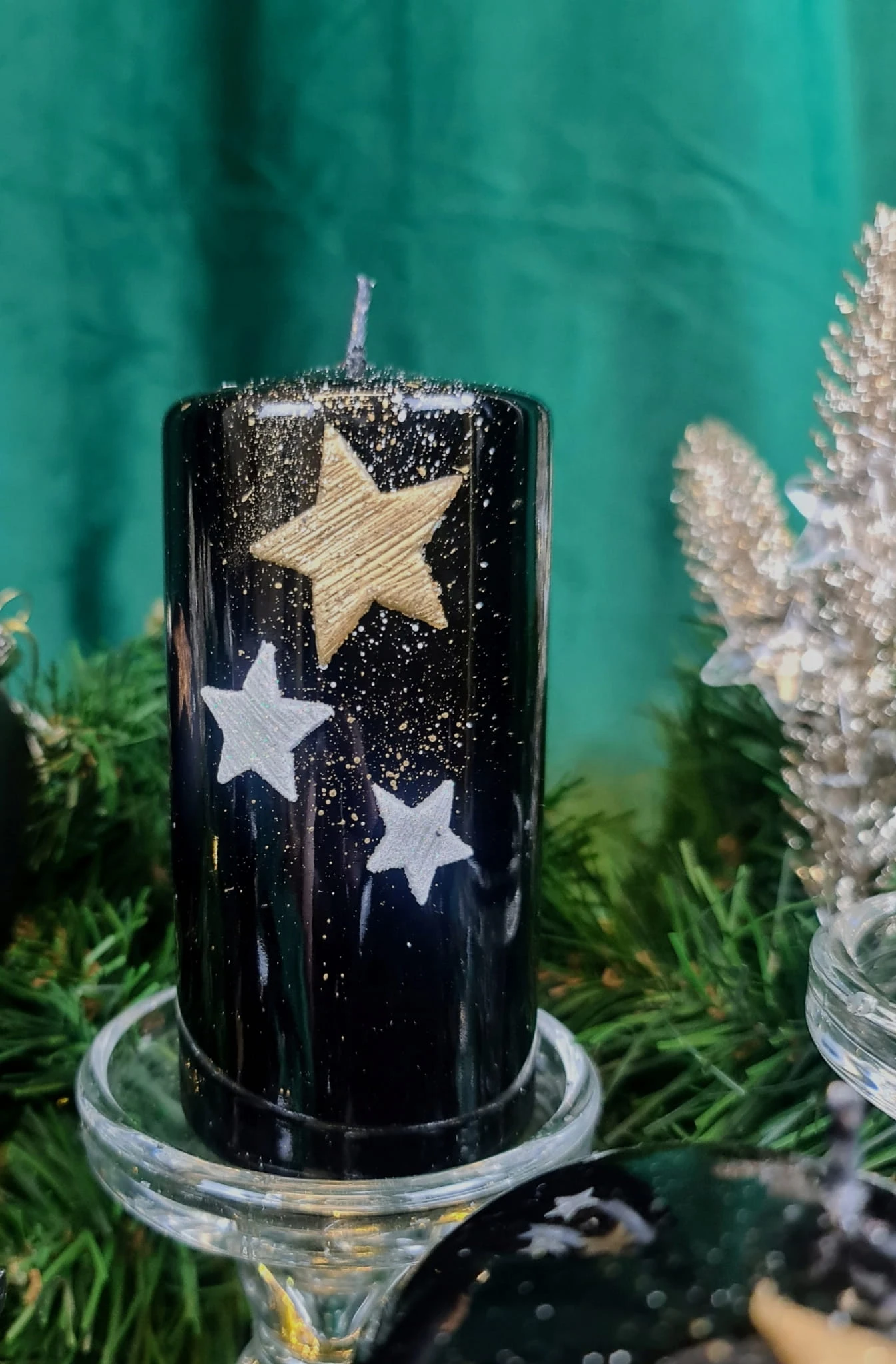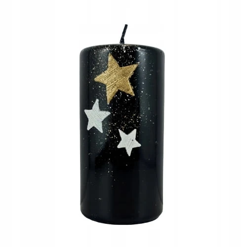 ŚWIECA CZARNA 12 CM GWIAZDKI LAKIER ŚWIĘTA PREZENT