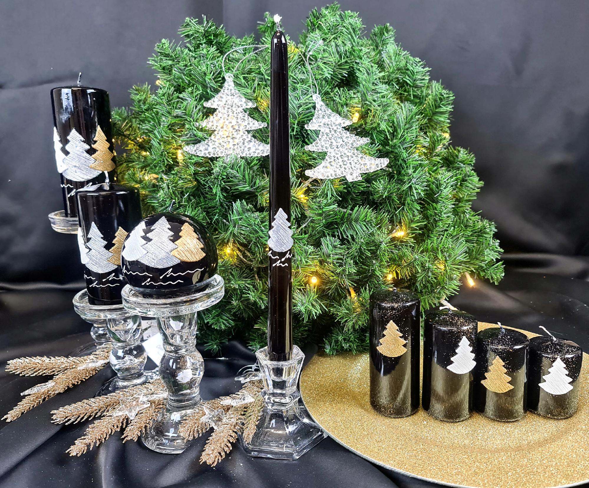 Świece z serii TRZY CHOINKI, to oryginalna świąteczna świeca z efektownym zdobieniem z motywem choinki. Świetnie sprawdzi się we wnętrzach nowoczesnych i nie tylko. Jest to idealny pomysł na prezent dla osoby, która lubi eleganckie dodatki.