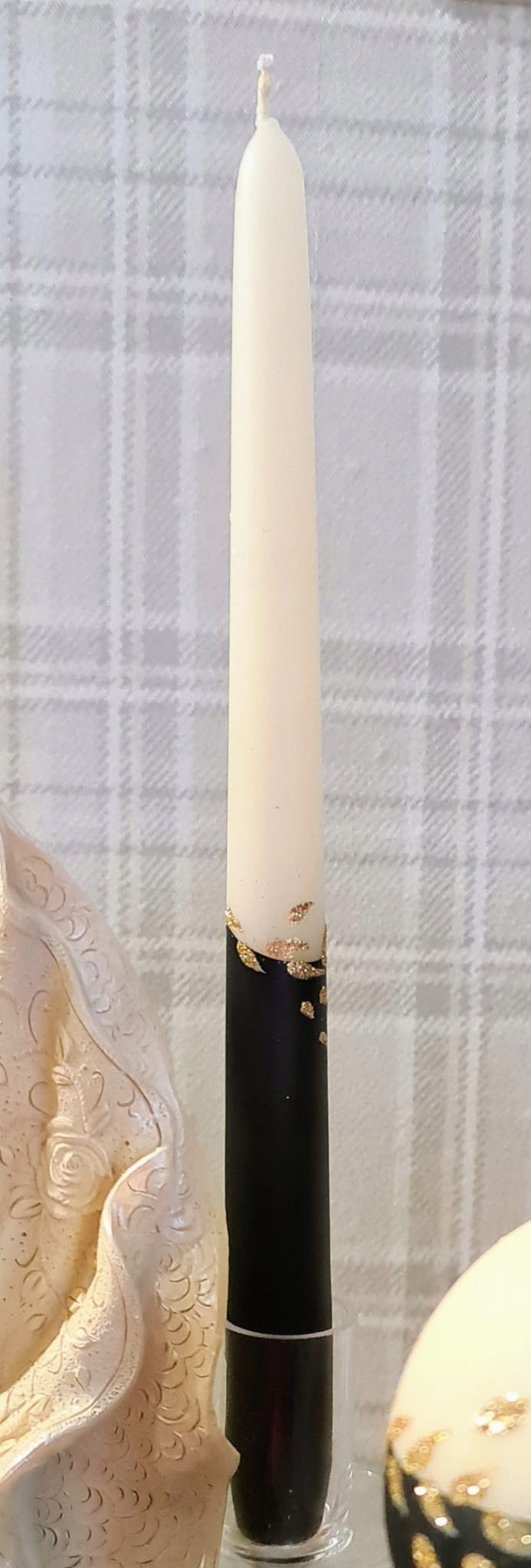 ŚWIECA FAM.DŁ.290/22 GOLD LEAF LAK.MAT ECRU/CZARNY