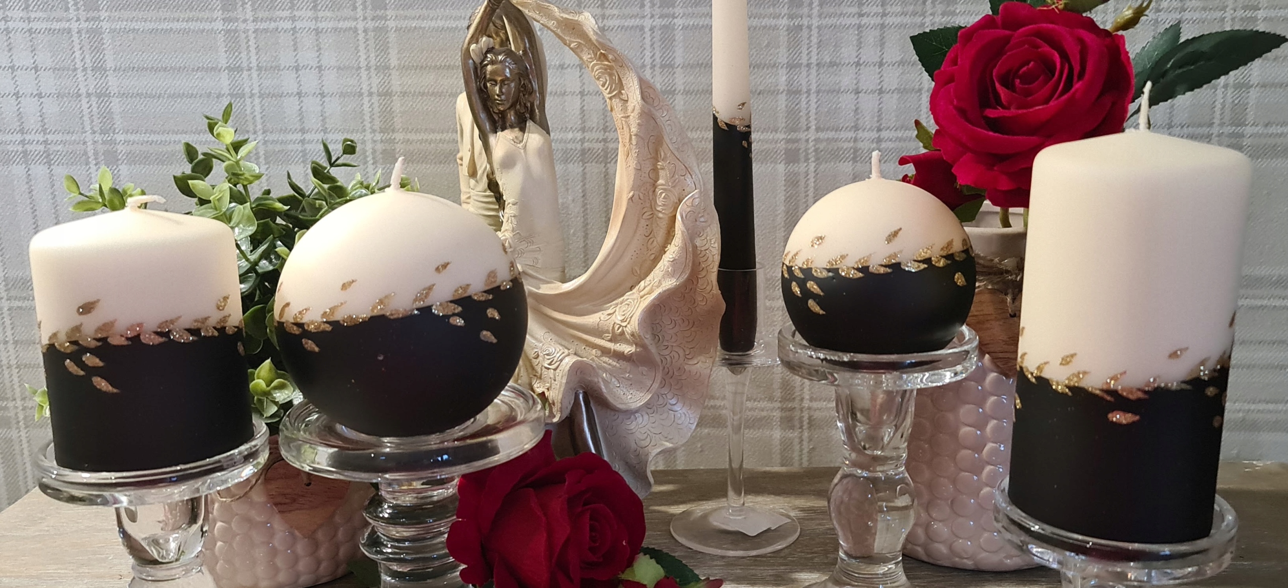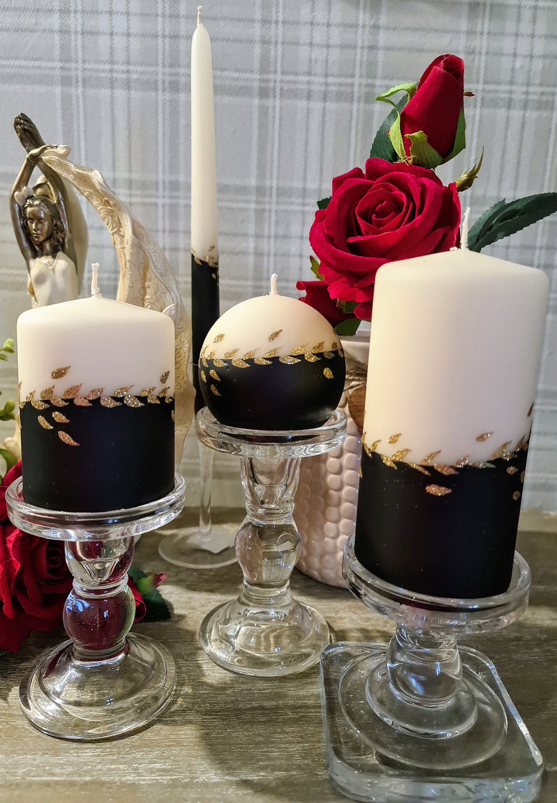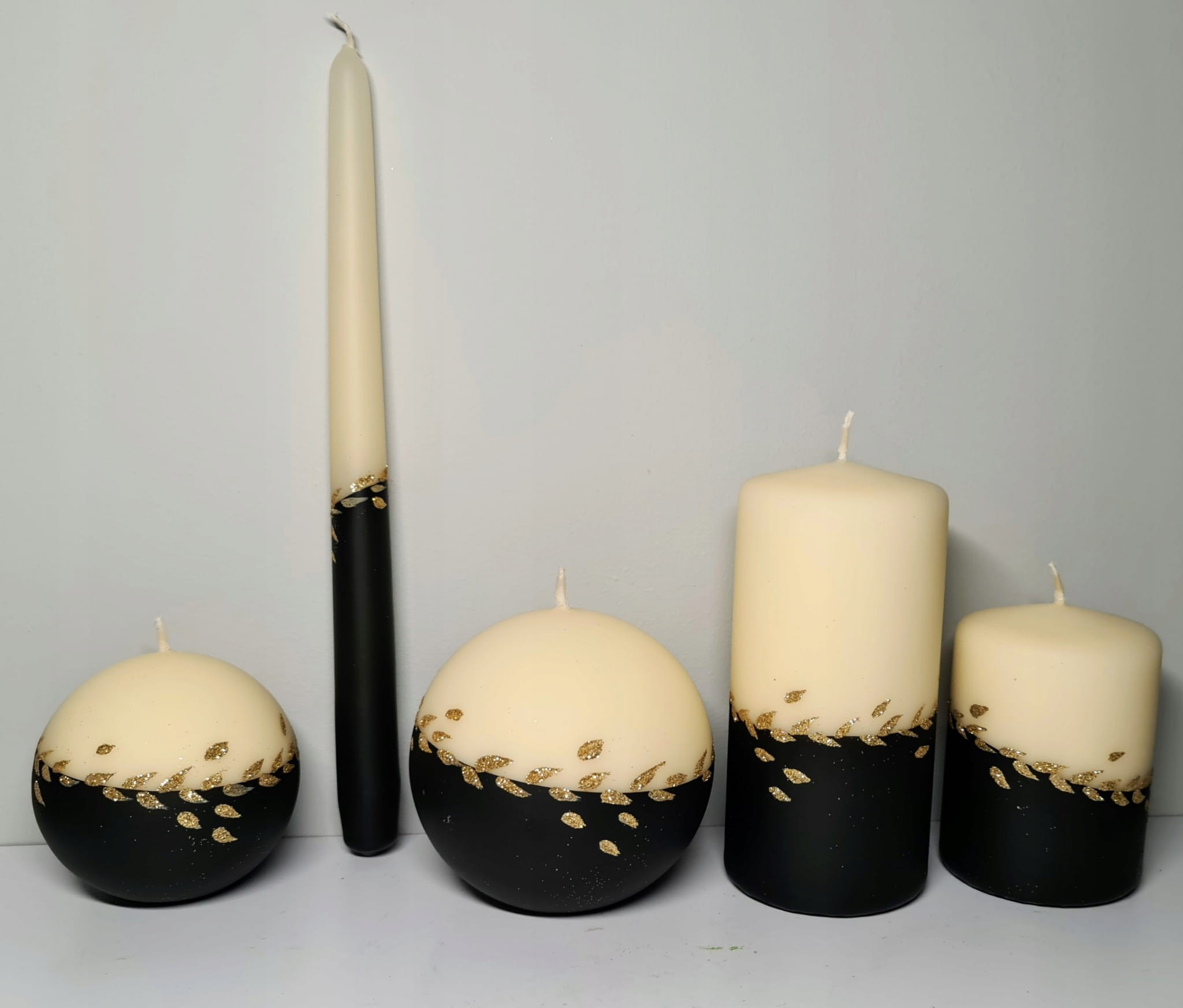 Świece z serii GOLD LEAF to unikatowa ozdoba do Twojego domu, klasyczne kolory i złote zdobienie świetnie sprawdzą się w każdym wnętrzu jak i również na prezent.